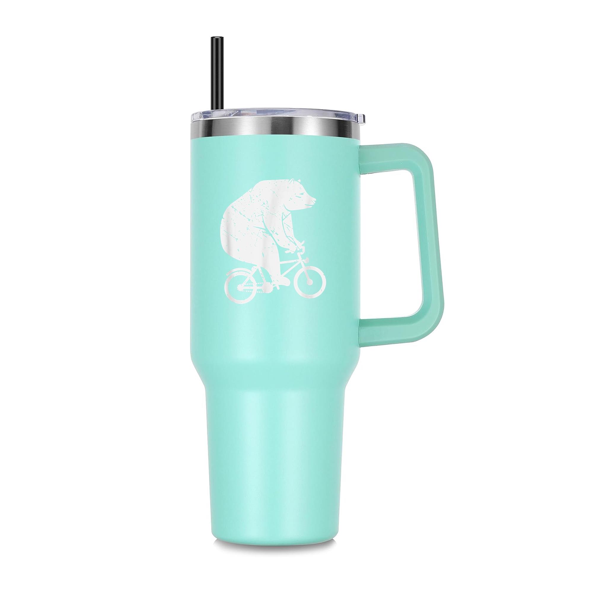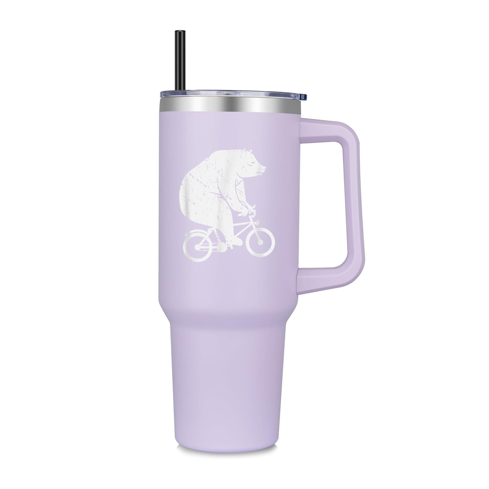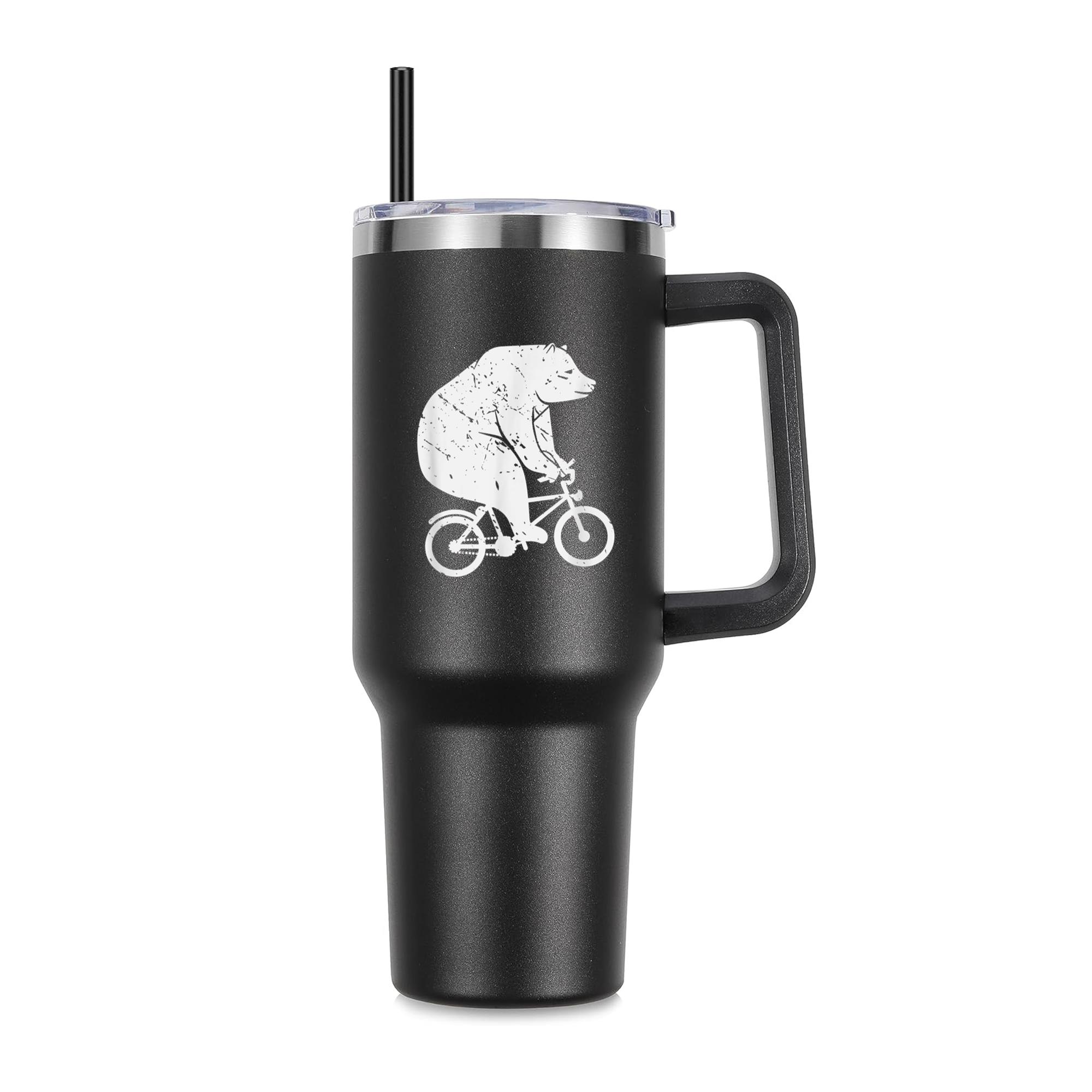 Bear Cyclist Biker 40oz Stainless Steel Tumbler 40oz Stainless Steel Tumbler with Handle and Straw – Double-Wall Vacuum Insulated Travel Mug with Lid