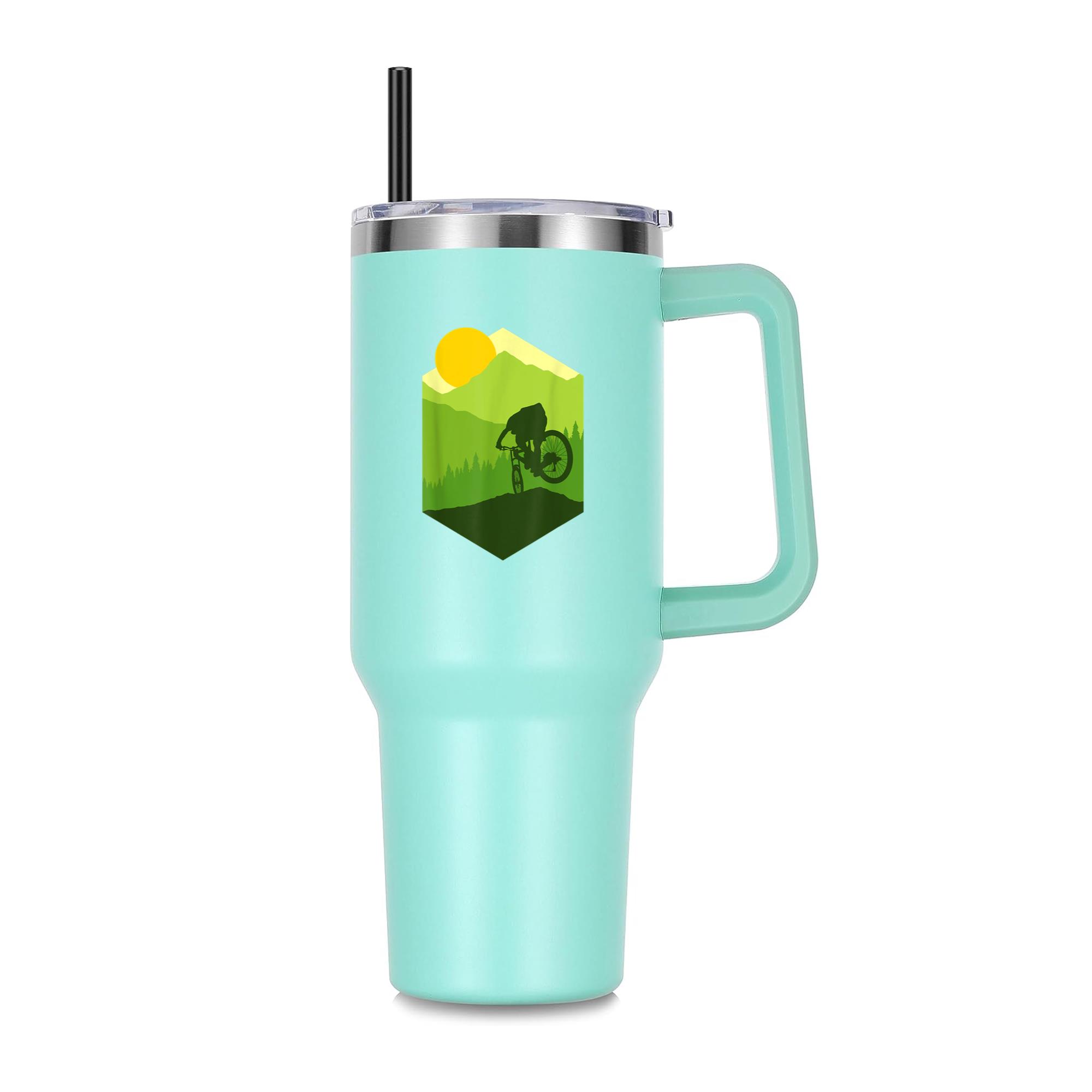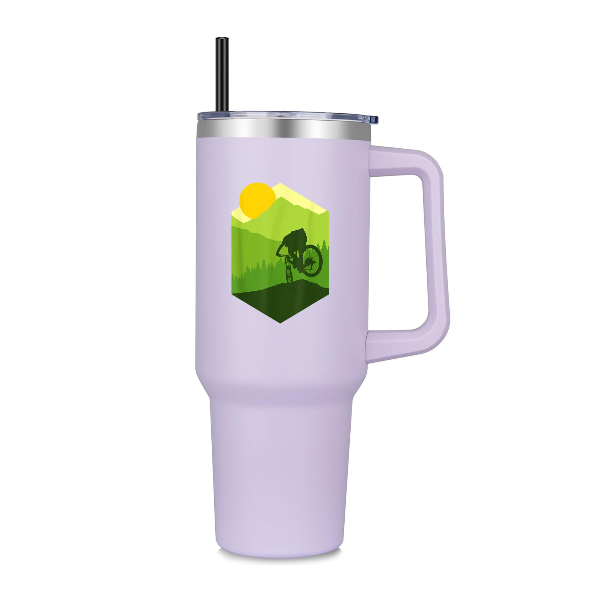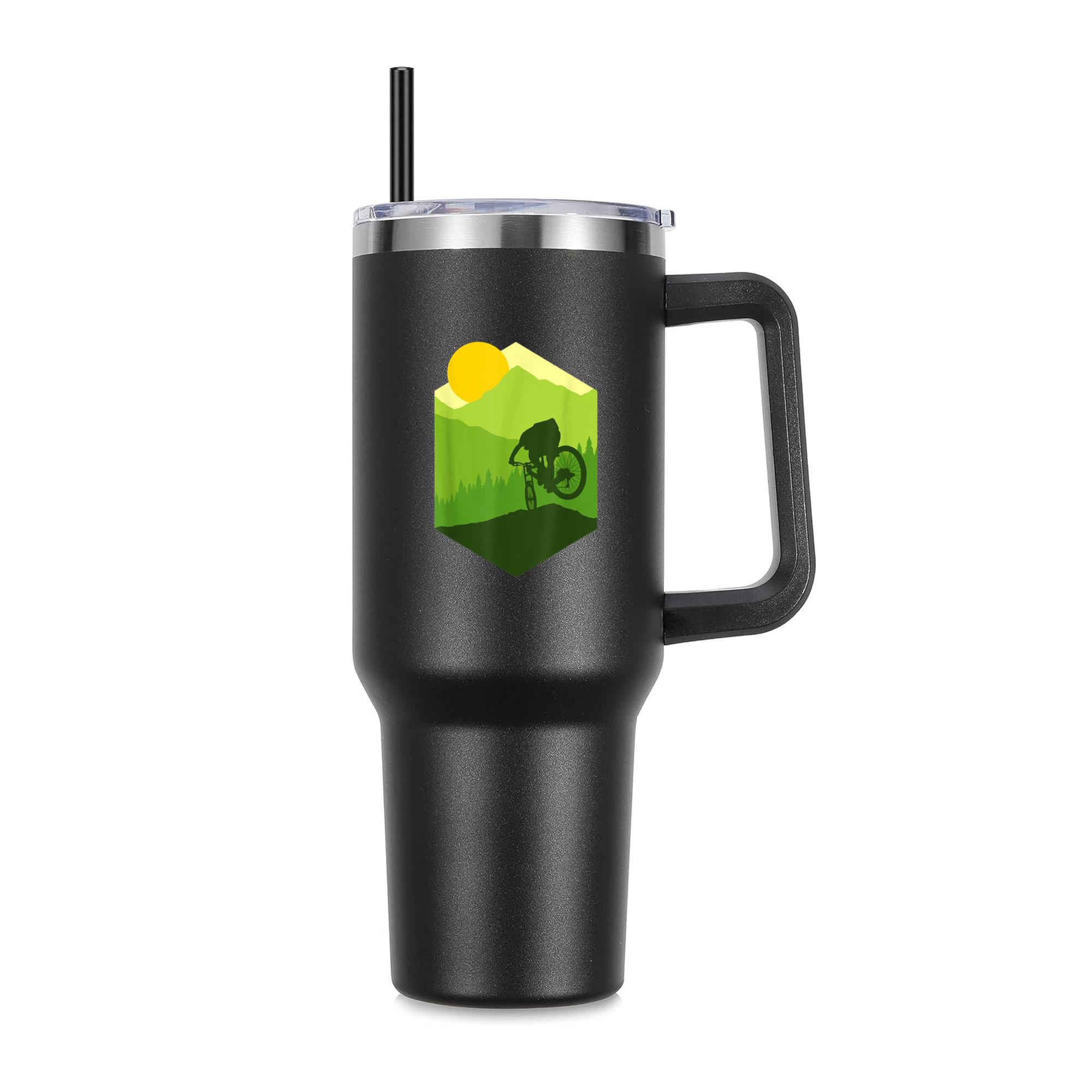 Bike More Road Mountain Cycling 40oz Stainless Steel Tumbler 40oz Stainless Steel Tumbler with Handle and Straw – Double-Wall Vacuum Insulated Travel Mug with Lid