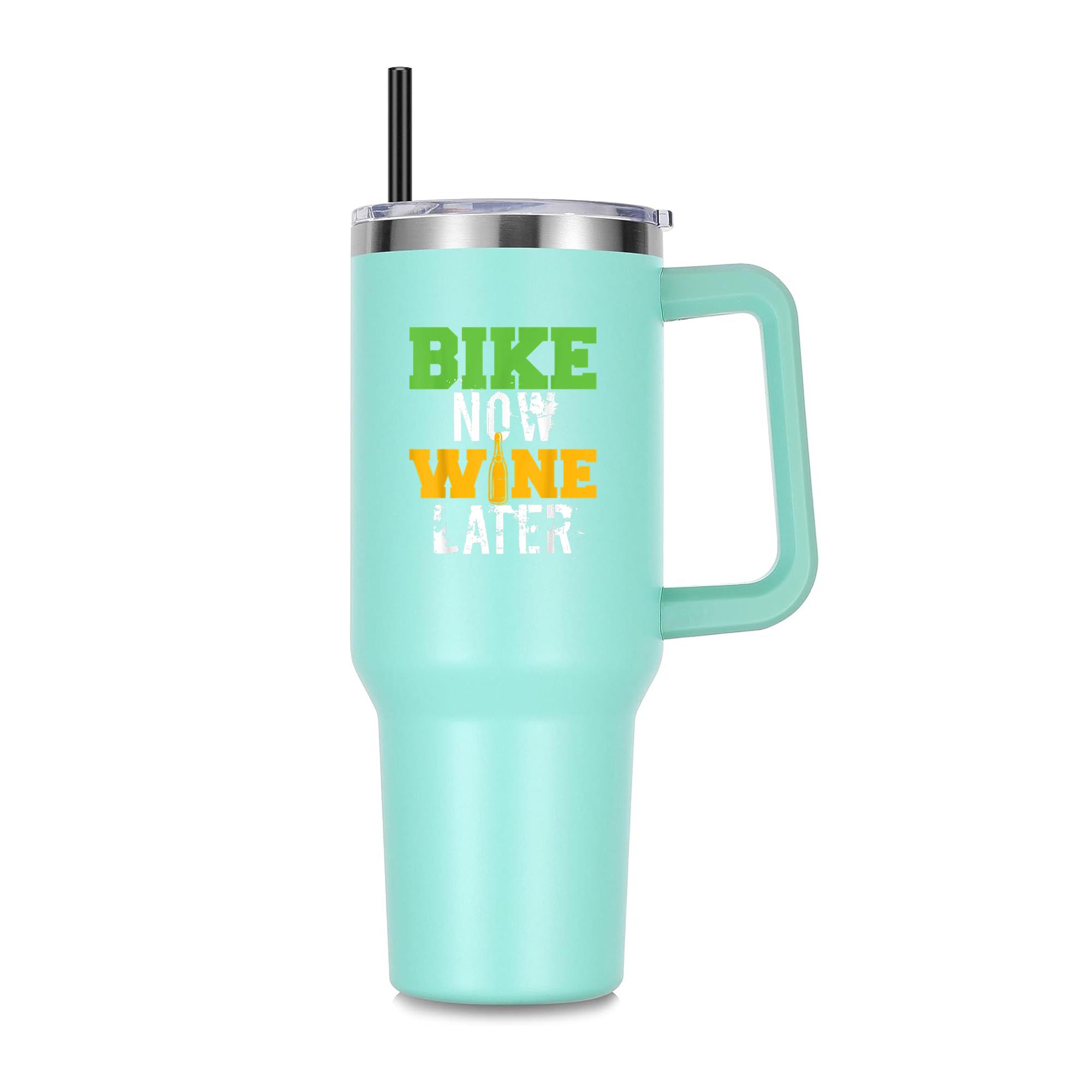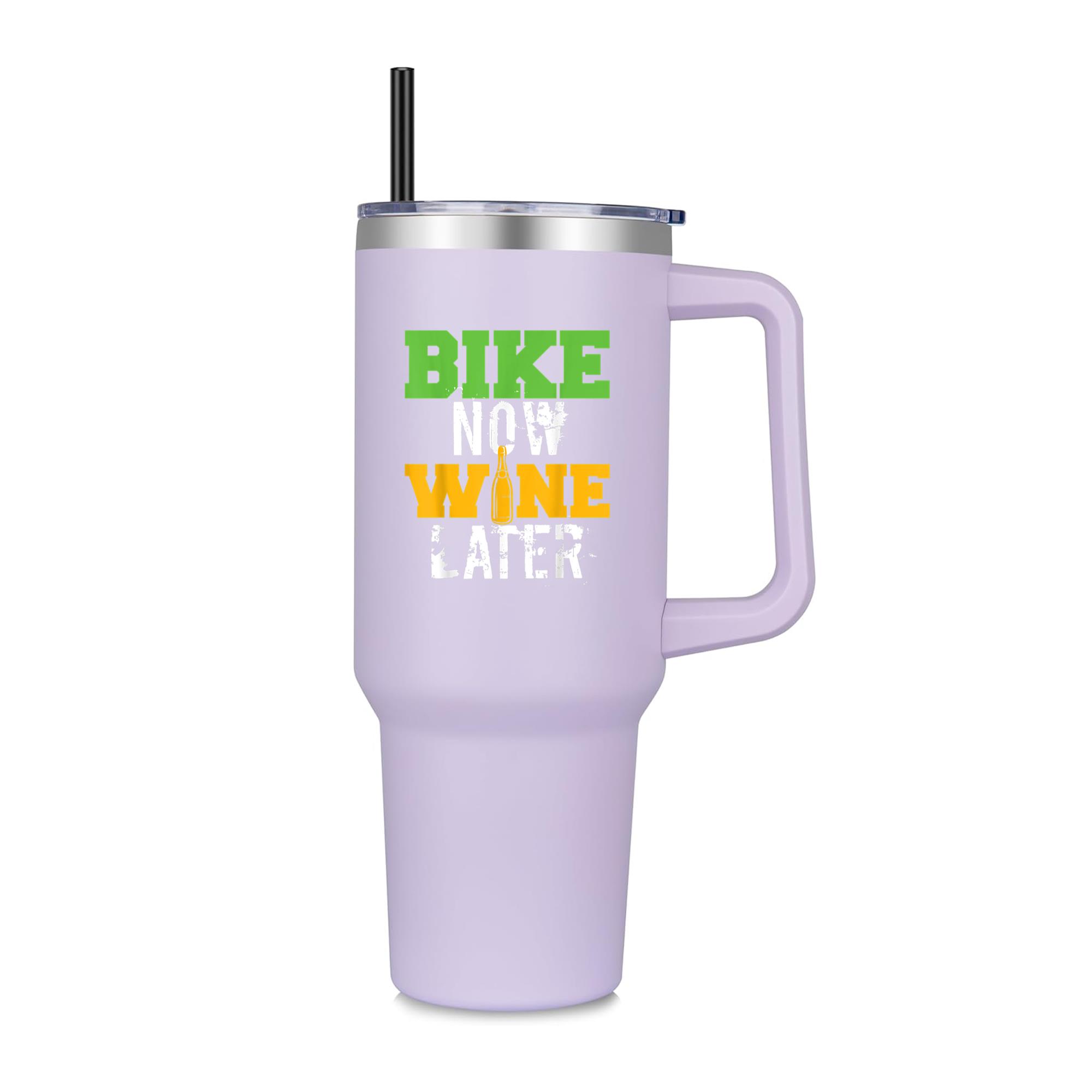Bike Now Wine Later Cycling 40oz Stainless Steel Tumbler 40oz Stainless Steel Tumbler with Handle and Straw – Double-Wall Vacuum Insulated Travel Mug with Lid