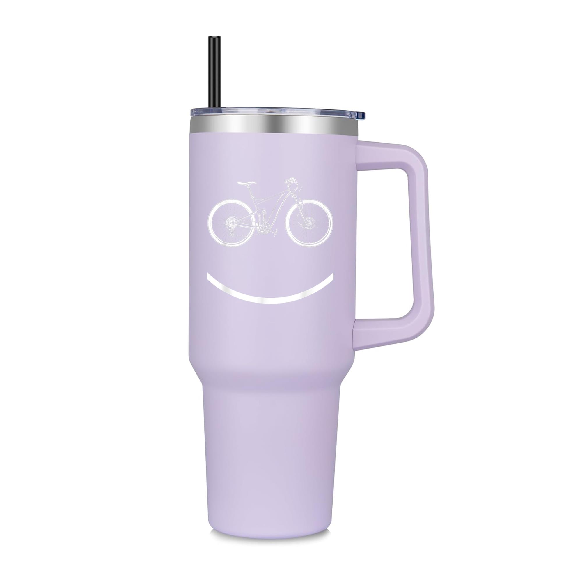 Bike Smiley Face MTB Cycling 40oz Stainless Steel Tumbler 40oz Stainless Steel Tumbler with Handle and Straw – Double-Wall Vacuum Insulated Travel Mug with Lid