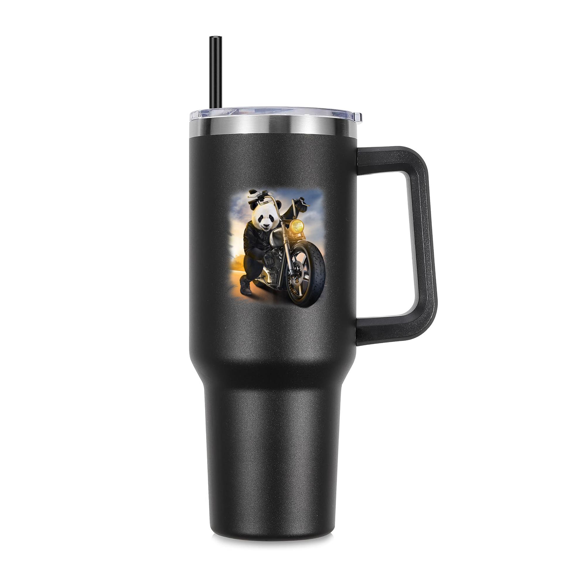 Meet your new favorite all-day companion — the Biker Giant Panda Riding Chopper Motorcycle 40oz Stainless Steel Tumbler 40oz Stainless Steel Tumbler with Handle and Straw. Built for convenience, performance, and style, this large-capacity tumbler is crafted from food-grade stainless steel and features advanced double-wall vacuum insulation that keeps drinks cold for up to 24 hours and hot for up to 8 hours.