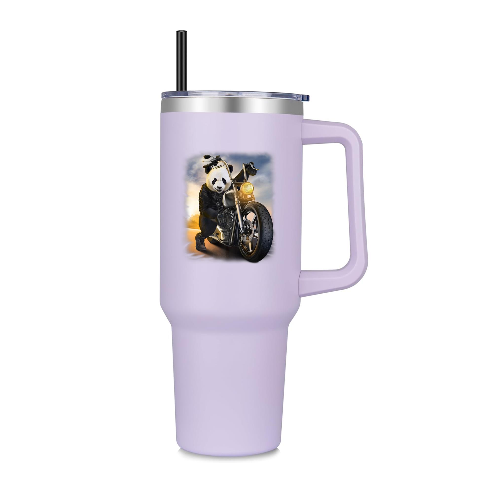Biker Giant Panda Riding Chopper Motorcycle 40oz Stainless Steel Tumbler 40oz Stainless Steel Tumbler with Handle and Straw – Double-Wall Vacuum Insulated Travel Mug with Lid