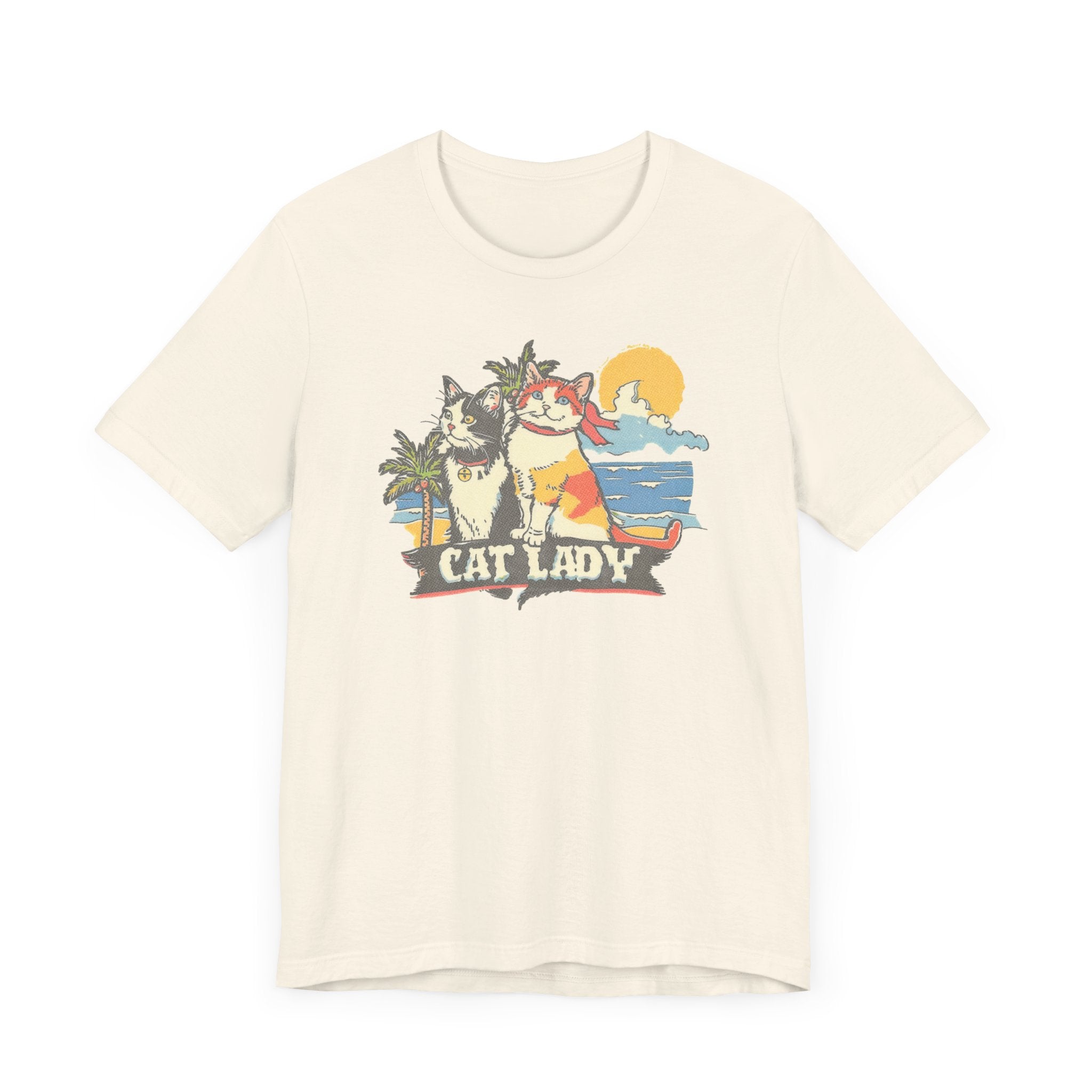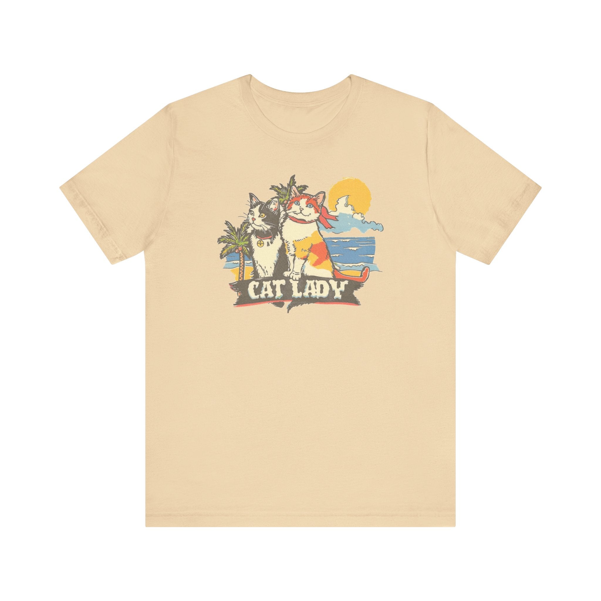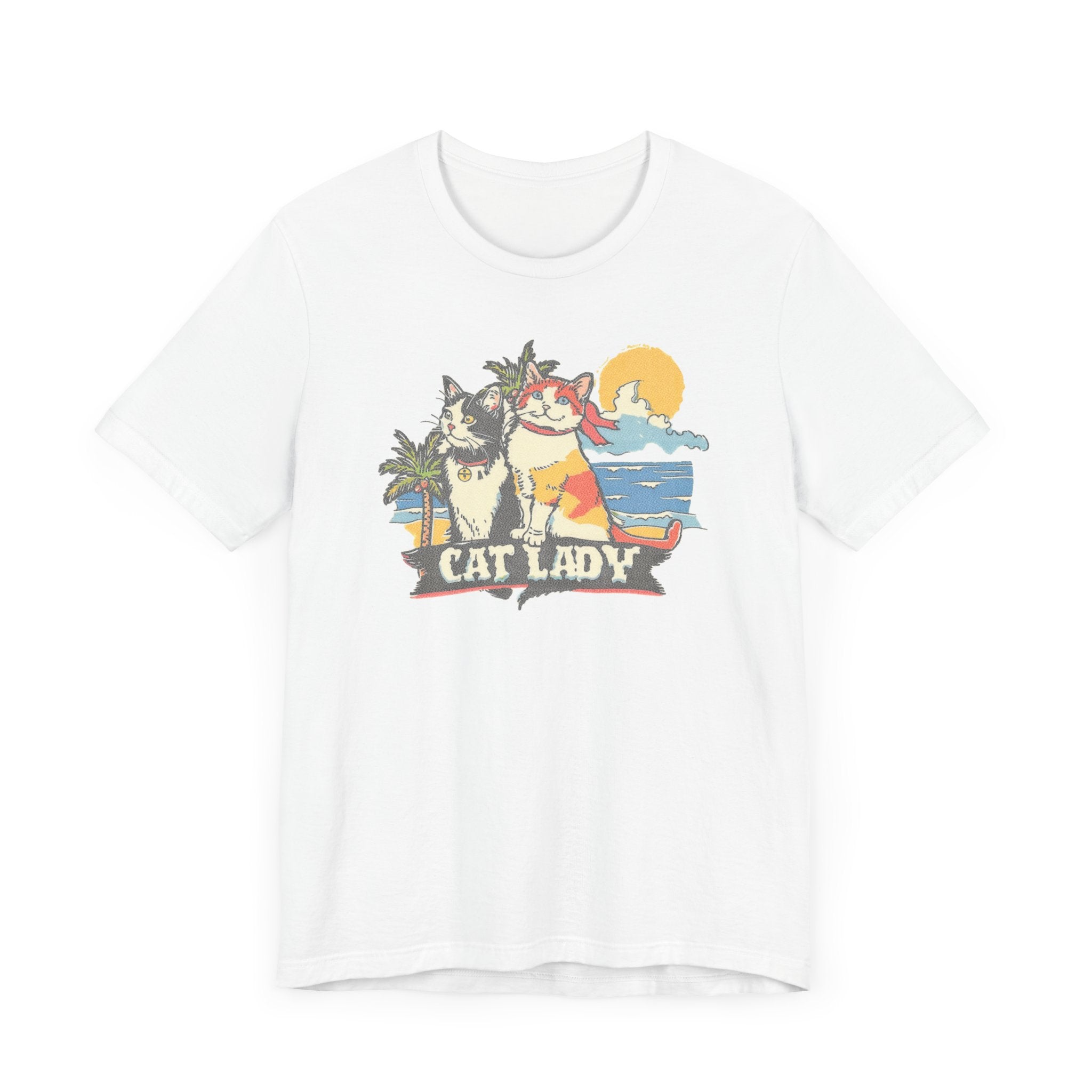 Cat Lady Beach T-Shirt – Fun Summer Feline Graphic Tee 🌴🐱 Embrace your love for cats and summer vibes with our Cat Lady Beach T-Shirt! Featuring a delightful design of two cats enjoying a sunny beach day, this tee is perfect for cat enthusiasts and beach lovers. Made from high-quality fabric, it ensures comfort and durability for your everyday adventures. Add a touch of fun and sunshine to your wardrobe with this playful and unique graphic tee! 🌞❤️ Why You’ll Love It: 👕 Ultimate Comfort: Made with 100% Airlume combed and ring-spun cotton, this tee offers a lightweight (4.2 oz/yd² or 142 g/m²) and breathable fabric that’s perfect for both active and leisure wear. 👔 Versatile Style: The retail fit and classic crew neckline make this shirt perfect for casual outings and semi-formal settings alike. Accessorize easily to create your unique look! 👍 Durable Quality: Ribbed knit collars and tapered shoulders ensure a better fit over time, while dual side seams hold the garment’s shape longer, wash after wash. 🌱 Ethically Made: Bella+Canvas products are manufactured in the USA and internationally in a humane, no-sweat-shop, sustainable manner. Proudly part of the Fair Labor Association and Platinum WRAP certified. 🔖 No Irritation: Featuring a tear-away label for added comfort, say goodbye to annoying tags! Fabric Details: 🧵 Solid Colors: 100% Airlume combed and ring-spun cotton 🧵 Ash and Heather Prism: 99% Airlume combed and ring-spun cotton, 1% polyester 🧵 Heather and Solid Blends: 52% cotton, 48% polyester 🧵 Athletic Heather and Black Heather: 90% cotton, 10% polyester Perfect For: 🎁 Gift Giving: An excellent gift for birthdays, holidays, or any special occasion for cat and nap lovers. 🌳 Everyday Wear: Whether you’re running errands, meeting friends, or just relaxing at home, this shirt is your go-to choice.