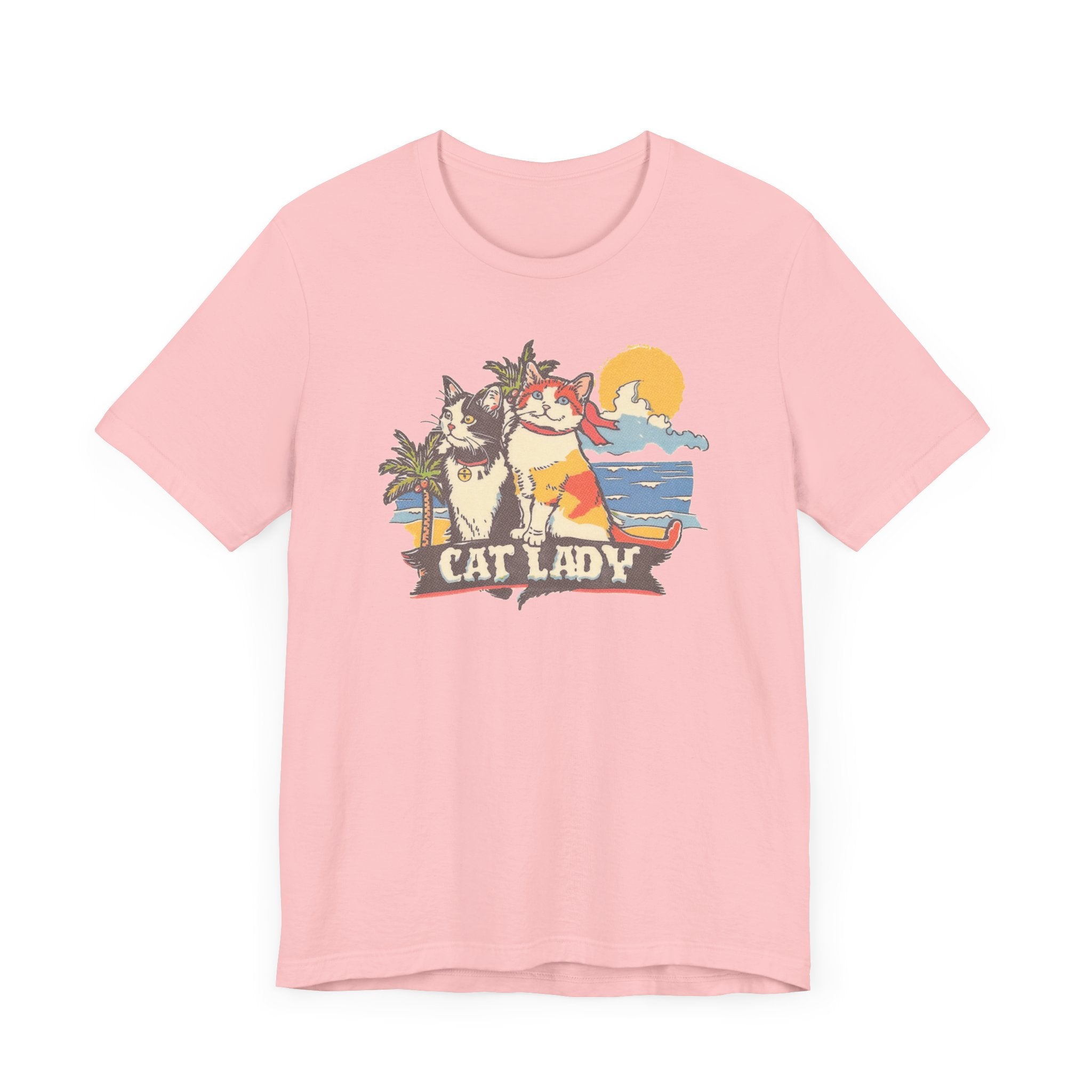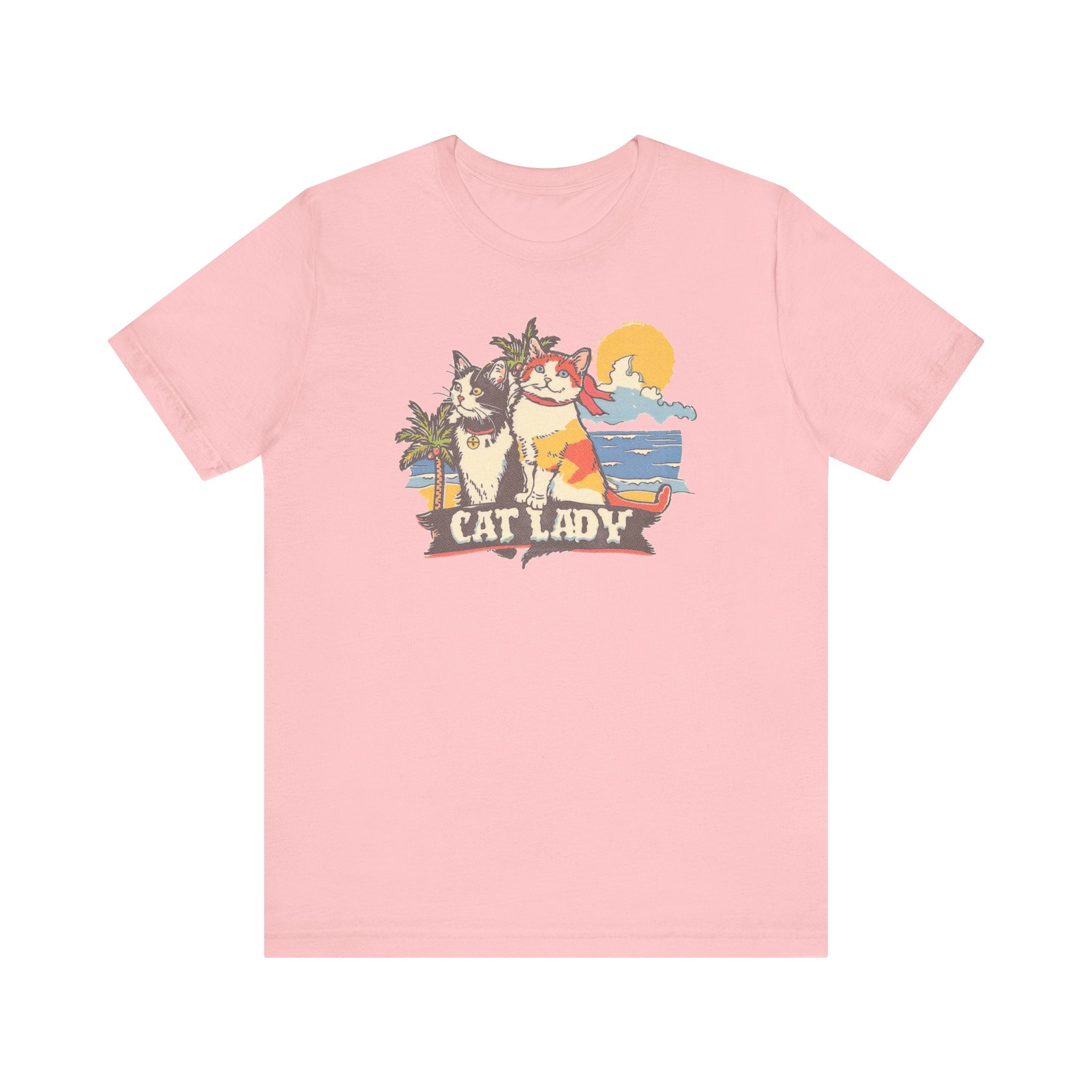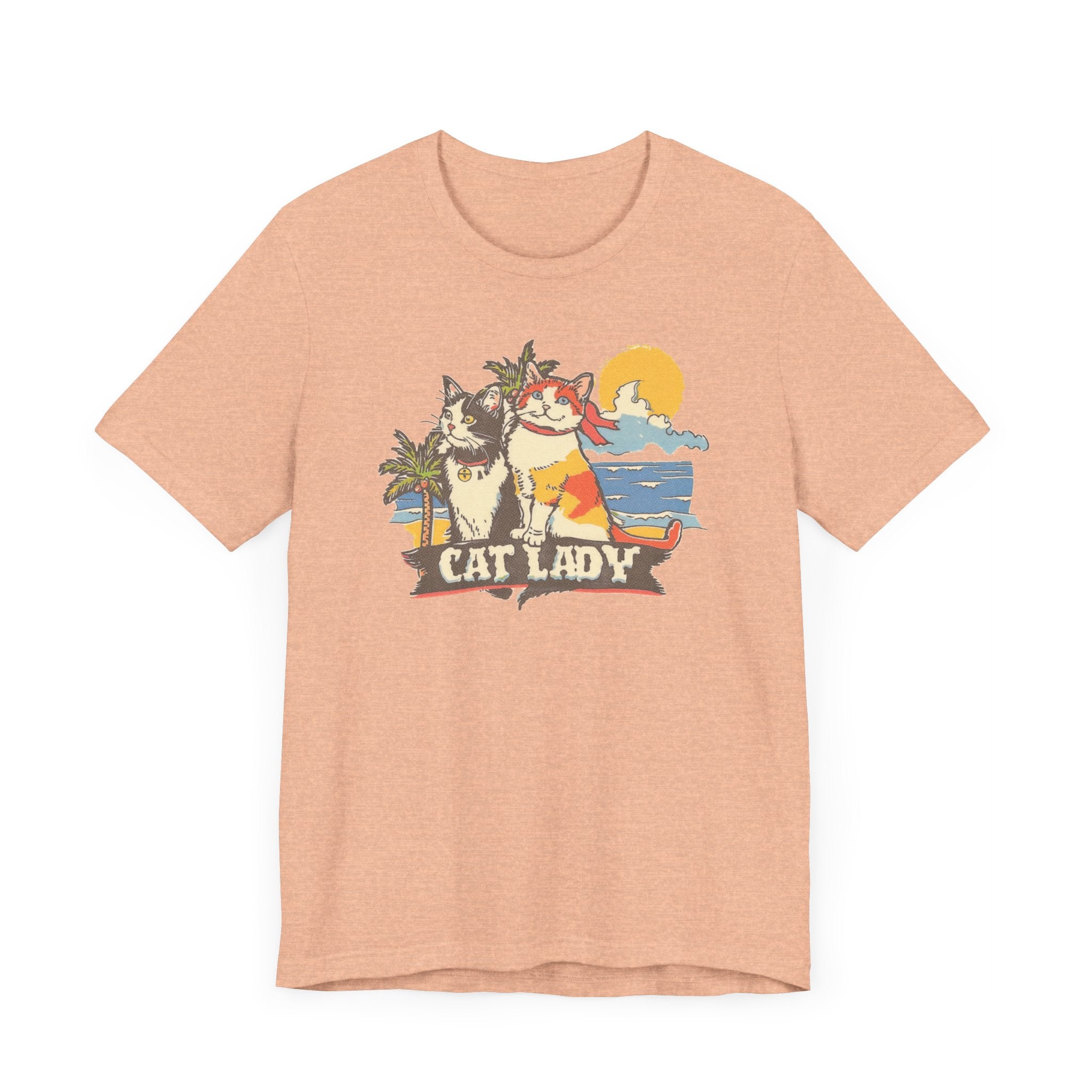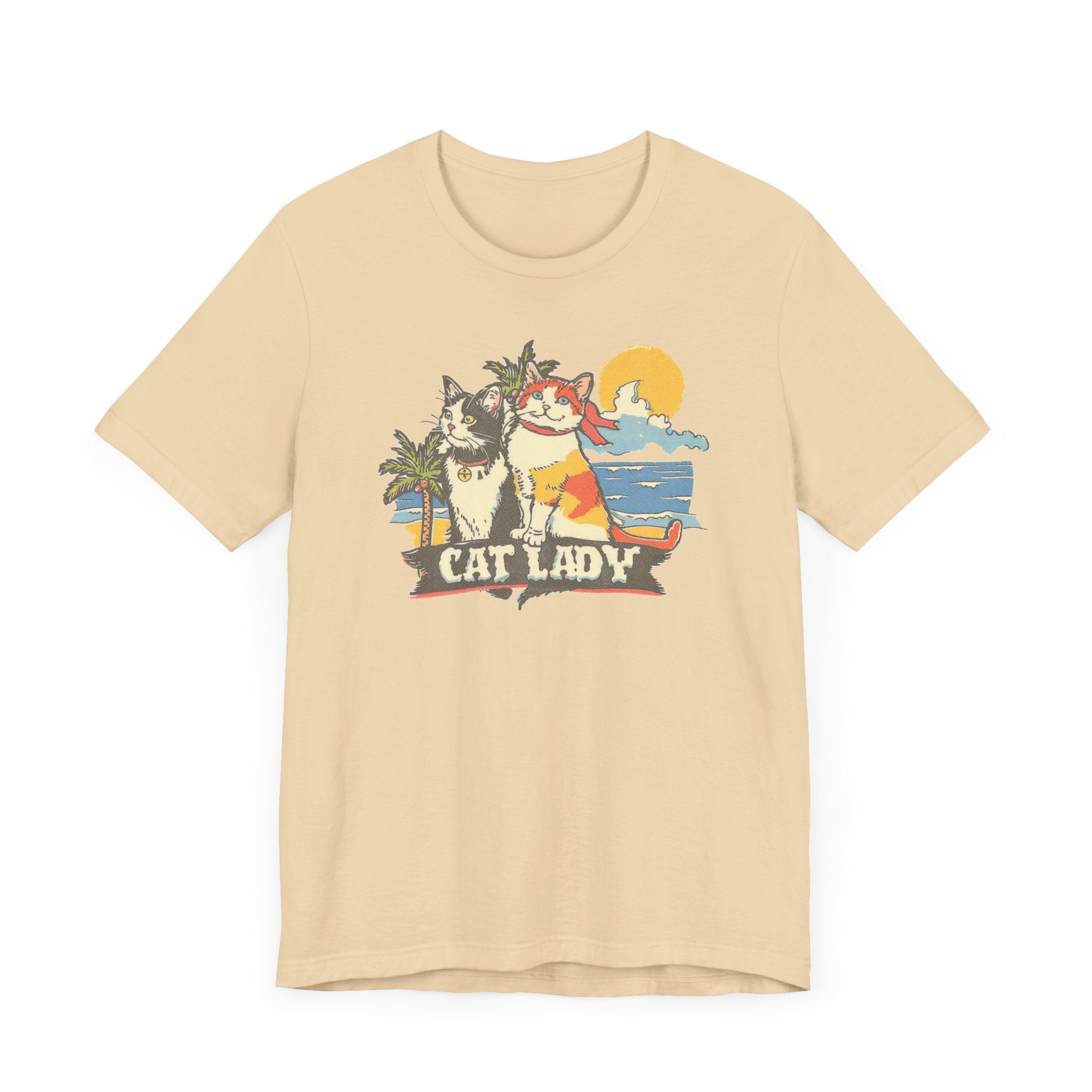 Cat Lady Beach T-Shirt – Fun Summer Feline Graphic Tee 🌴🐱 Embrace your love for cats and summer vibes with our Cat Lady Beach T-Shirt! Featuring a delightful design of two cats enjoying a sunny beach day, this tee is perfect for cat enthusiasts and beach lovers. Made from high-quality fabric, it ensures comfort and durability for your everyday adventures. Add a touch of fun and sunshine to your wardrobe with this playful and unique graphic tee! 🌞❤️ Why You’ll Love It: 👕 Ultimate Comfort: Made with 100% Airlume combed and ring-spun cotton, this tee offers a lightweight (4.2 oz/yd² or 142 g/m²) and breathable fabric that’s perfect for both active and leisure wear. 👔 Versatile Style: The retail fit and classic crew neckline make this shirt perfect for casual outings and semi-formal settings alike. Accessorize easily to create your unique look! 👍 Durable Quality: Ribbed knit collars and tapered shoulders ensure a better fit over time, while dual side seams hold the garment’s shape longer, wash after wash. 🌱 Ethically Made: Bella+Canvas products are manufactured in the USA and internationally in a humane, no-sweat-shop, sustainable manner. Proudly part of the Fair Labor Association and Platinum WRAP certified. 🔖 No Irritation: Featuring a tear-away label for added comfort, say goodbye to annoying tags! Fabric Details: 🧵 Solid Colors: 100% Airlume combed and ring-spun cotton 🧵 Ash and Heather Prism: 99% Airlume combed and ring-spun cotton, 1% polyester 🧵 Heather and Solid Blends: 52% cotton, 48% polyester 🧵 Athletic Heather and Black Heather: 90% cotton, 10% polyester Perfect For: 🎁 Gift Giving: An excellent gift for birthdays, holidays, or any special occasion for cat and nap lovers. 🌳 Everyday Wear: Whether you’re running errands, meeting friends, or just relaxing at home, this shirt is your go-to choice.