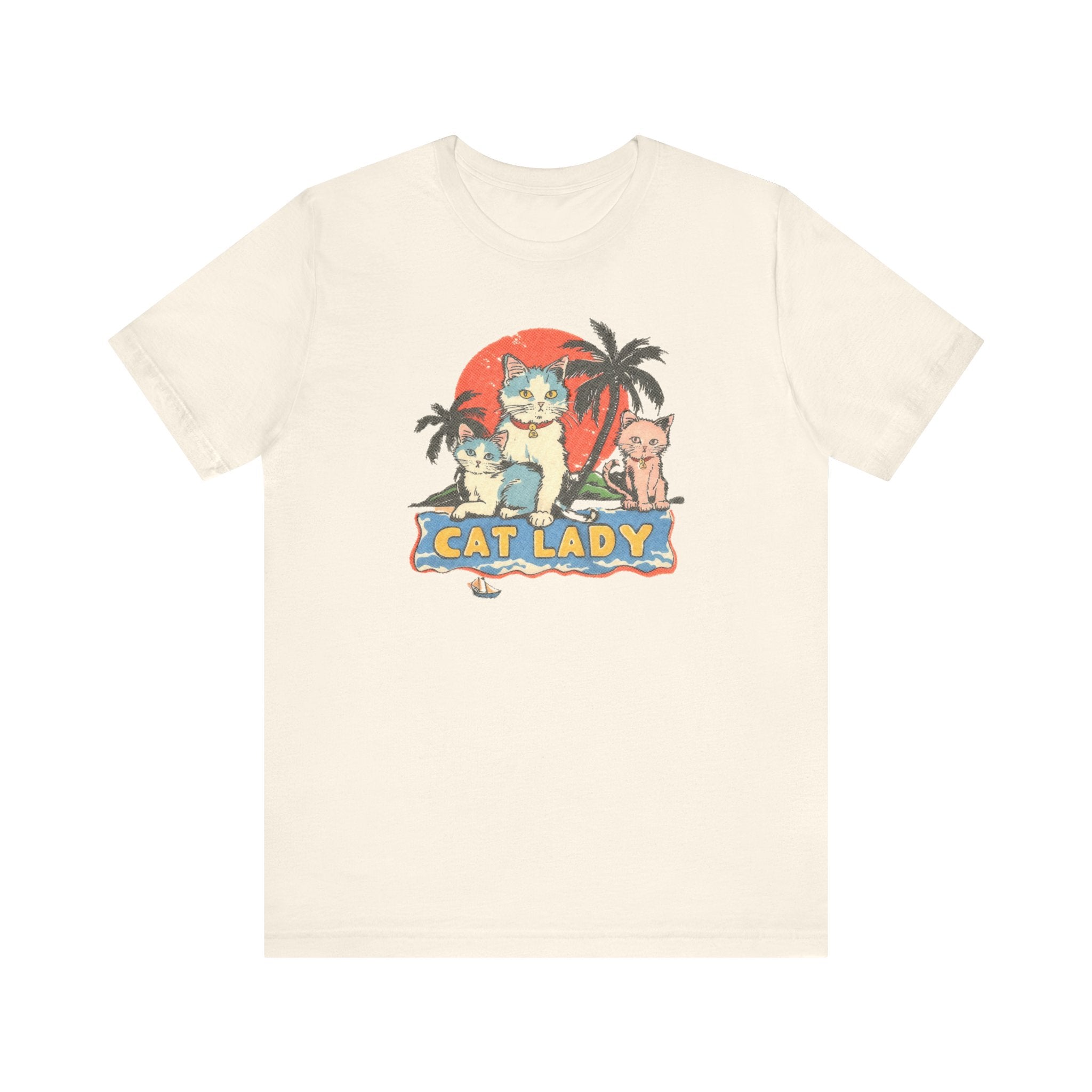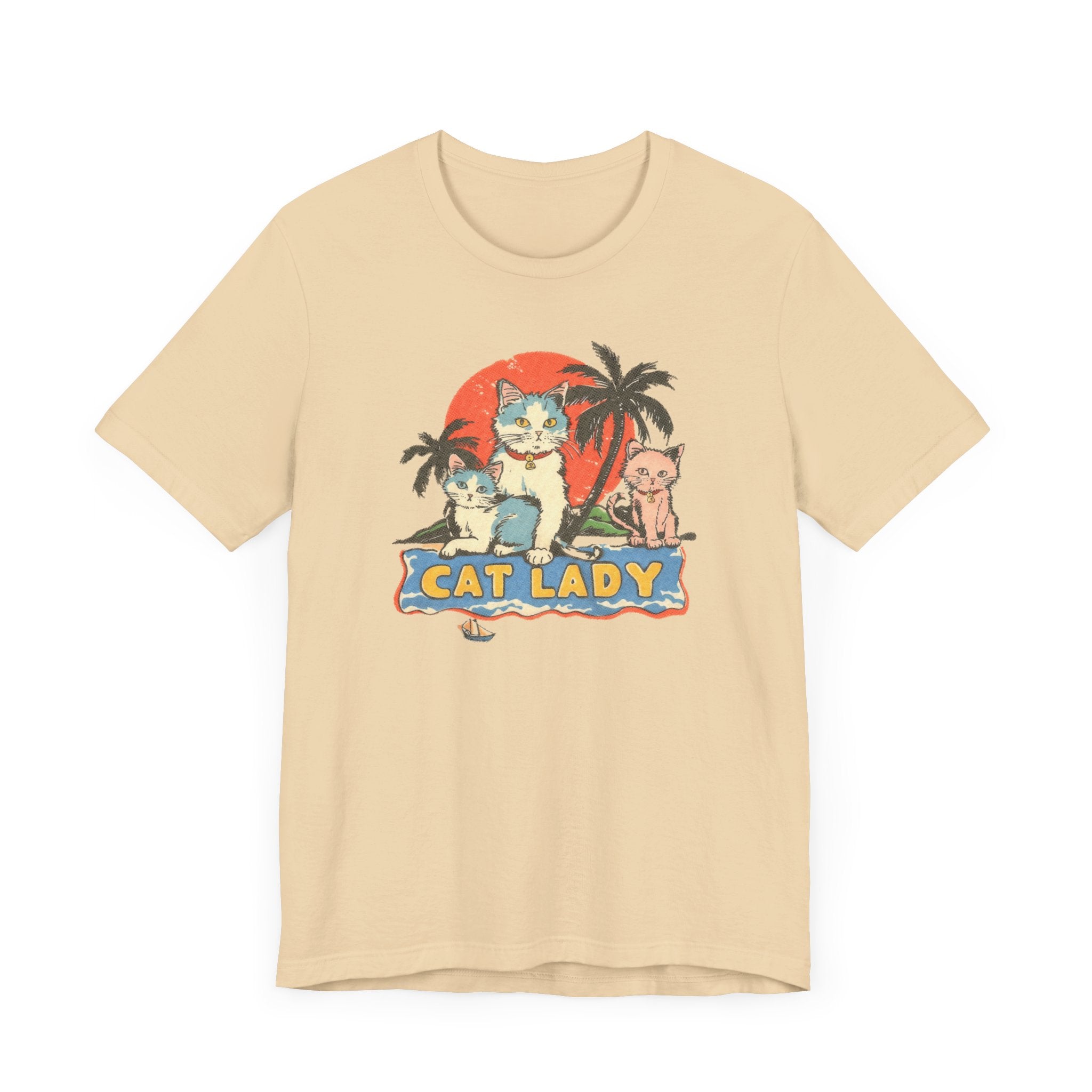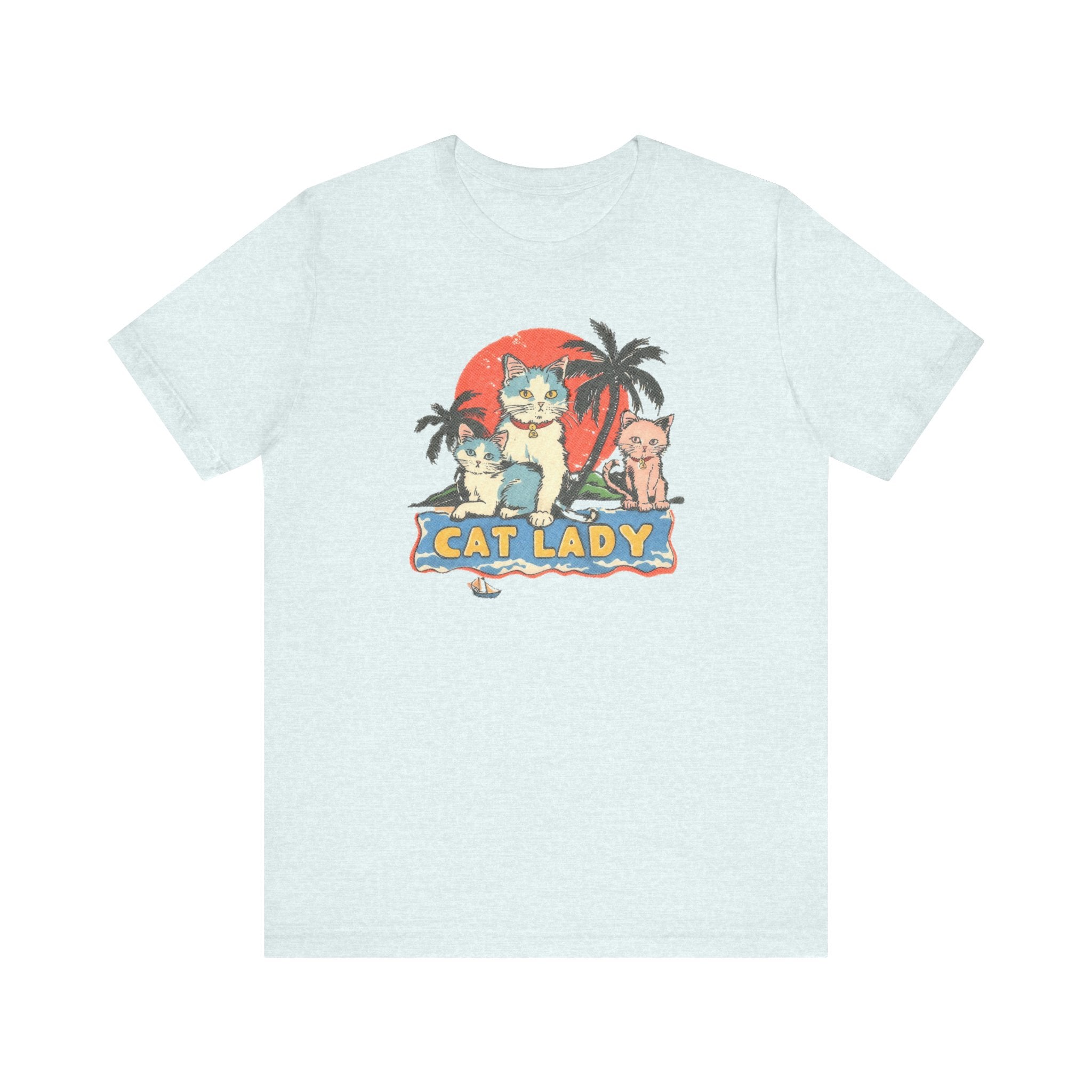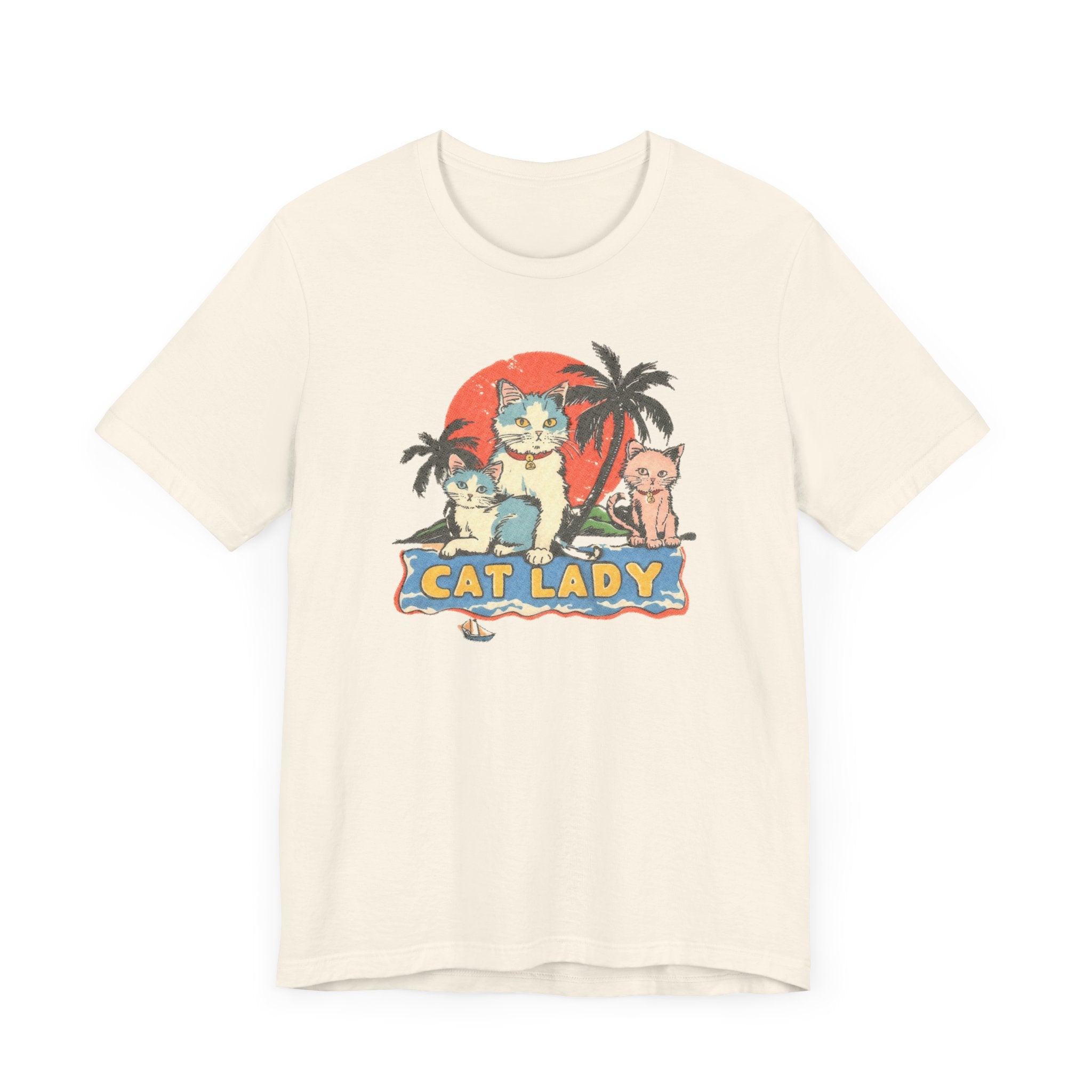 Cat Lady Sunset T-Shirt – Fun Tropical Beach Feline Tee 🌴🐱 Embrace your love for cats and tropical sunsets with our Cat Lady Sunset T-Shirt! Featuring a charming design of cats enjoying a beach scene at sunset, this tee is perfect for cat enthusiasts and beach lovers. Made from high-quality fabric, it ensures comfort and durability for all your adventures. Add a touch of tropical fun and sunset vibes to your wardrobe with this delightful and unique graphic tee! 🌞❤️ Why You’ll Love It: 👕 Ultimate Comfort: Made with 100% Airlume combed and ring-spun cotton, this tee offers a lightweight (4.2 oz/yd² or 142 g/m²) and breathable fabric that’s perfect for both active and leisure wear. 👔 Versatile Style: The retail fit and classic crew neckline make this shirt perfect for casual outings and semi-formal settings alike. Accessorize easily to create your unique look! 👍 Durable Quality: Ribbed knit collars and tapered shoulders ensure a better fit over time, while dual side seams hold the garment’s shape longer, wash after wash. 🌱 Ethically Made: Bella+Canvas products are manufactured in the USA and internationally in a humane, no-sweat-shop, sustainable manner. Proudly part of the Fair Labor Association and Platinum WRAP certified. 🔖 No Irritation: Featuring a tear-away label for added comfort, say goodbye to annoying tags! Fabric Details: 🧵 Solid Colors: 100% Airlume combed and ring-spun cotton 🧵 Ash and Heather Prism: 99% Airlume combed and ring-spun cotton, 1% polyester 🧵 Heather and Solid Blends: 52% cotton, 48% polyester 🧵 Athletic Heather and Black Heather: 90% cotton, 10% polyester Perfect For: 🎁 Gift Giving: An excellent gift for birthdays, holidays, or any special occasion for cat and nap lovers. 🌳 Everyday Wear: Whether you’re running errands, meeting friends, or just relaxing at home, this shirt is your go-to choice.