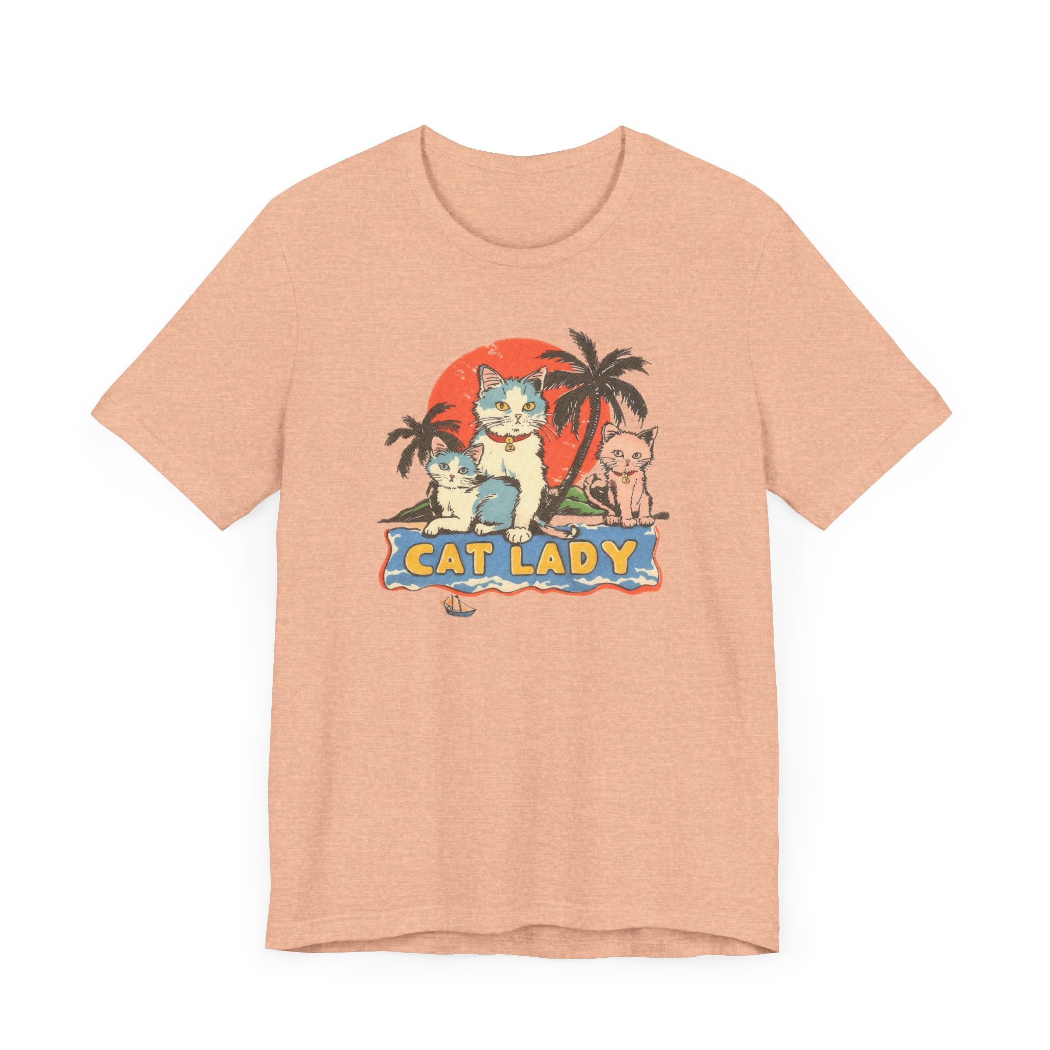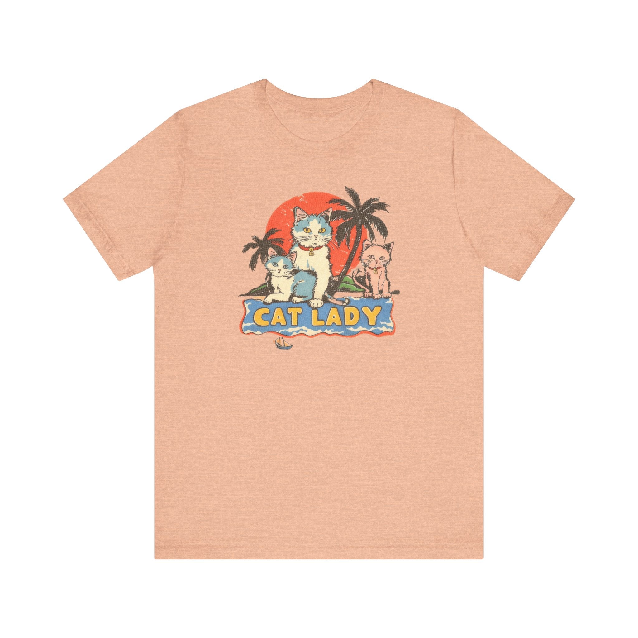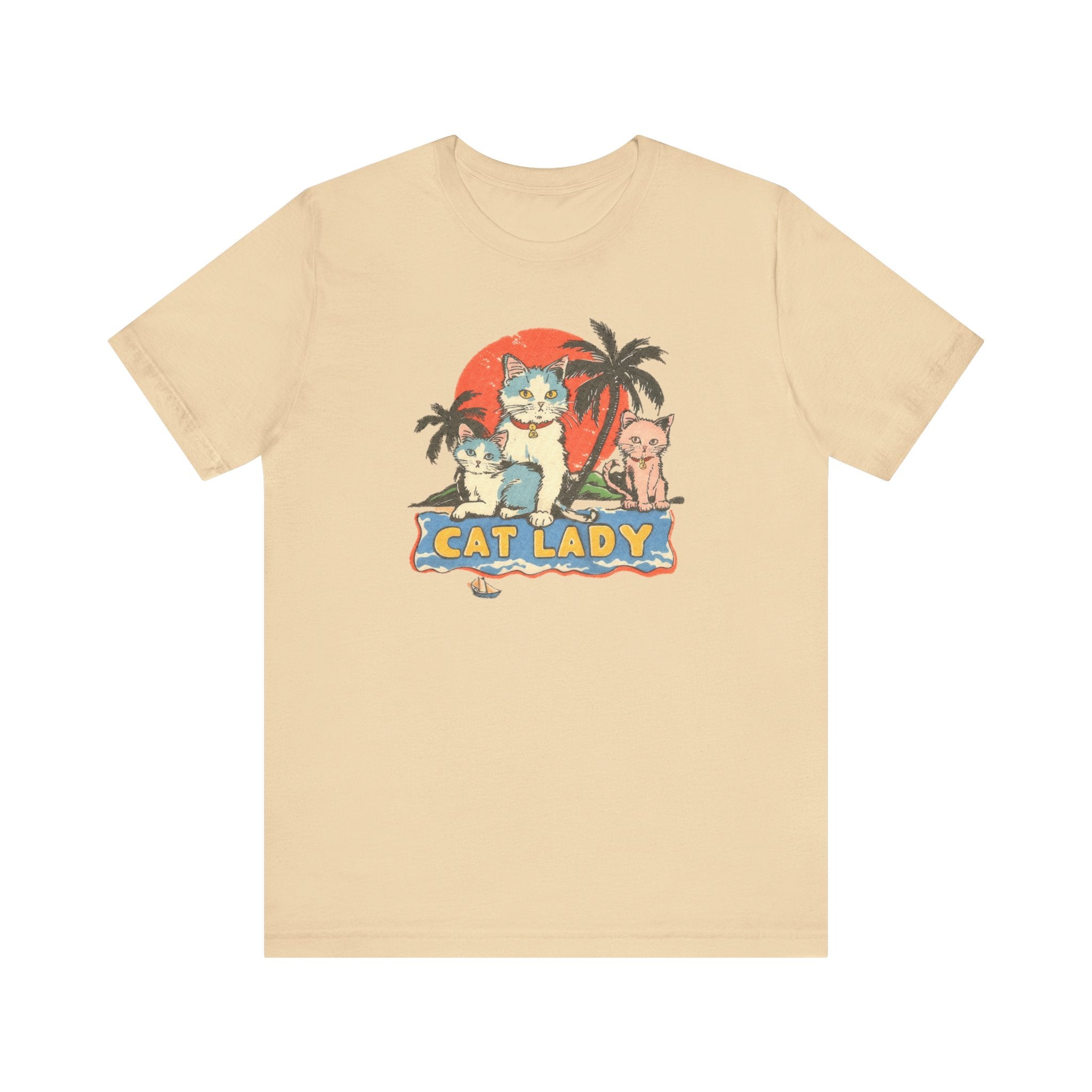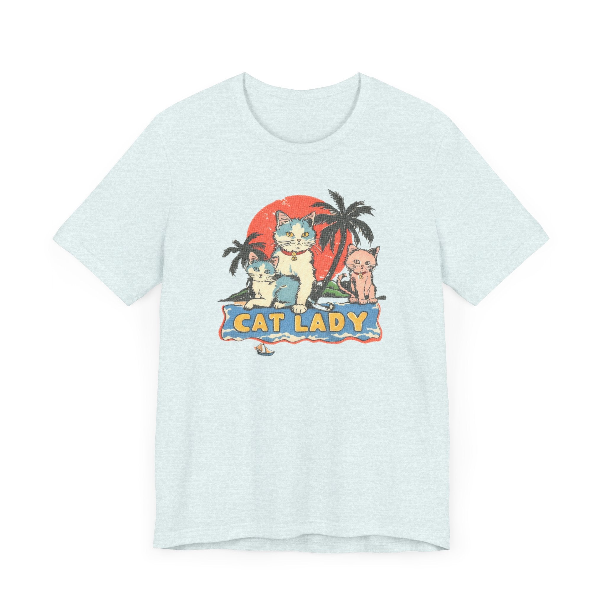 Cat Lady Sunset T-Shirt – Fun Tropical Beach Feline Tee 🌴🐱 Embrace your love for cats and tropical sunsets with our Cat Lady Sunset T-Shirt! Featuring a charming design of cats enjoying a beach scene at sunset, this tee is perfect for cat enthusiasts and beach lovers. Made from high-quality fabric, it ensures comfort and durability for all your adventures. Add a touch of tropical fun and sunset vibes to your wardrobe with this delightful and unique graphic tee! 🌞❤️ Why You’ll Love It: 👕 Ultimate Comfort: Made with 100% Airlume combed and ring-spun cotton, this tee offers a lightweight (4.2 oz/yd² or 142 g/m²) and breathable fabric that’s perfect for both active and leisure wear. 👔 Versatile Style: The retail fit and classic crew neckline make this shirt perfect for casual outings and semi-formal settings alike. Accessorize easily to create your unique look! 👍 Durable Quality: Ribbed knit collars and tapered shoulders ensure a better fit over time, while dual side seams hold the garment’s shape longer, wash after wash. 🌱 Ethically Made: Bella+Canvas products are manufactured in the USA and internationally in a humane, no-sweat-shop, sustainable manner. Proudly part of the Fair Labor Association and Platinum WRAP certified. 🔖 No Irritation: Featuring a tear-away label for added comfort, say goodbye to annoying tags! Fabric Details: 🧵 Solid Colors: 100% Airlume combed and ring-spun cotton 🧵 Ash and Heather Prism: 99% Airlume combed and ring-spun cotton, 1% polyester 🧵 Heather and Solid Blends: 52% cotton, 48% polyester 🧵 Athletic Heather and Black Heather: 90% cotton, 10% polyester Perfect For: 🎁 Gift Giving: An excellent gift for birthdays, holidays, or any special occasion for cat and nap lovers. 🌳 Everyday Wear: Whether you’re running errands, meeting friends, or just relaxing at home, this shirt is your go-to choice.