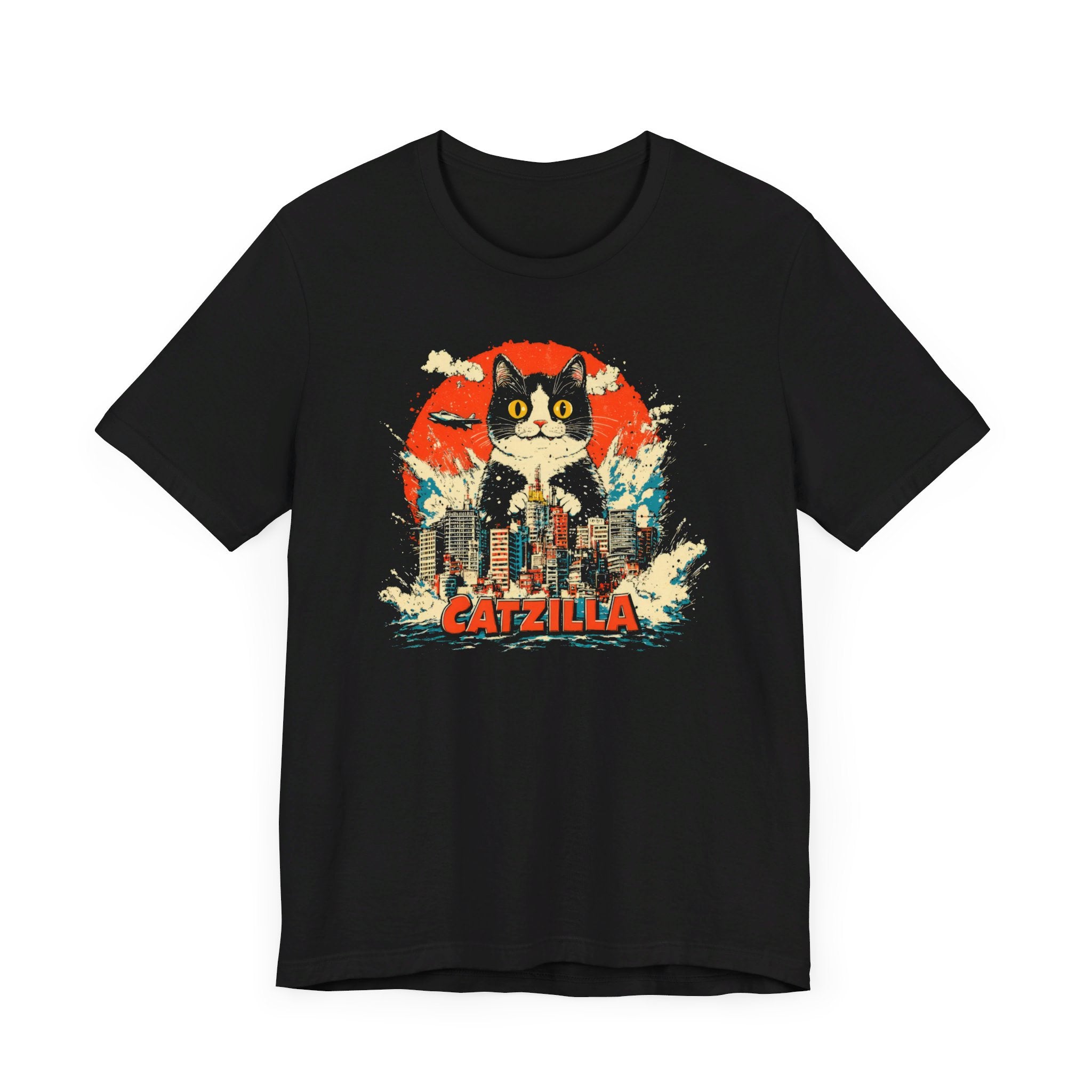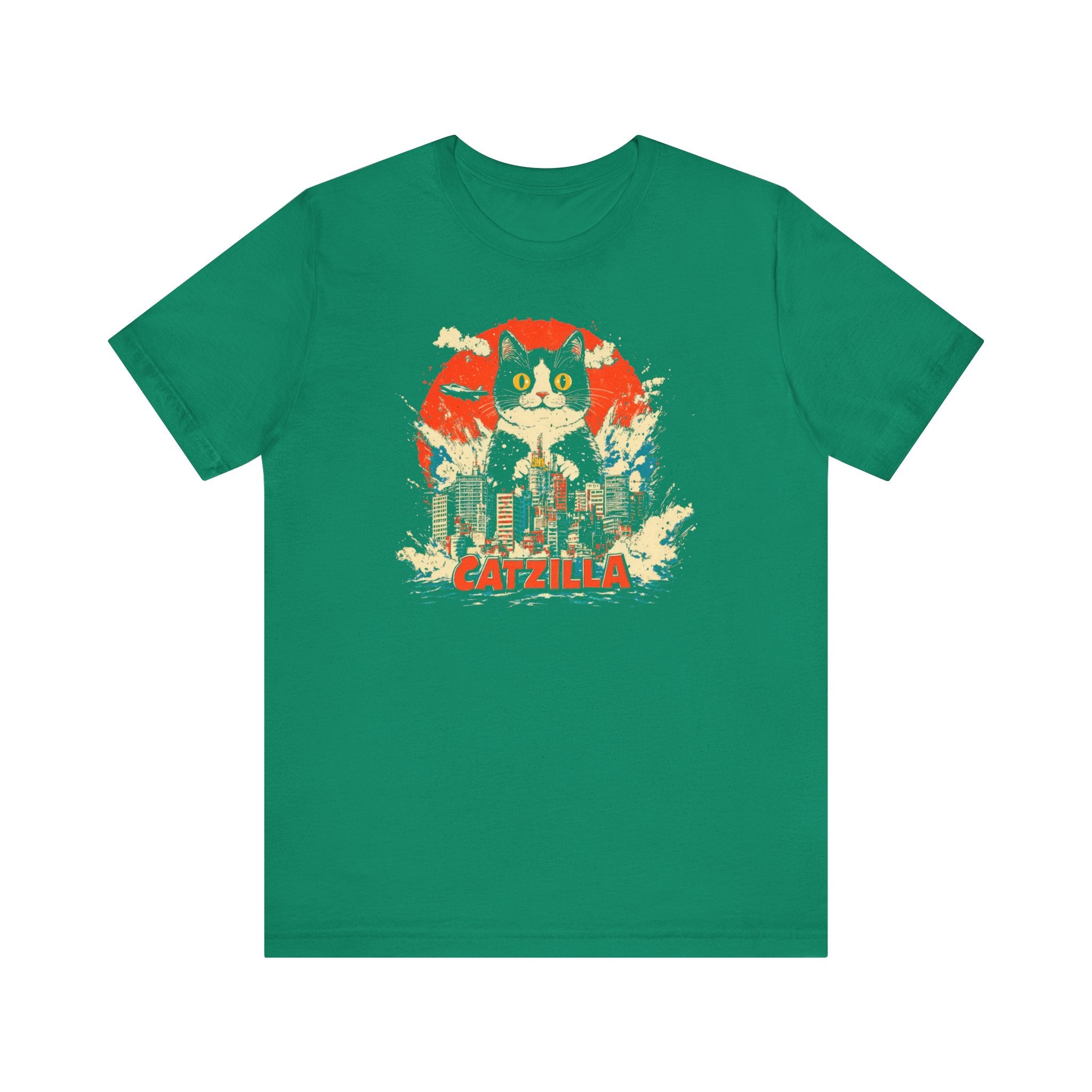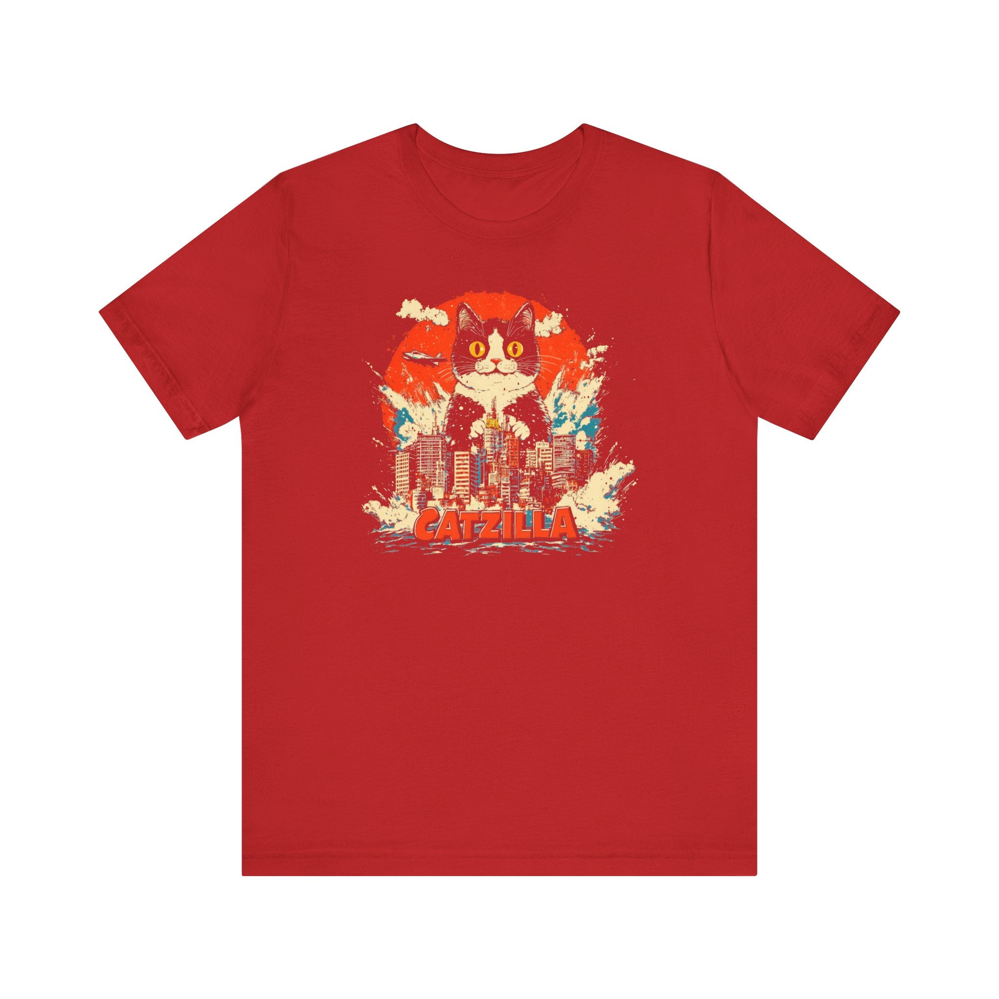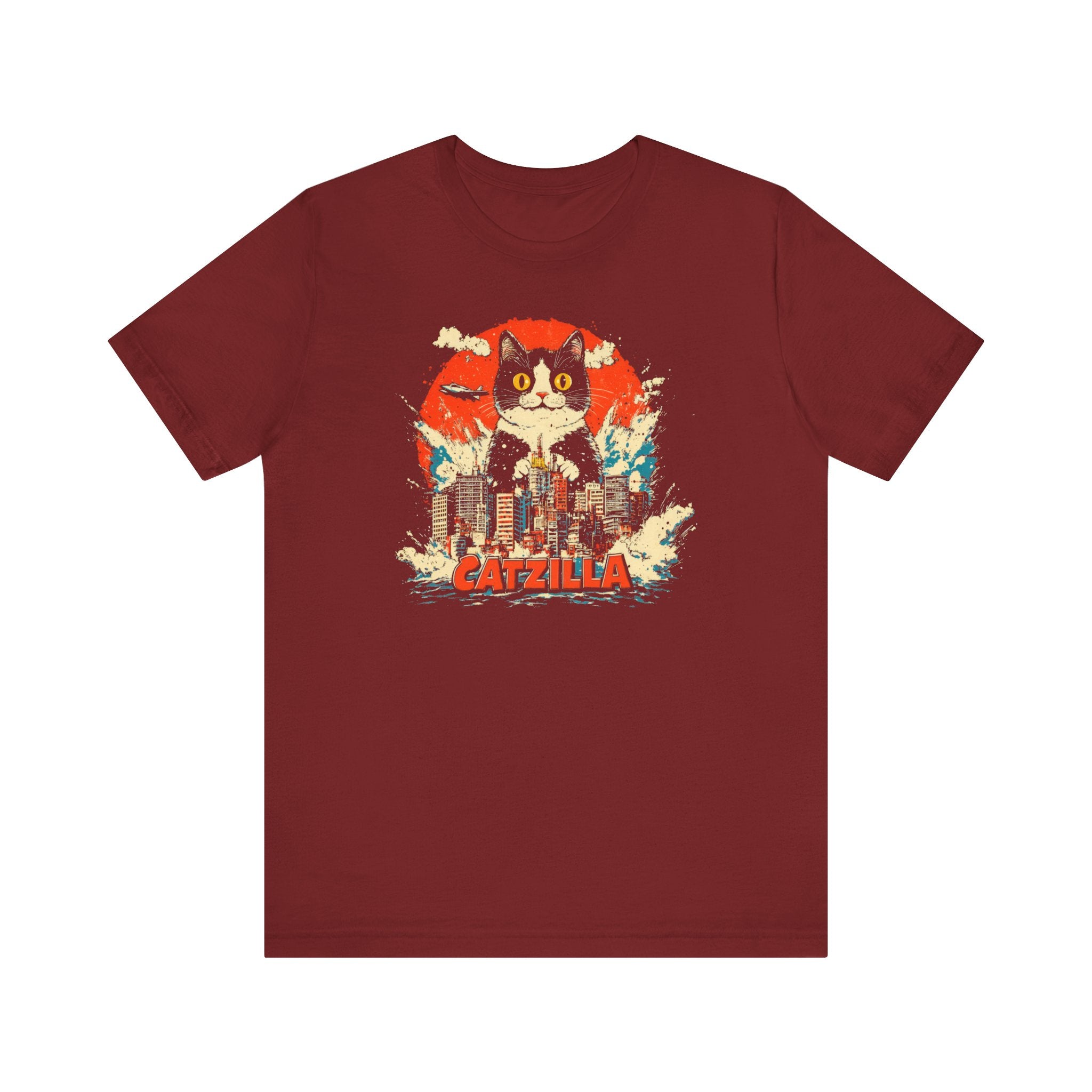 Get ready for a feline frenzy with our Catzilla City Smash T-Shirt! 🐱🌆 This playful design features the mighty Catzilla making waves and smashing through the city. Perfect for cat lovers with a sense of humor, this tee adds a fun and quirky touch to your collection. Let Catzilla bring some excitement to your everyday style! Why You’ll Love It: 👕 Ultimate Comfort: Made with 100% Airlume combed and ring-spun cotton, this tee offers a lightweight (4.2 oz/yd² or 142 g/m²) and breathable fabric that’s perfect for both active and leisure wear. 👔 Versatile Style: The retail fit and classic crew neckline make this shirt perfect for casual outings and semi-formal settings alike. Accessorize easily to create your unique look! 👍 Durable Quality: Ribbed knit collars and tapered shoulders ensure a better fit over time, while dual side seams hold the garment’s shape longer, wash after wash. 🌱 Ethically Made: Bella+Canvas products are manufactured in the USA and internationally in a humane, no-sweat-shop, sustainable manner. Proudly part of the Fair Labor Association and Platinum WRAP certified. 🔖 No Irritation: Featuring a tear-away label for added comfort, say goodbye to annoying tags! Fabric Details: 🧵 Solid Colors: 100% Airlume combed and ring-spun cotton 🧵 Ash and Heather Prism: 99% Airlume combed and ring-spun cotton, 1% polyester 🧵 Heather and Solid Blends: 52% cotton, 48% polyester 🧵 Athletic Heather and Black Heather: 90% cotton, 10% polyester Perfect For: 🎁 Gift Giving: An excellent gift for birthdays, holidays, or any special occasion for cat and fashion lovers. 🌳 Everyday Wear: Whether you’re running errands, meeting friends, or just relaxing at home, this shirt is your go-to choice.