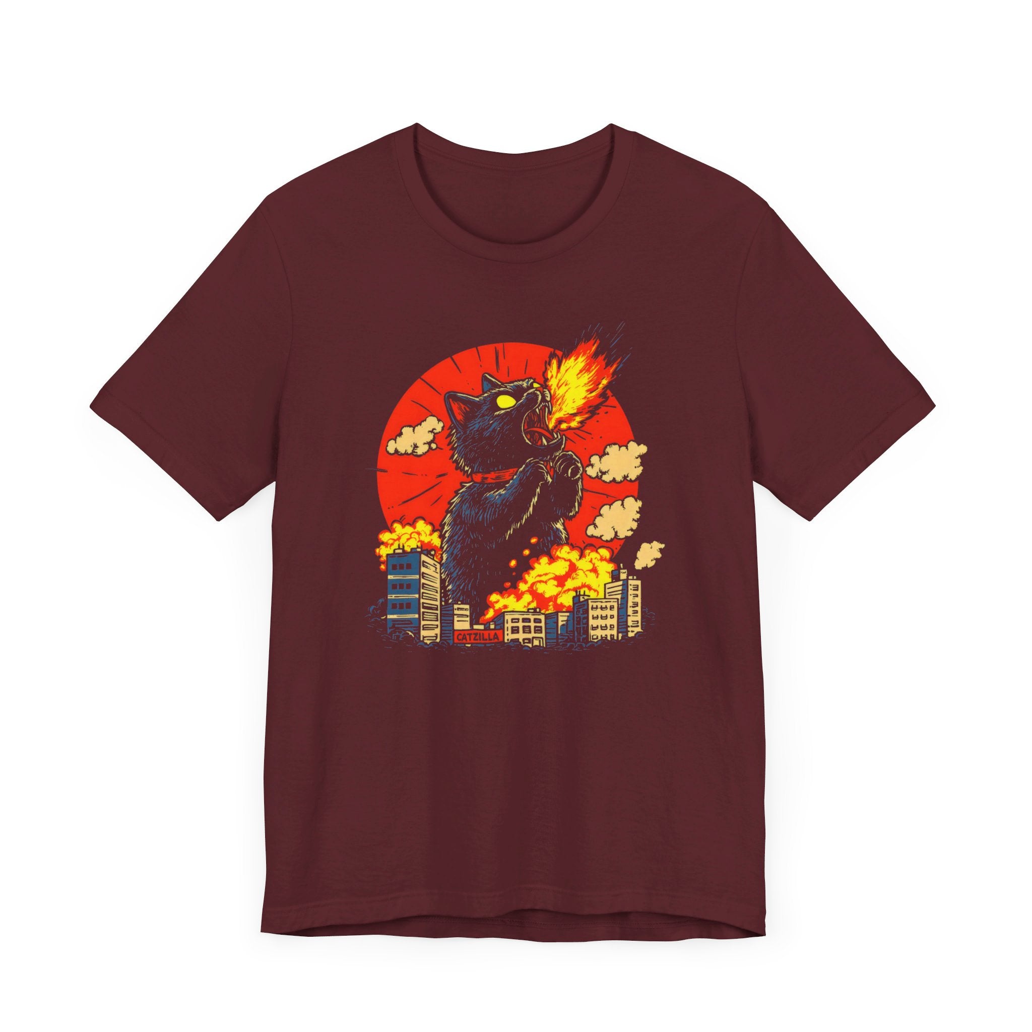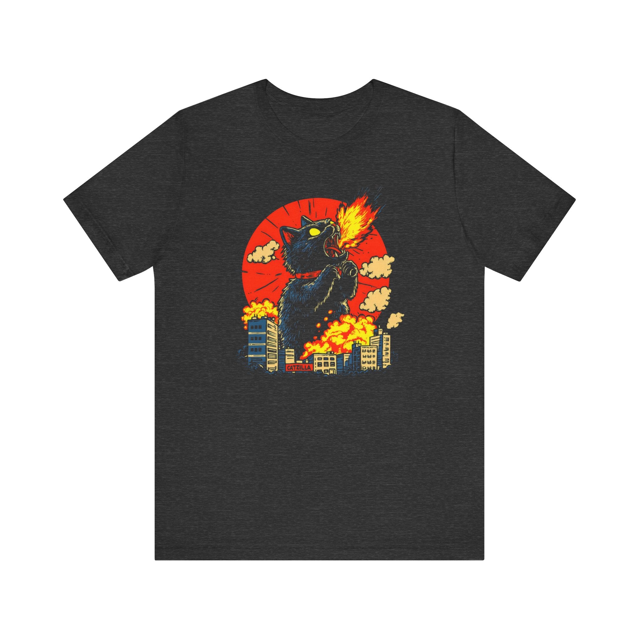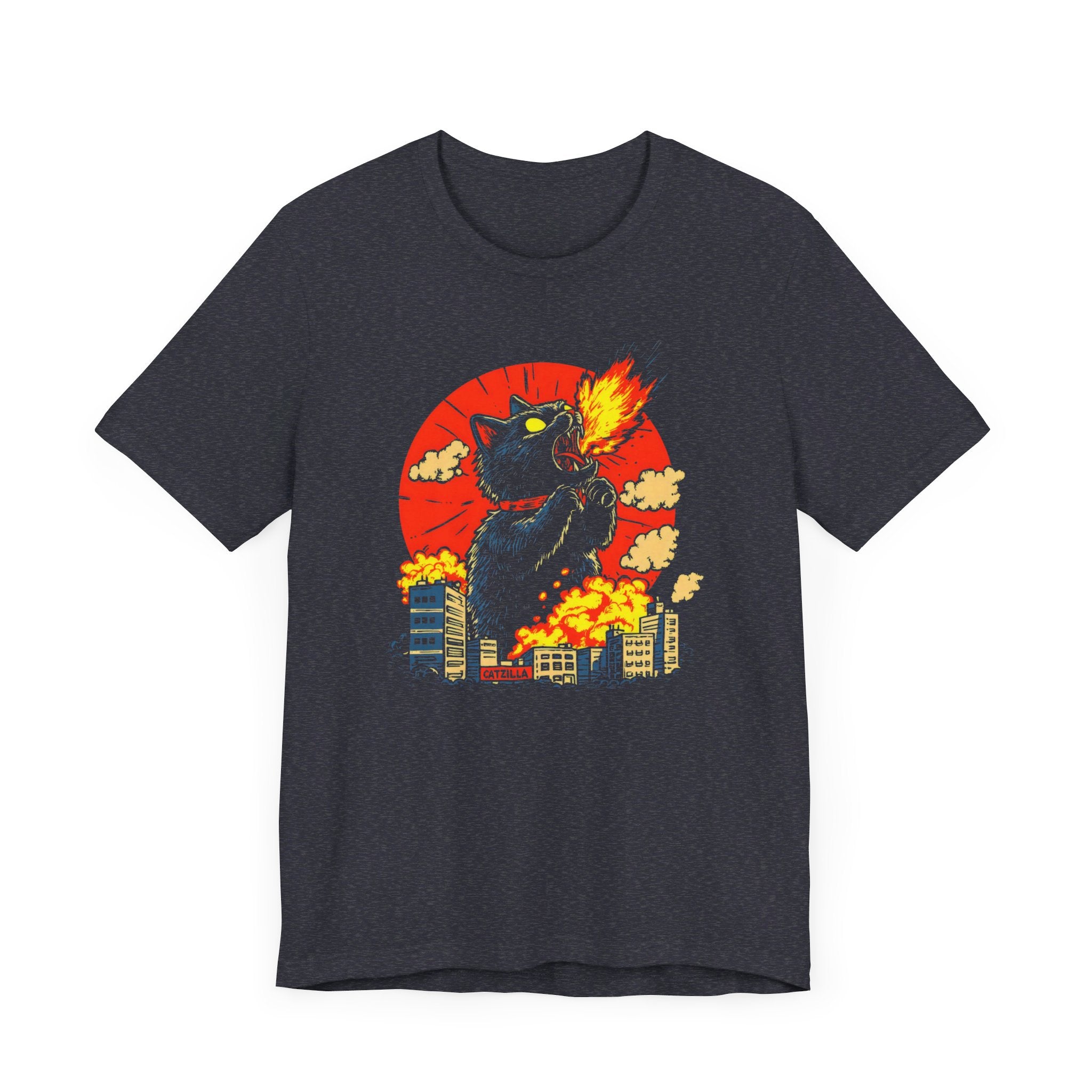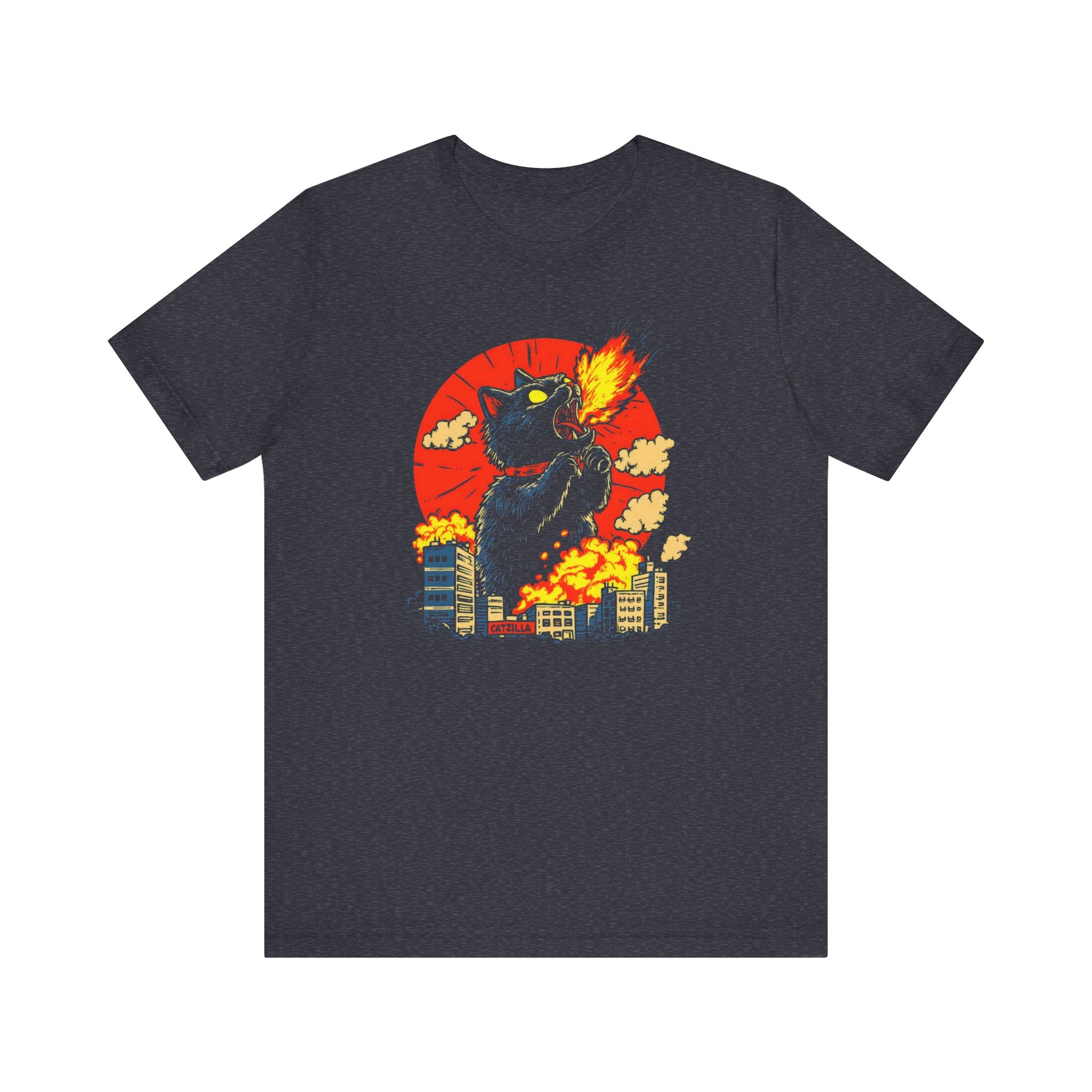 Get ready to roar with our Catzilla Flame Roar T-Shirt! 🐱🔥 This dynamic design features a fierce black Catzilla unleashing a powerful firebreath over the city. Perfect for those who love bold and eye-catching fashion, this tee adds a burst of energy to your wardrobe. Let Catzilla’s roar ignite your style! Why You’ll Love It: 👕 Ultimate Comfort: Made with 100% Airlume combed and ring-spun cotton, this tee offers a lightweight (4.2 oz/yd² or 142 g/m²) and breathable fabric that’s perfect for both active and leisure wear. 👔 Versatile Style: The retail fit and classic crew neckline make this shirt perfect for casual outings and semi-formal settings alike. Accessorize easily to create your unique look! 👍 Durable Quality: Ribbed knit collars and tapered shoulders ensure a better fit over time, while dual side seams hold the garment’s shape longer, wash after wash. 🌱 Ethically Made: Bella+Canvas products are manufactured in the USA and internationally in a humane, no-sweat-shop, sustainable manner. Proudly part of the Fair Labor Association and Platinum WRAP certified. 🔖 No Irritation: Featuring a tear-away label for added comfort, say goodbye to annoying tags! Fabric Details: 🧵 Solid Colors: 100% Airlume combed and ring-spun cotton 🧵 Ash and Heather Prism: 99% Airlume combed and ring-spun cotton, 1% polyester 🧵 Heather and Solid Blends: 52% cotton, 48% polyester 🧵 Athletic Heather and Black Heather: 90% cotton, 10% polyester Perfect For: 🎁 Gift Giving: An excellent gift for birthdays, holidays, or any special occasion for cat and fashion lovers. 🌳 Everyday Wear: Whether you’re running errands, meeting friends, or just relaxing at home, this shirt is your go-to choice.