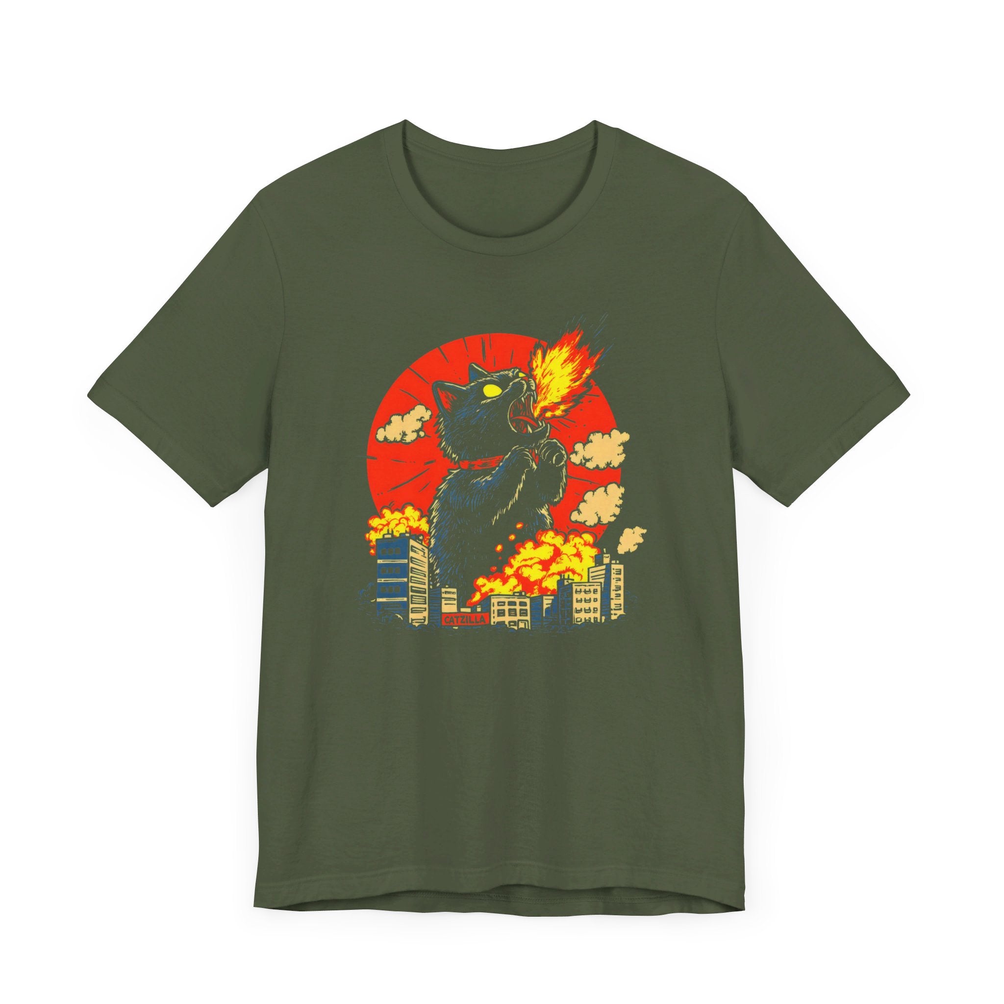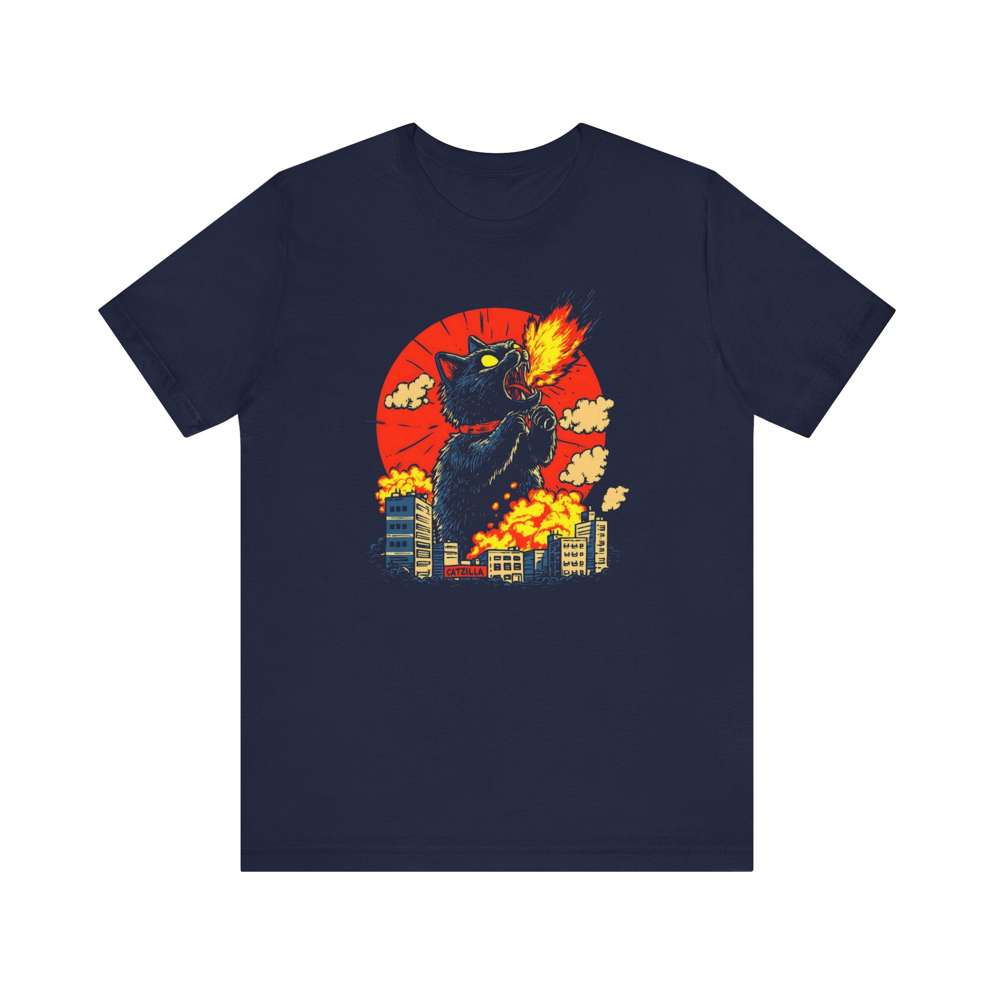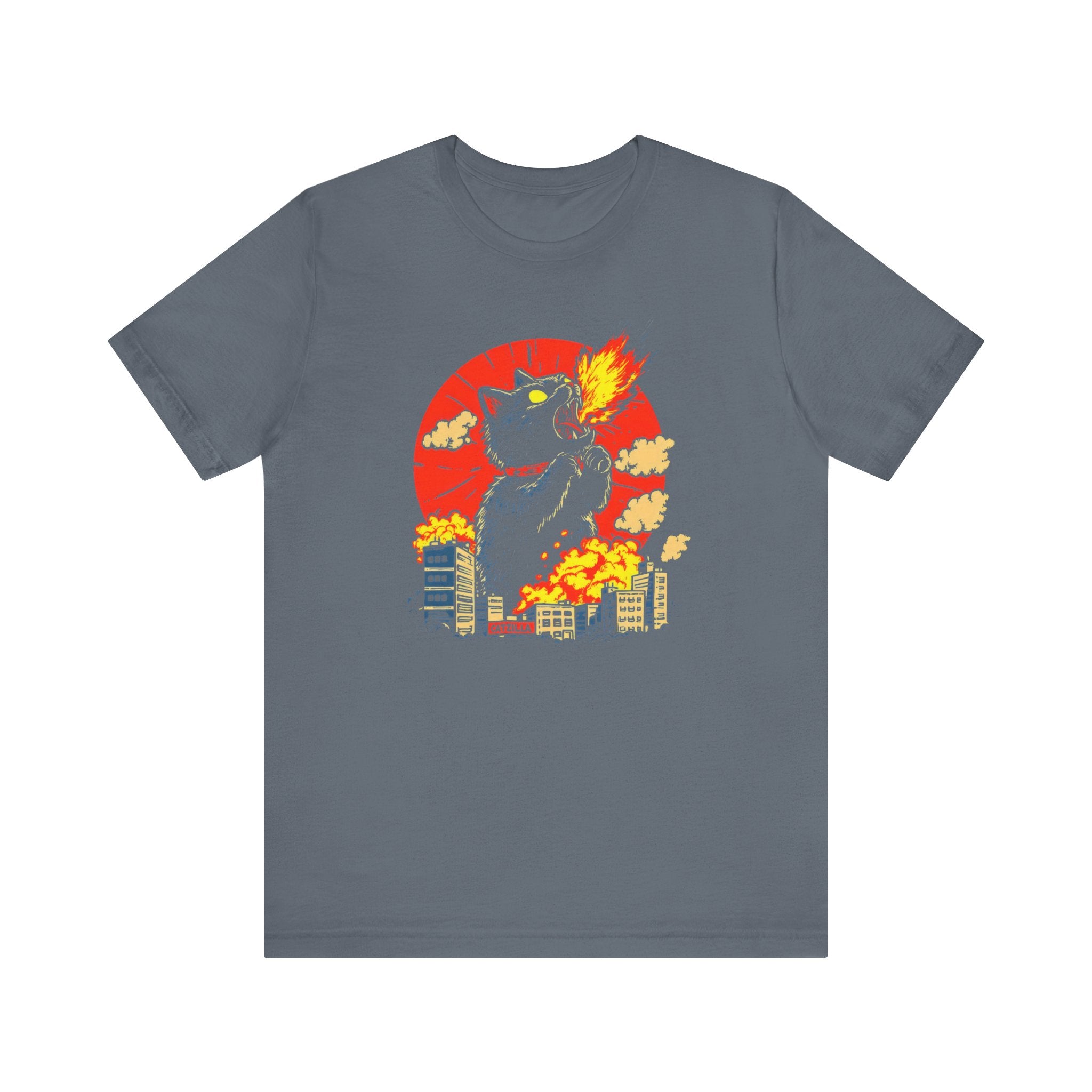 Get ready to roar with our Catzilla Flame Roar T-Shirt! 🐱🔥 This dynamic design features a fierce black Catzilla unleashing a powerful firebreath over the city. Perfect for those who love bold and eye-catching fashion, this tee adds a burst of energy to your wardrobe. Let Catzilla’s roar ignite your style! Why You’ll Love It: 👕 Ultimate Comfort: Made with 100% Airlume combed and ring-spun cotton, this tee offers a lightweight (4.2 oz/yd² or 142 g/m²) and breathable fabric that’s perfect for both active and leisure wear. 👔 Versatile Style: The retail fit and classic crew neckline make this shirt perfect for casual outings and semi-formal settings alike. Accessorize easily to create your unique look! 👍 Durable Quality: Ribbed knit collars and tapered shoulders ensure a better fit over time, while dual side seams hold the garment’s shape longer, wash after wash. 🌱 Ethically Made: Bella+Canvas products are manufactured in the USA and internationally in a humane, no-sweat-shop, sustainable manner. Proudly part of the Fair Labor Association and Platinum WRAP certified. 🔖 No Irritation: Featuring a tear-away label for added comfort, say goodbye to annoying tags! Fabric Details: 🧵 Solid Colors: 100% Airlume combed and ring-spun cotton 🧵 Ash and Heather Prism: 99% Airlume combed and ring-spun cotton, 1% polyester 🧵 Heather and Solid Blends: 52% cotton, 48% polyester 🧵 Athletic Heather and Black Heather: 90% cotton, 10% polyester Perfect For: 🎁 Gift Giving: An excellent gift for birthdays, holidays, or any special occasion for cat and fashion lovers. 🌳 Everyday Wear: Whether you’re running errands, meeting friends, or just relaxing at home, this shirt is your go-to choice.