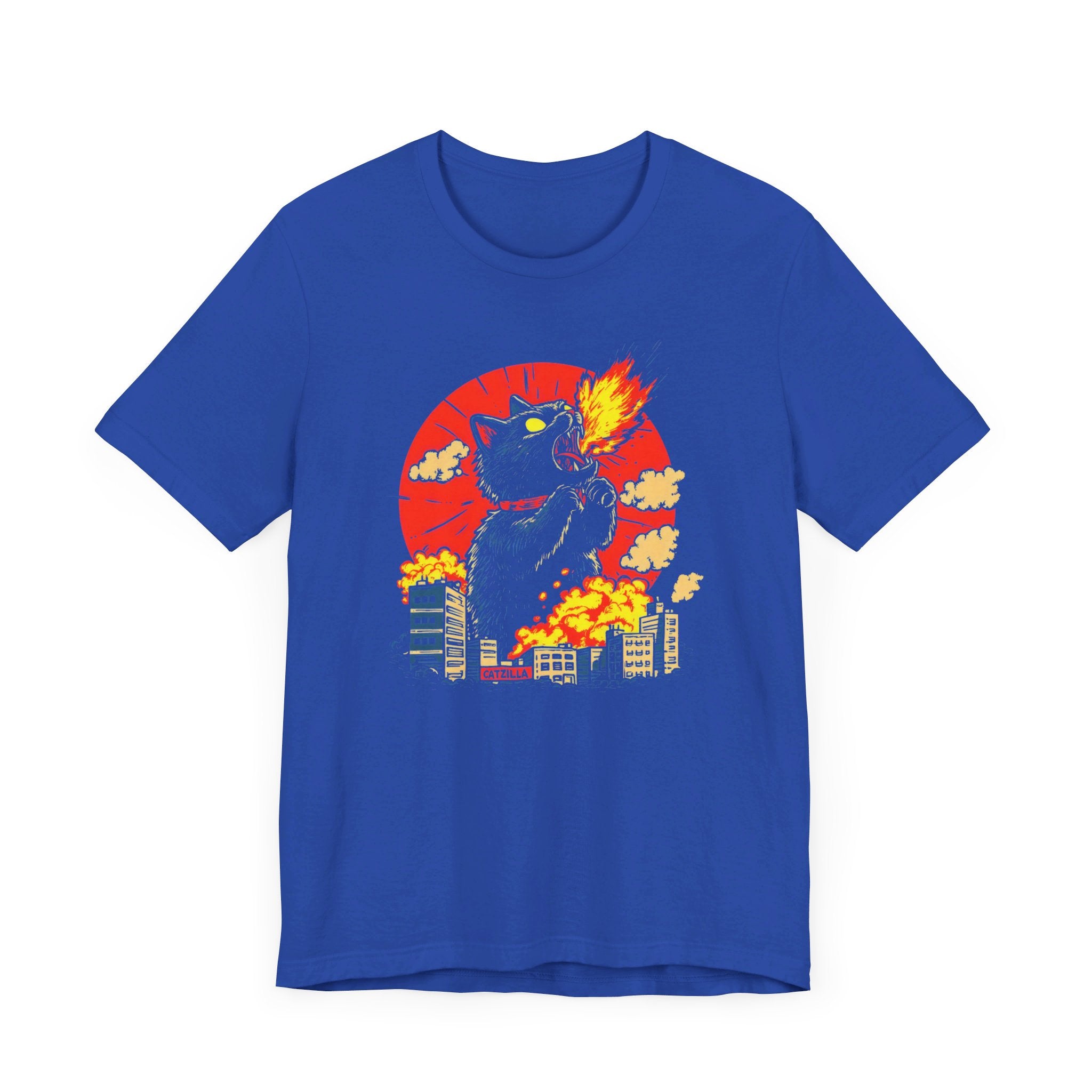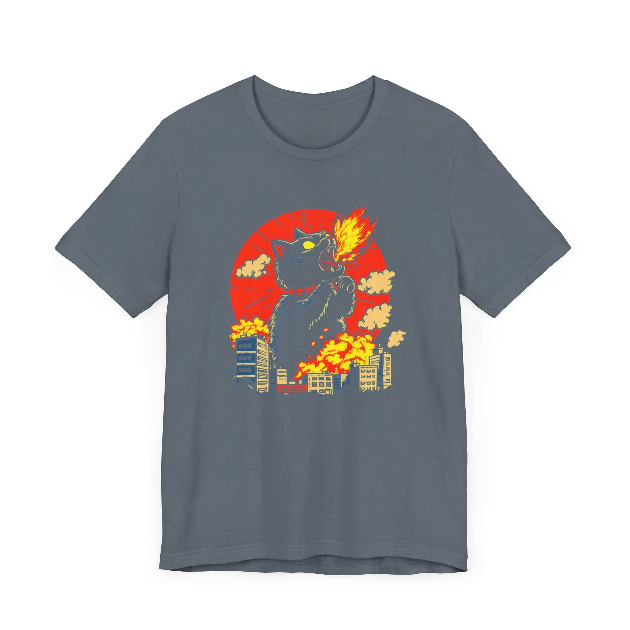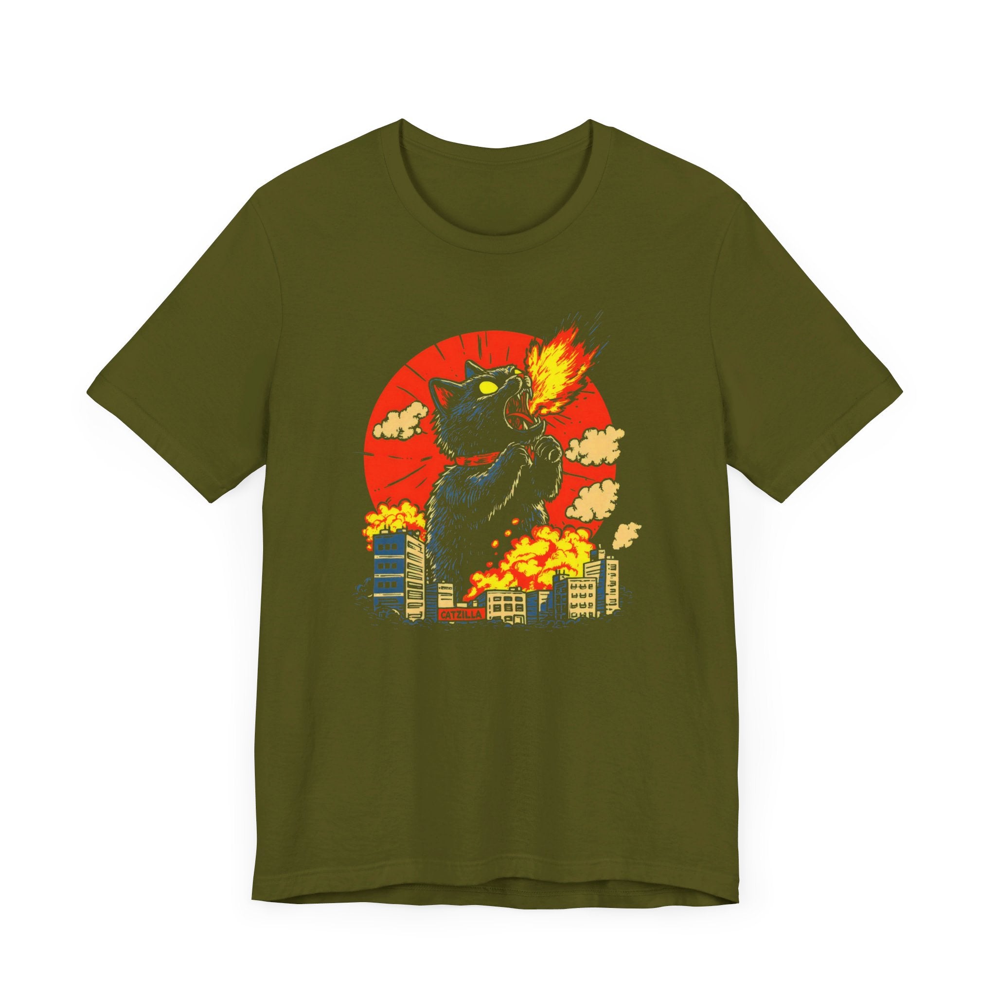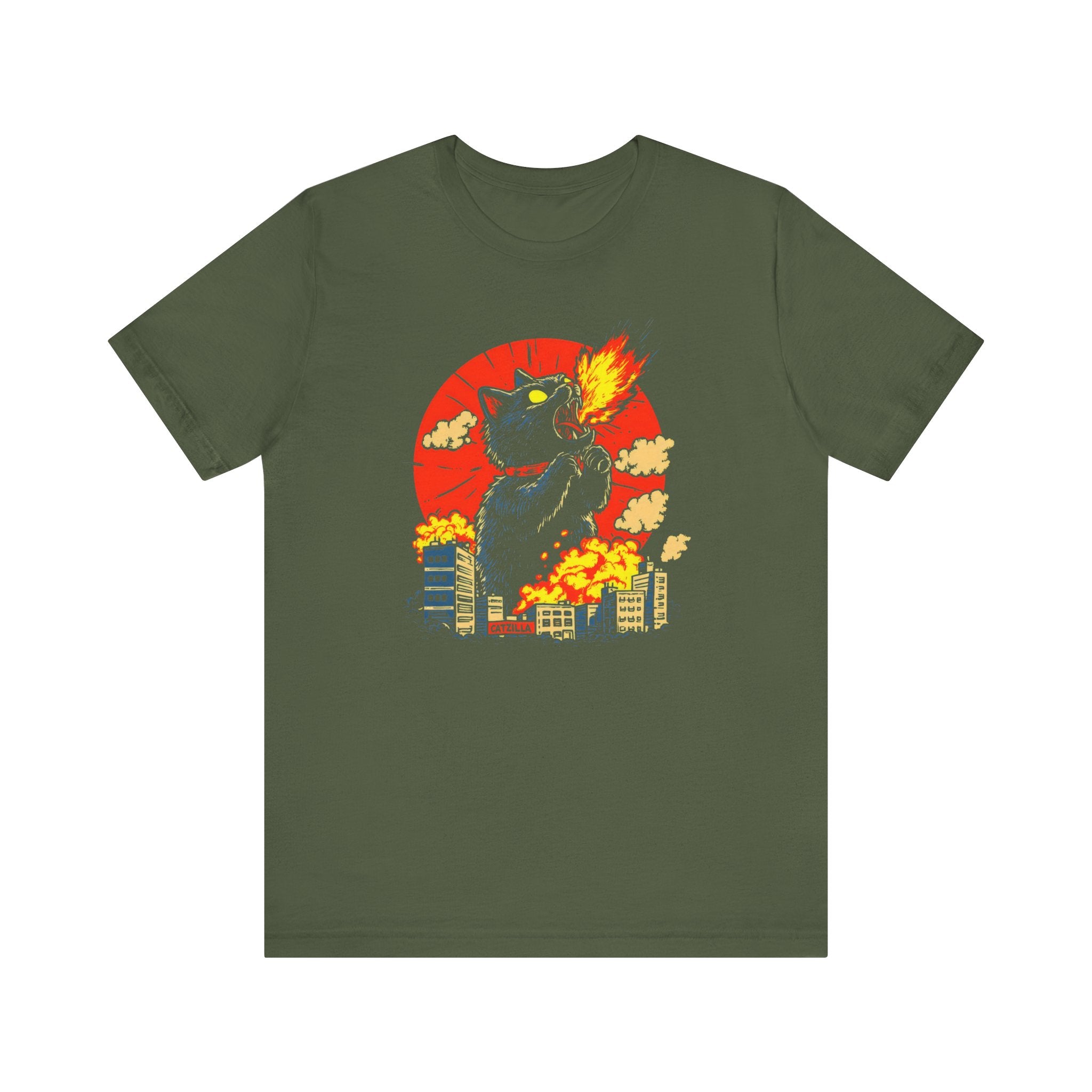Get ready to roar with our Catzilla Flame Roar T-Shirt! 🐱🔥 This dynamic design features a fierce black Catzilla unleashing a powerful firebreath over the city. Perfect for those who love bold and eye-catching fashion, this tee adds a burst of energy to your wardrobe. Let Catzilla’s roar ignite your style! Why You’ll Love It: 👕 Ultimate Comfort: Made with 100% Airlume combed and ring-spun cotton, this tee offers a lightweight (4.2 oz/yd² or 142 g/m²) and breathable fabric that’s perfect for both active and leisure wear. 👔 Versatile Style: The retail fit and classic crew neckline make this shirt perfect for casual outings and semi-formal settings alike. Accessorize easily to create your unique look! 👍 Durable Quality: Ribbed knit collars and tapered shoulders ensure a better fit over time, while dual side seams hold the garment’s shape longer, wash after wash. 🌱 Ethically Made: Bella+Canvas products are manufactured in the USA and internationally in a humane, no-sweat-shop, sustainable manner. Proudly part of the Fair Labor Association and Platinum WRAP certified. 🔖 No Irritation: Featuring a tear-away label for added comfort, say goodbye to annoying tags! Fabric Details: 🧵 Solid Colors: 100% Airlume combed and ring-spun cotton 🧵 Ash and Heather Prism: 99% Airlume combed and ring-spun cotton, 1% polyester 🧵 Heather and Solid Blends: 52% cotton, 48% polyester 🧵 Athletic Heather and Black Heather: 90% cotton, 10% polyester Perfect For: 🎁 Gift Giving: An excellent gift for birthdays, holidays, or any special occasion for cat and fashion lovers. 🌳 Everyday Wear: Whether you’re running errands, meeting friends, or just relaxing at home, this shirt is your go-to choice.