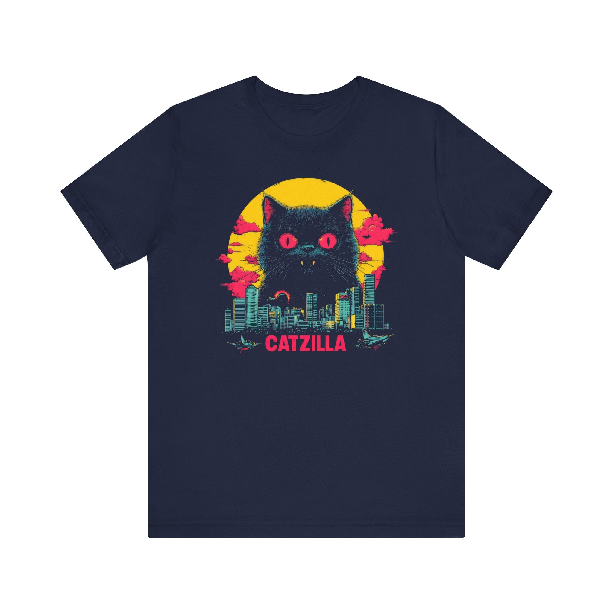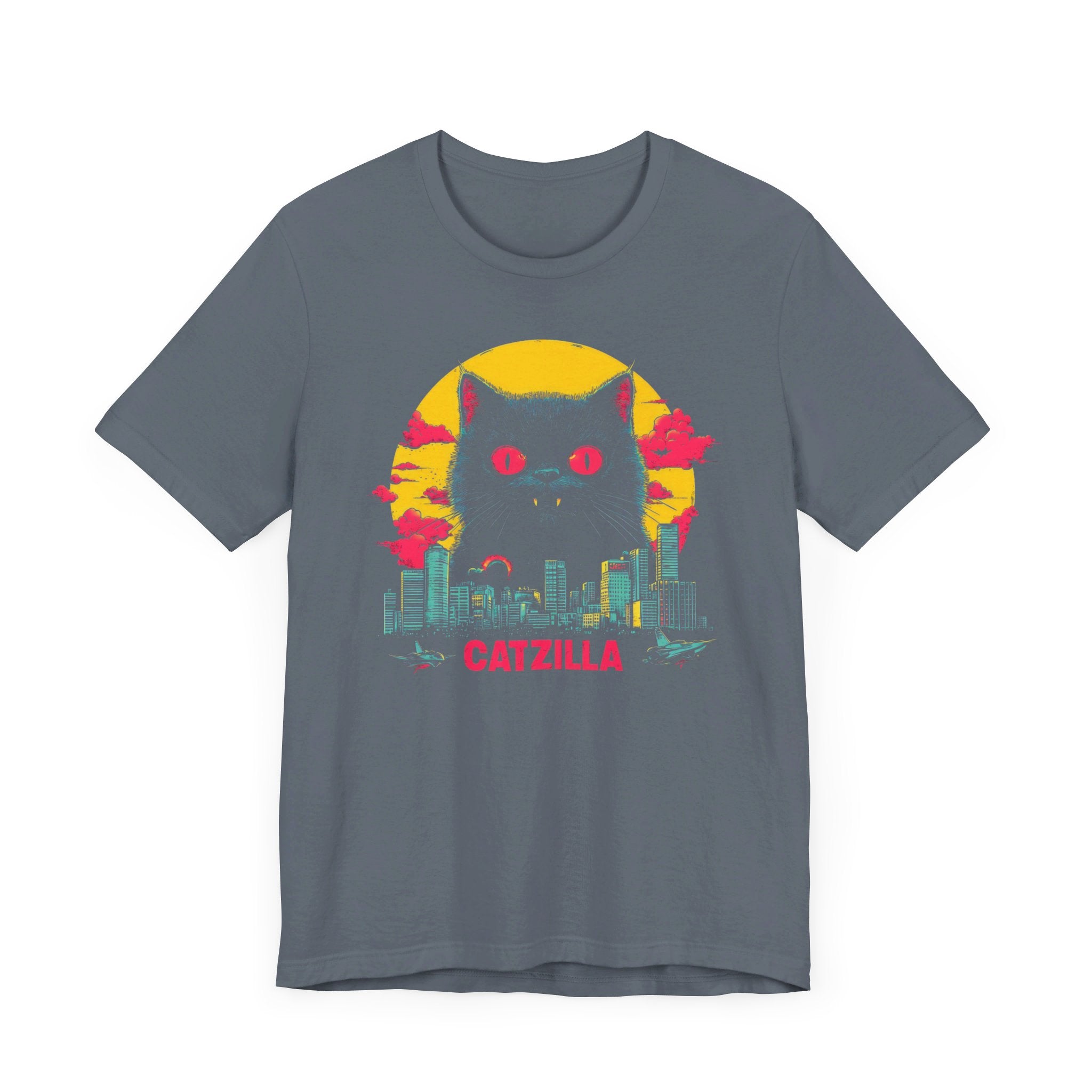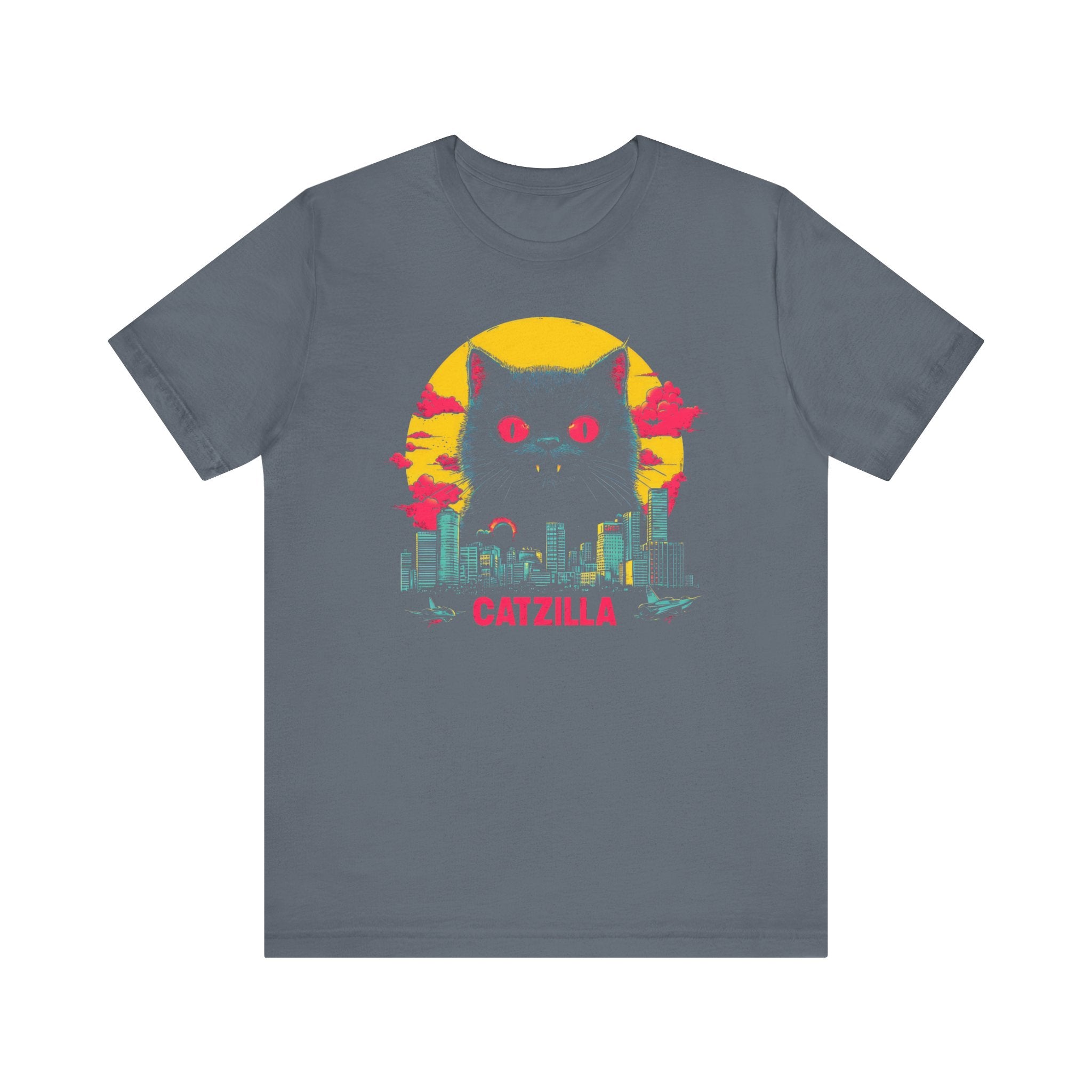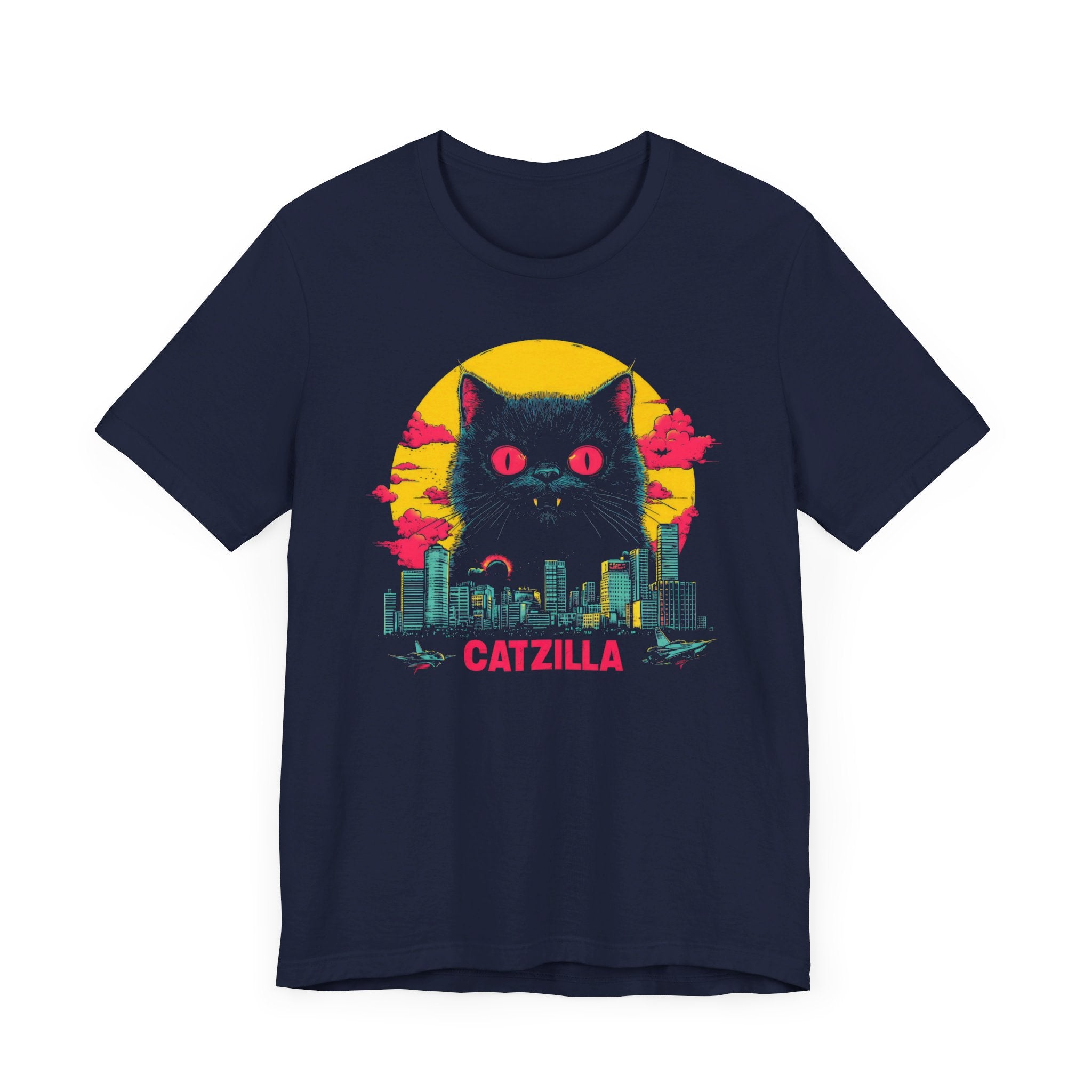 Light up your wardrobe with our Catzilla Neon Night T-Shirt! 🐱🌃 This eye-catching design features a glowing Catzilla towering over a city skyline, with vibrant neon colors adding a retro vibe. Perfect for cat lovers and fans of bold, artistic tees, this shirt will have you standing out in any crowd. Embrace the neon nights with Catzilla! Why You’ll Love It: 👕 Ultimate Comfort: Made with 100% Airlume combed and ring-spun cotton, this tee offers a lightweight (4.2 oz/yd² or 142 g/m²) and breathable fabric that’s perfect for both active and leisure wear. 👔 Versatile Style: The retail fit and classic crew neckline make this shirt perfect for casual outings and semi-formal settings alike. Accessorize easily to create your unique look! 👍 Durable Quality: Ribbed knit collars and tapered shoulders ensure a better fit over time, while dual side seams hold the garment’s shape longer, wash after wash. 🌱 Ethically Made: Bella+Canvas products are manufactured in the USA and internationally in a humane, no-sweat-shop, sustainable manner. Proudly part of the Fair Labor Association and Platinum WRAP certified. 🔖 No Irritation: Featuring a tear-away label for added comfort, say goodbye to annoying tags! Fabric Details: 🧵 Solid Colors: 100% Airlume combed and ring-spun cotton 🧵 Ash and Heather Prism: 99% Airlume combed and ring-spun cotton, 1% polyester 🧵 Heather and Solid Blends: 52% cotton, 48% polyester 🧵 Athletic Heather and Black Heather: 90% cotton, 10% polyester Perfect For: 🎁 Gift Giving: An excellent gift for birthdays, holidays, or any special occasion for cat and fashion lovers. 🌳 Everyday Wear: Whether you’re running errands, meeting friends, or just relaxing at home, this shirt is your go-to choice.