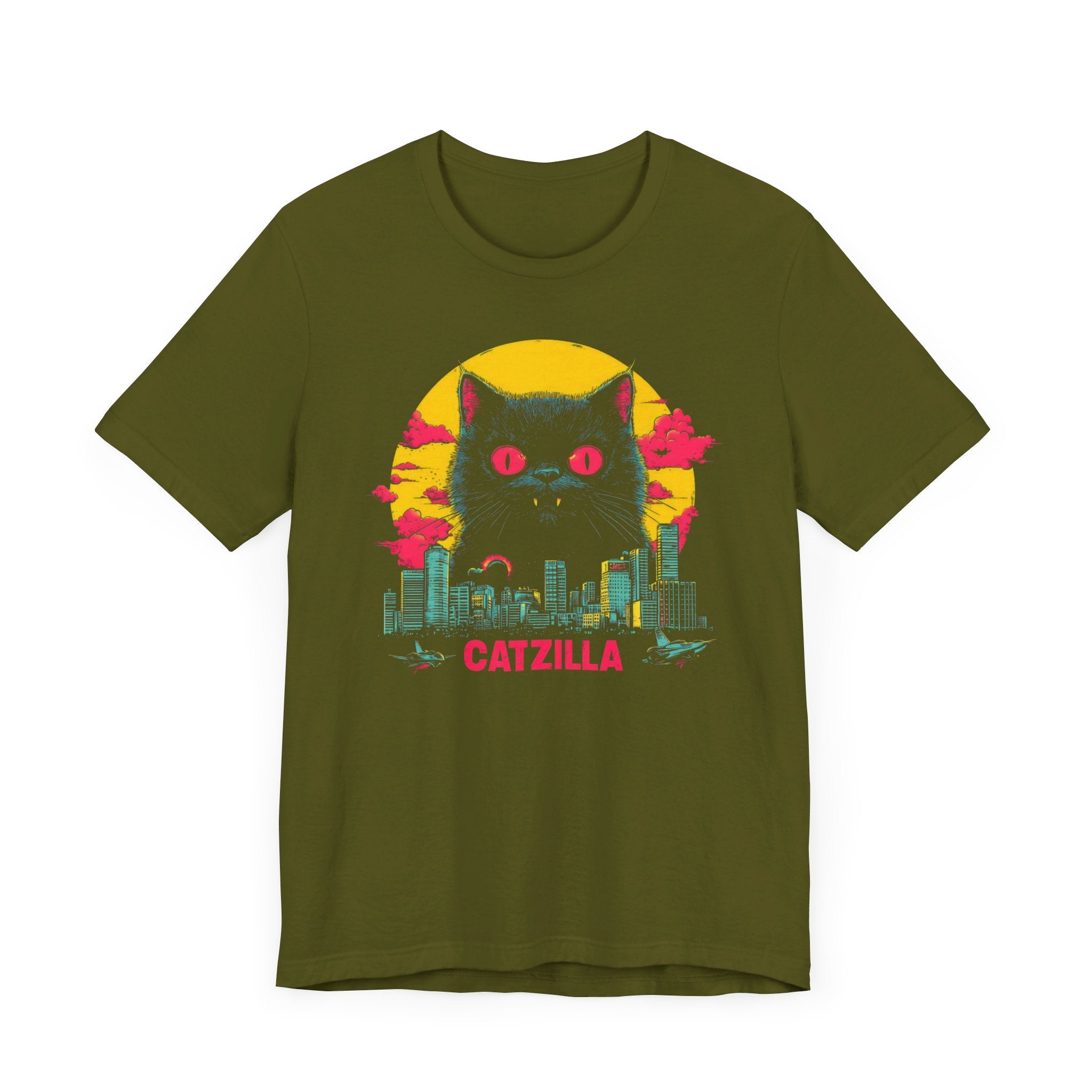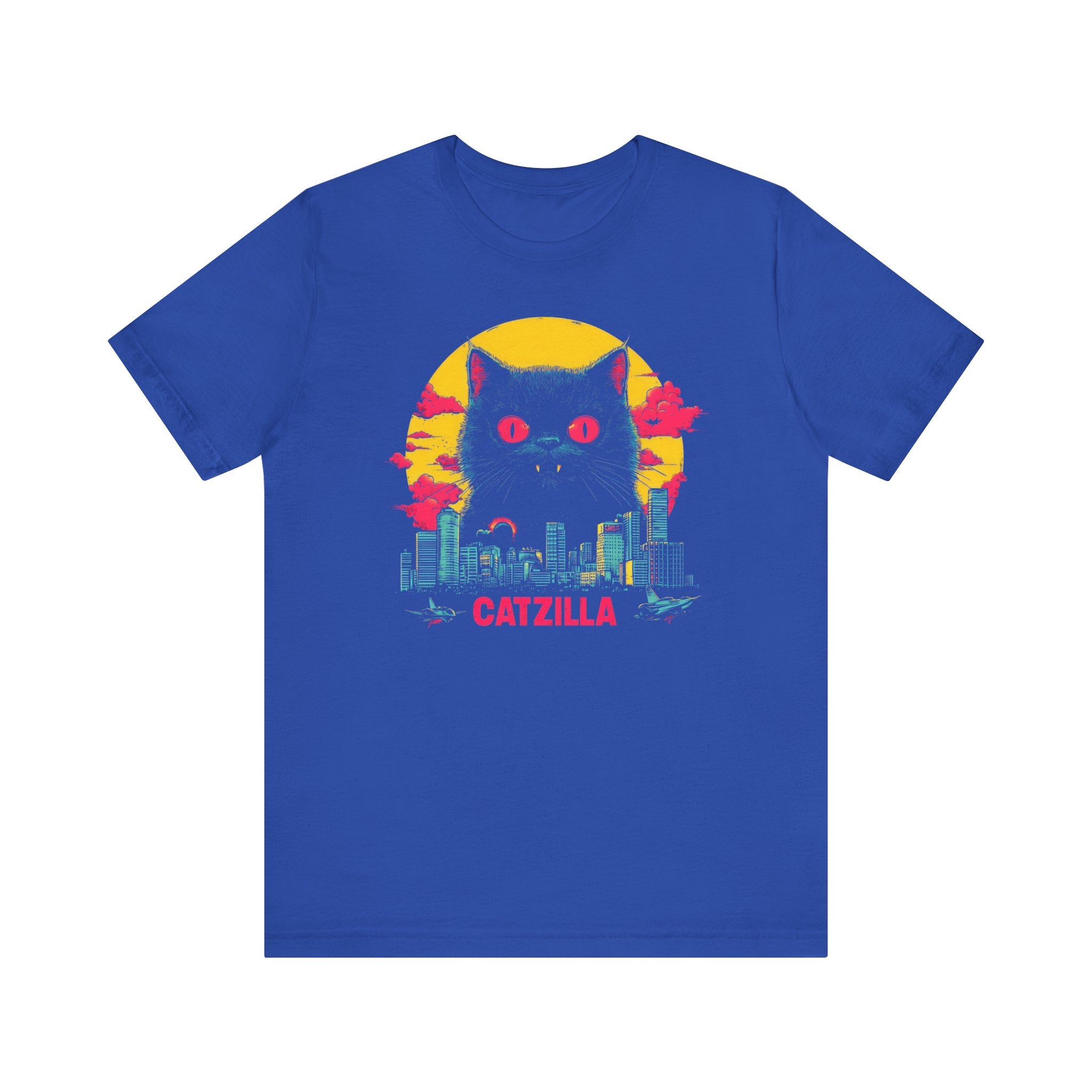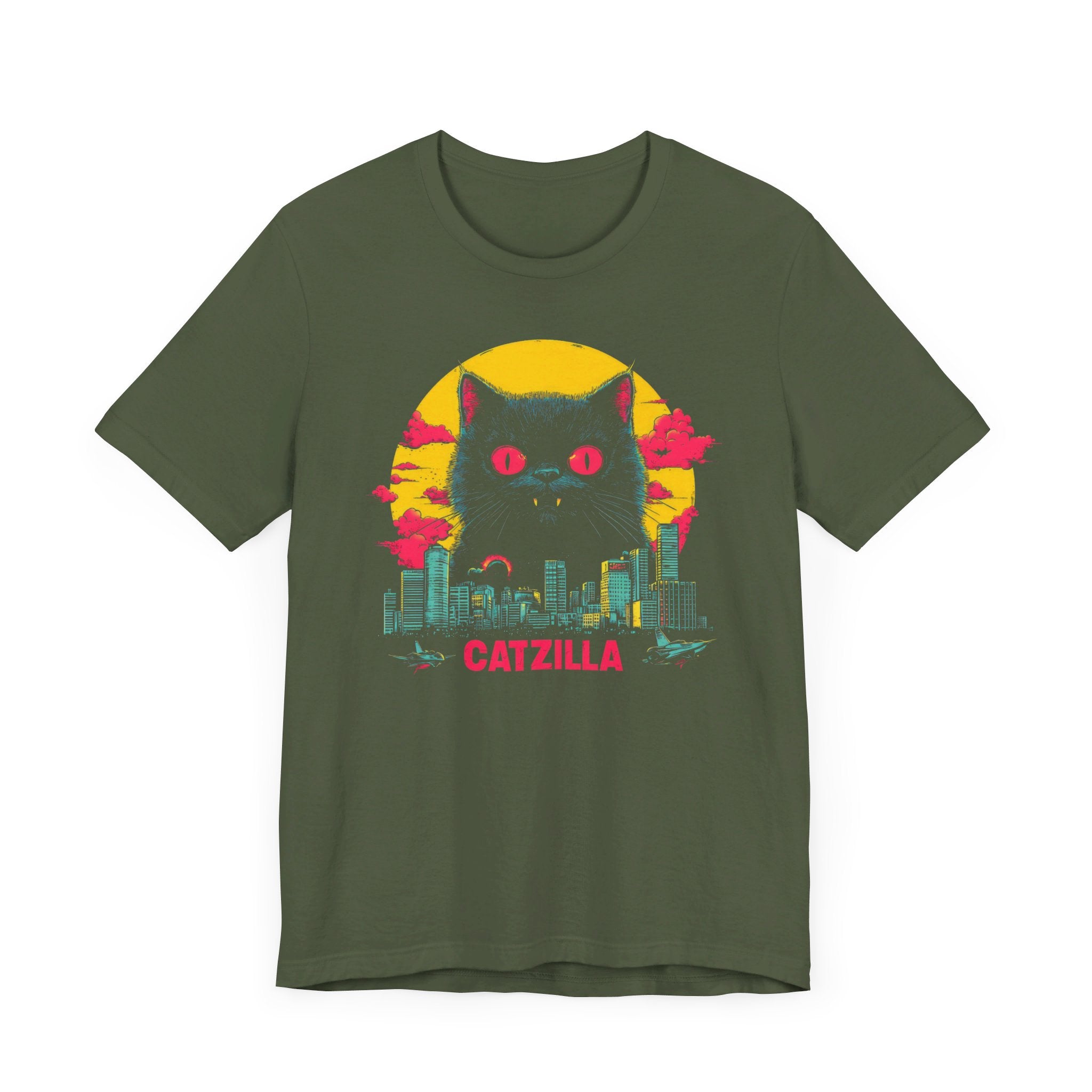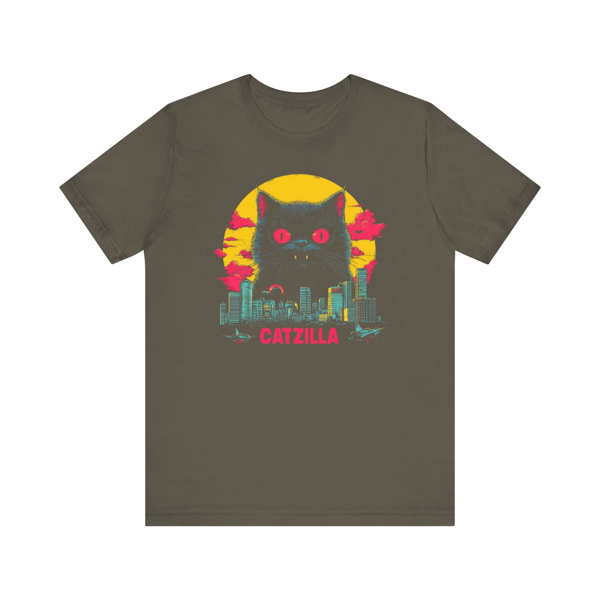 Light up your wardrobe with our Catzilla Neon Night T-Shirt! 🐱🌃 This eye-catching design features a glowing Catzilla towering over a city skyline, with vibrant neon colors adding a retro vibe. Perfect for cat lovers and fans of bold, artistic tees, this shirt will have you standing out in any crowd. Embrace the neon nights with Catzilla! Why You’ll Love It: 👕 Ultimate Comfort: Made with 100% Airlume combed and ring-spun cotton, this tee offers a lightweight (4.2 oz/yd² or 142 g/m²) and breathable fabric that’s perfect for both active and leisure wear. 👔 Versatile Style: The retail fit and classic crew neckline make this shirt perfect for casual outings and semi-formal settings alike. Accessorize easily to create your unique look! 👍 Durable Quality: Ribbed knit collars and tapered shoulders ensure a better fit over time, while dual side seams hold the garment’s shape longer, wash after wash. 🌱 Ethically Made: Bella+Canvas products are manufactured in the USA and internationally in a humane, no-sweat-shop, sustainable manner. Proudly part of the Fair Labor Association and Platinum WRAP certified. 🔖 No Irritation: Featuring a tear-away label for added comfort, say goodbye to annoying tags! Fabric Details: 🧵 Solid Colors: 100% Airlume combed and ring-spun cotton 🧵 Ash and Heather Prism: 99% Airlume combed and ring-spun cotton, 1% polyester 🧵 Heather and Solid Blends: 52% cotton, 48% polyester 🧵 Athletic Heather and Black Heather: 90% cotton, 10% polyester Perfect For: 🎁 Gift Giving: An excellent gift for birthdays, holidays, or any special occasion for cat and fashion lovers. 🌳 Everyday Wear: Whether you’re running errands, meeting friends, or just relaxing at home, this shirt is your go-to choice.
