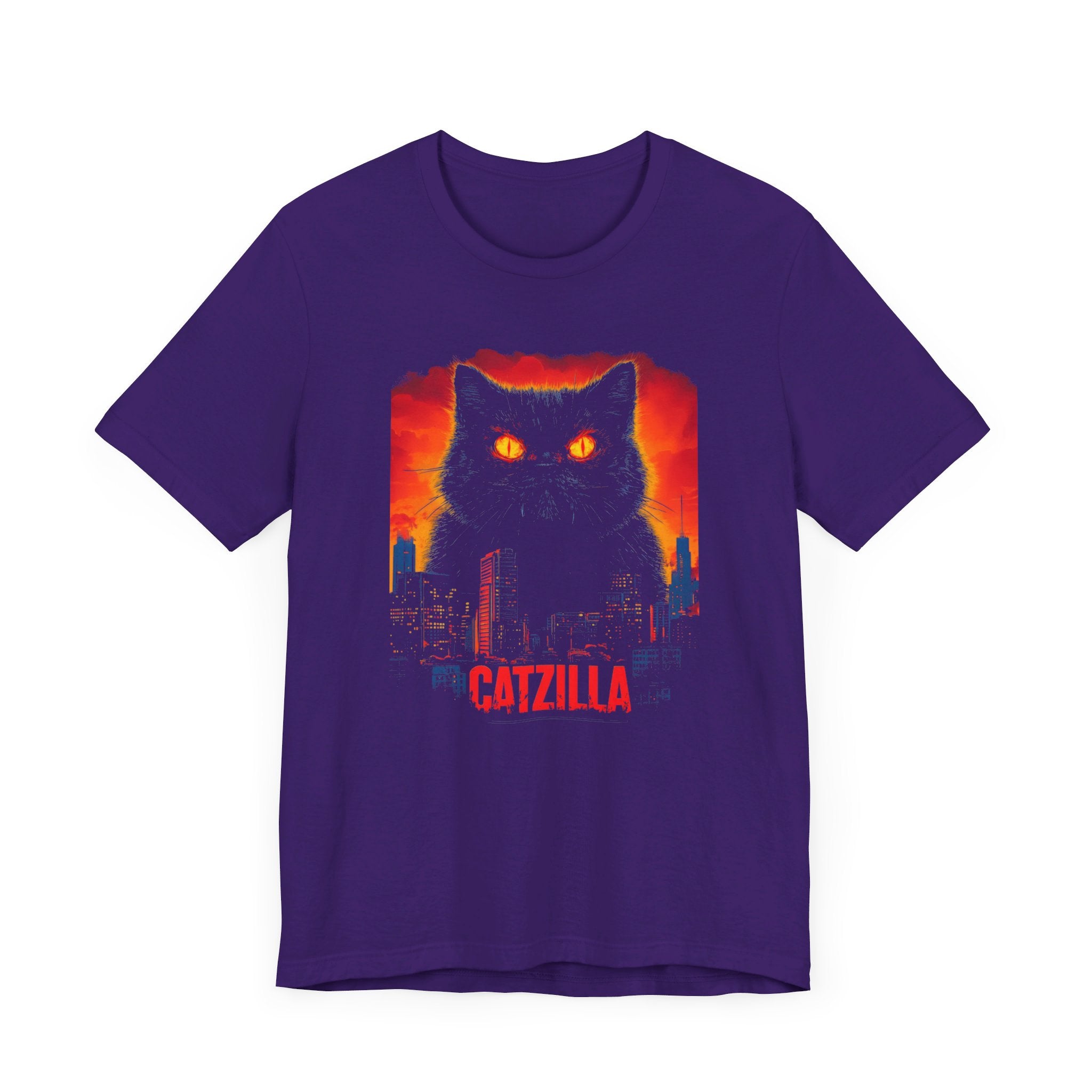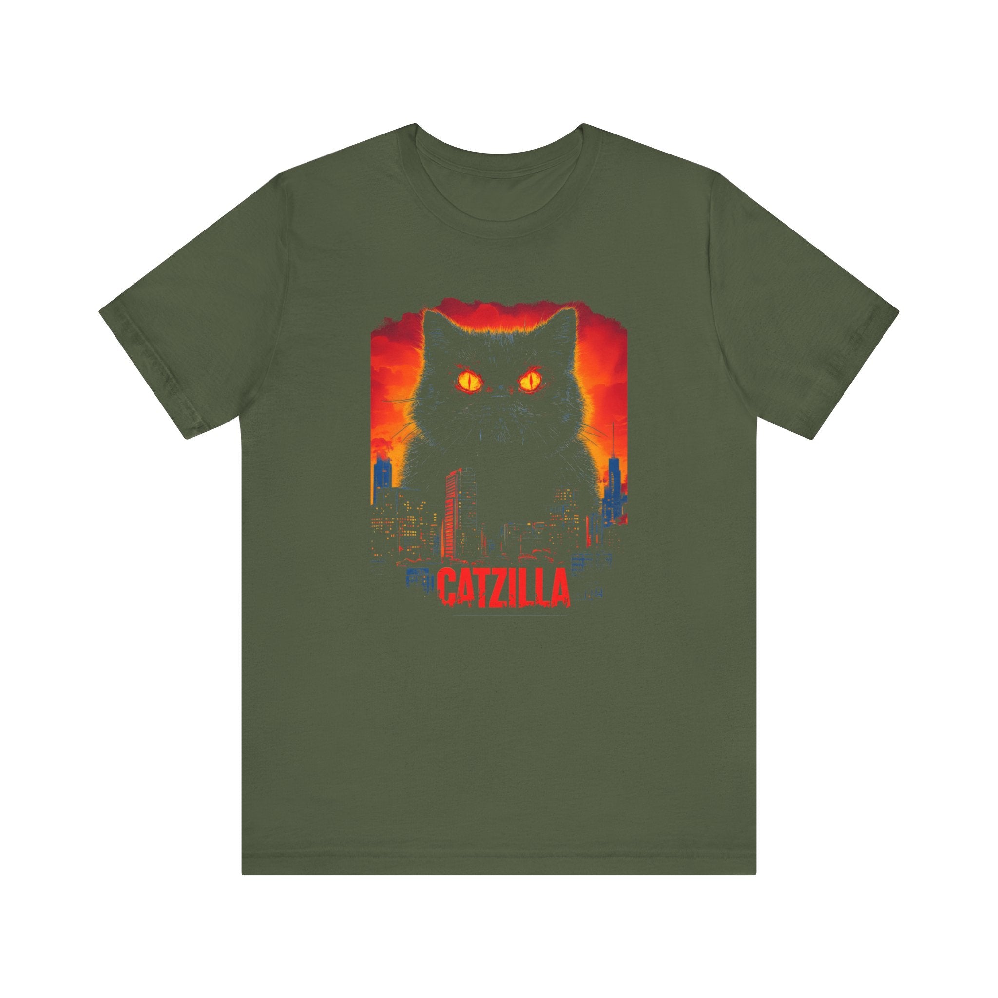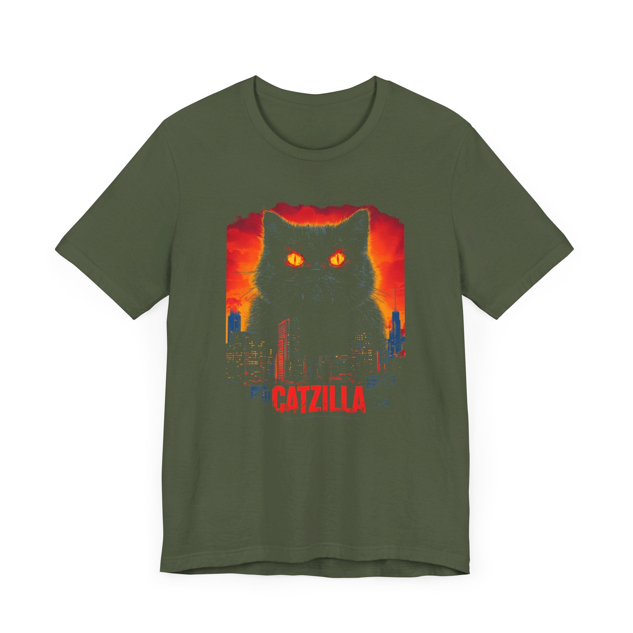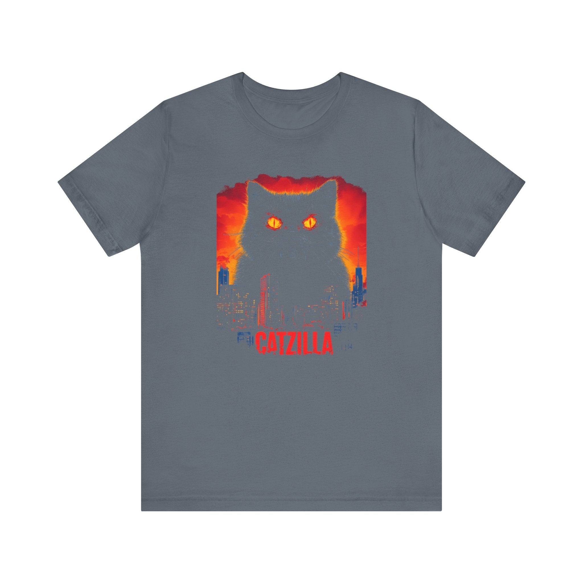 Unleash the terror with our Catzilla Night Terror T-Shirt! 🐱🔥 This intense design features a menacing black Catzilla with fiery eyes, towering over a city at dusk. Perfect for those who love bold and dramatic fashion, this tee adds an element of dark, captivating style to your wardrobe. Let Catzilla watch over your style with an unblinking gaze! Why You’ll Love It: 👕 Ultimate Comfort: Made with 100% Airlume combed and ring-spun cotton, this tee offers a lightweight (4.2 oz/yd² or 142 g/m²) and breathable fabric that’s perfect for both active and leisure wear. 👔 Versatile Style: The retail fit and classic crew neckline make this shirt perfect for casual outings and semi-formal settings alike. Accessorize easily to create your unique look! 👍 Durable Quality: Ribbed knit collars and tapered shoulders ensure a better fit over time, while dual side seams hold the garment’s shape longer, wash after wash. 🌱 Ethically Made: Bella+Canvas products are manufactured in the USA and internationally in a humane, no-sweat-shop, sustainable manner. Proudly part of the Fair Labor Association and Platinum WRAP certified. 🔖 No Irritation: Featuring a tear-away label for added comfort, say goodbye to annoying tags! Fabric Details: 🧵 Solid Colors: 100% Airlume combed and ring-spun cotton 🧵 Ash and Heather Prism: 99% Airlume combed and ring-spun cotton, 1% polyester 🧵 Heather and Solid Blends: 52% cotton, 48% polyester 🧵 Athletic Heather and Black Heather: 90% cotton, 10% polyester Perfect For: 🎁 Gift Giving: An excellent gift for birthdays, holidays, or any special occasion for cat and fashion lovers. 🌳 Everyday Wear: Whether you’re running errands, meeting friends, or just relaxing at home, this shirt is your go-to choice.