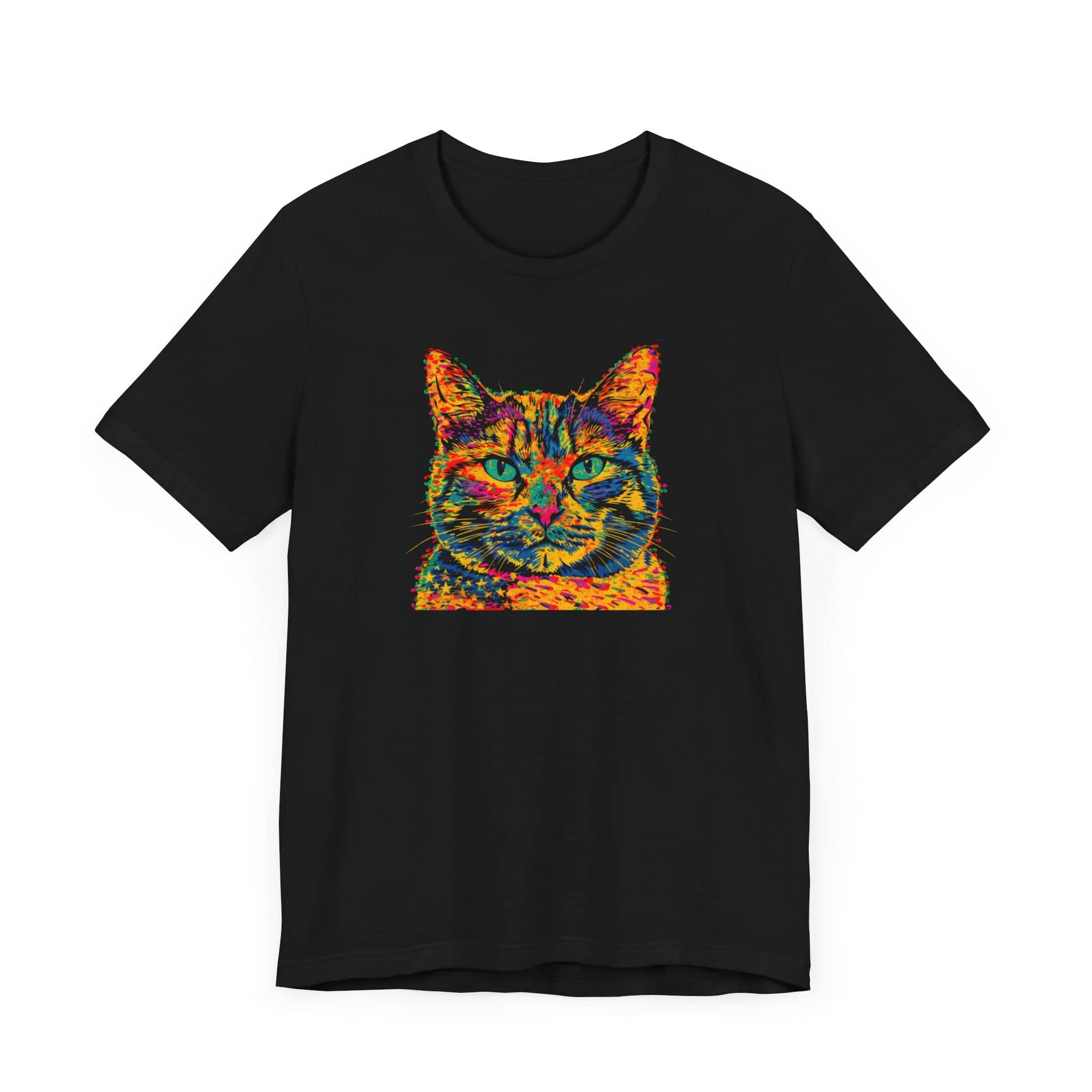 Colorful Cat Face T-Shirt 🐱🌈 Brighten up your style with this Colorful Cat Face T-Shirt! Featuring a captivating cat portrait in vibrant hues, this tee is perfect for cat enthusiasts and fans of bold, artistic designs. Show off your unique flair and love for cats with this eye-catching shirt! 🎨😺 Why You’ll Love It: 👕 Ultimate Comfort: Made with 100% Airlume combed and ring-spun cotton, this tee offers a lightweight (4.2 oz/yd² or 142 g/m²) and breathable fabric that’s perfect for both active and leisure wear. 👔 Versatile Style: The retail fit and classic crew neckline make this shirt perfect for casual outings and semi-formal settings alike. Accessorize easily to create your unique look! 👍 Durable Quality: Ribbed knit collars and tapered shoulders ensure a better fit over time, while dual side seams hold the garment’s shape longer, wash after wash. 🌱 Ethically Made: Bella+Canvas products are manufactured in the USA and internationally in a humane, no-sweat-shop, sustainable manner. Proudly part of the Fair Labor Association and Platinum WRAP certified. 🔖 No Irritation: Featuring a tear-away label for added comfort, say goodbye to annoying tags! Fabric Details: 🧵 Solid Colors: 100% Airlume combed and ring-spun cotton 🧵 Ash and Heather Prism: 99% Airlume combed and ring-spun cotton, 1% polyester 🧵 Heather and Solid Blends: 52% cotton, 48% polyester 🧵 Athletic Heather and Black Heather: 90% cotton, 10% polyester Perfect For: 🎁 Gift Giving: An excellent gift for birthdays, holidays, or any special occasion for cat and art lovers. 🌳 Everyday Wear: Whether you’re running errands, meeting friends, or just relaxing at home, this shirt is your go-to choice. Embrace your love for cats and vibrant art with our Colorful Cat Face T-Shirt. Add it to your collection today! 🛒