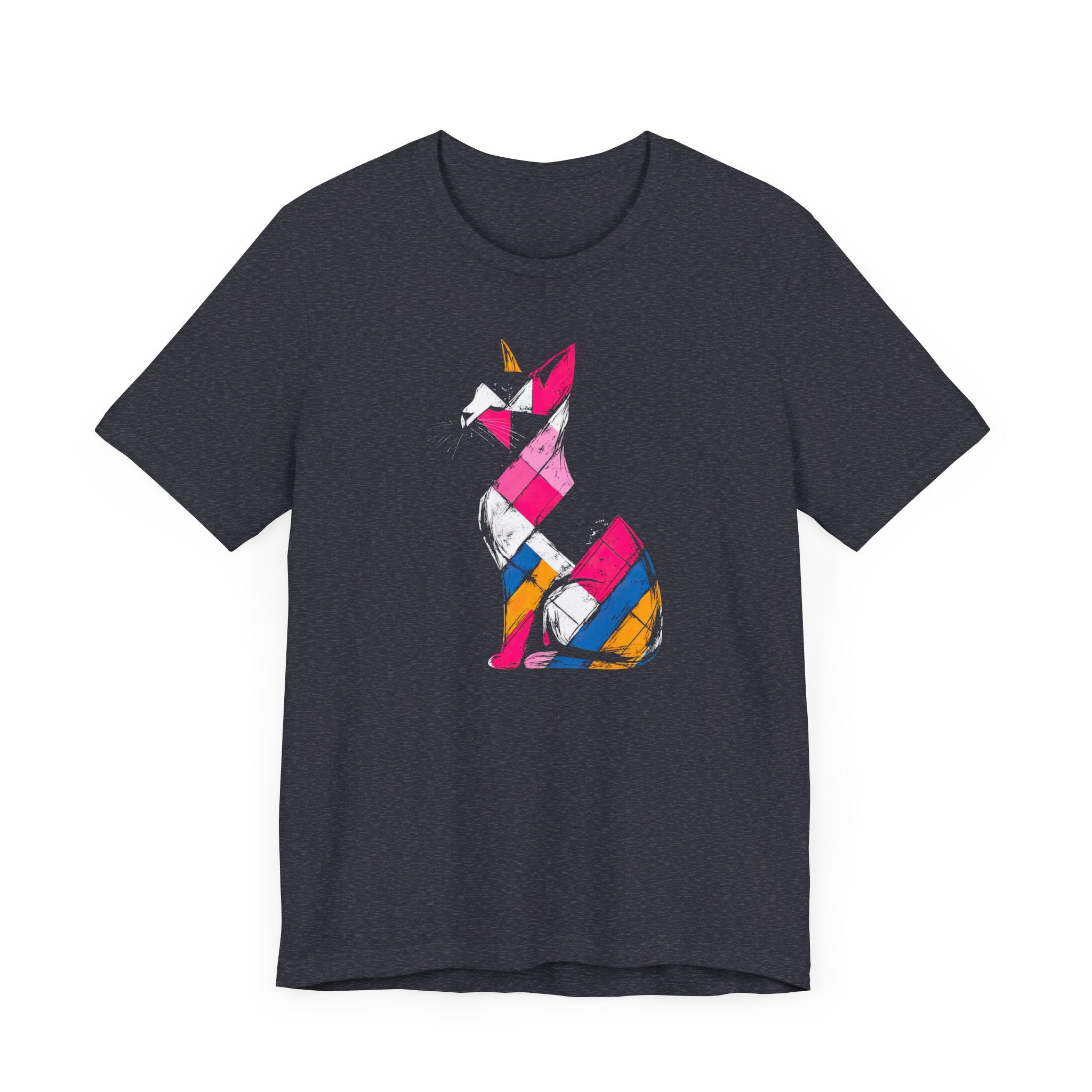 Add a pop of color to your wardrobe with this stunning Geometric Cat T-Shirt! Featuring a sleek cat silhouette filled with vibrant, abstract shapes, this design is perfect for cat lovers and art enthusiasts alike. The bold colors and modern style make it a standout piece for any casual outfit. Crafted from soft, premium fabric, this tee offers both comfort and style in one eye-catching design. 🎨🐾 Why You’ll Love It: 👕 Ultimate Comfort: Made with 100% Airlume combed and ring-spun cotton, this tee offers a lightweight (4.2 oz/yd² or 142 g/m²) and breathable fabric that’s perfect for both active and leisure wear. 👔 Versatile Style: The retail fit and classic crew neckline make this shirt perfect for casual outings and semi-formal settings alike. Accessorize easily to create your unique look! 👍 Durable Quality: Ribbed knit collars and tapered shoulders ensure a better fit over time, while dual side seams hold the garment’s shape longer, wash after wash. 🌱 Ethically Made: Bella+Canvas products are manufactured in the USA and internationally in a humane, no-sweat-shop, sustainable manner. Proudly part of the Fair Labor Association and Platinum WRAP certified. 🔖 No Irritation: Featuring a tear-away label for added comfort, say goodbye to annoying tags! Fabric Details: 🧵 Solid Colors: 100% Airlume combed and ring-spun cotton 🧵 Ash and Heather Prism: 99% Airlume combed and ring-spun cotton, 1% polyester 🧵 Heather and Solid Blends: 52% cotton, 48% polyester 🧵 Athletic Heather and Black Heather: 90% cotton, 10% polyester Perfect For: 🎁 Gift Giving: An excellent gift for birthdays, holidays, or any special occasion for cat and fashion lovers. 🌳 Everyday Wear: Whether you’re running errands, meeting friends, or just relaxing at home, this shirt is your go-to choice.