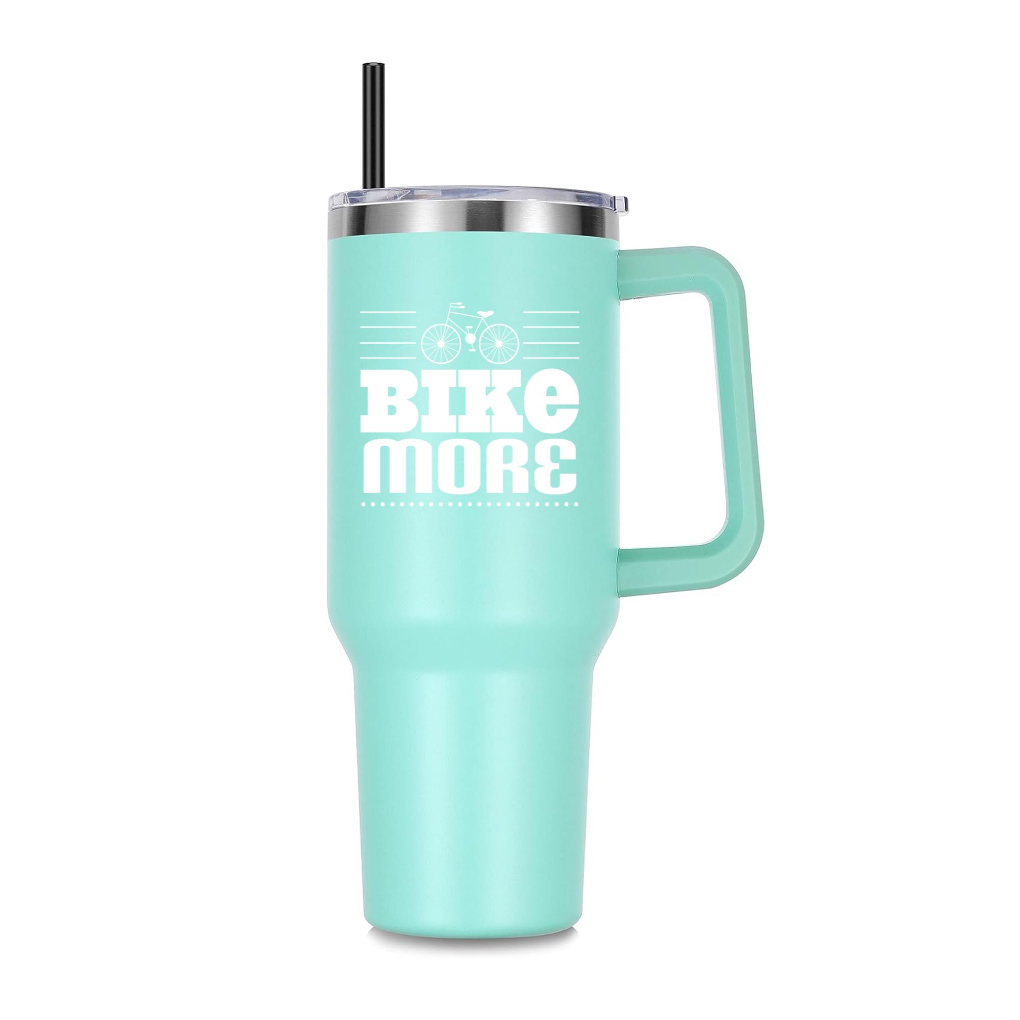 Cycling Bike More Earth Day 40oz Stainless Steel Tumbler 40oz Stainless Steel Tumbler with Handle and Straw – Double-Wall Vacuum Insulated Travel Mug with Lid
