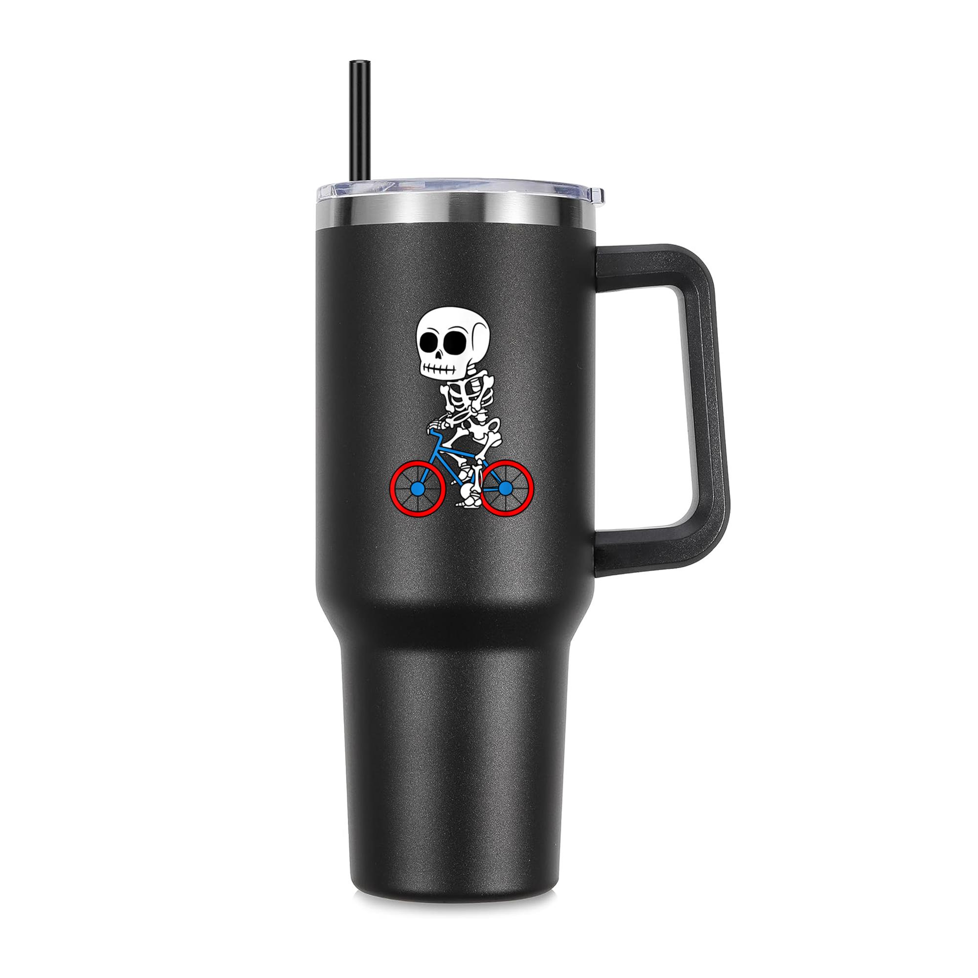 Cyclist Skeleton Biker Halloween 40oz Stainless Steel Tumbler 40oz Stainless Steel Tumbler with Handle and Straw – Double-Wall Vacuum Insulated Travel Mug with Lid