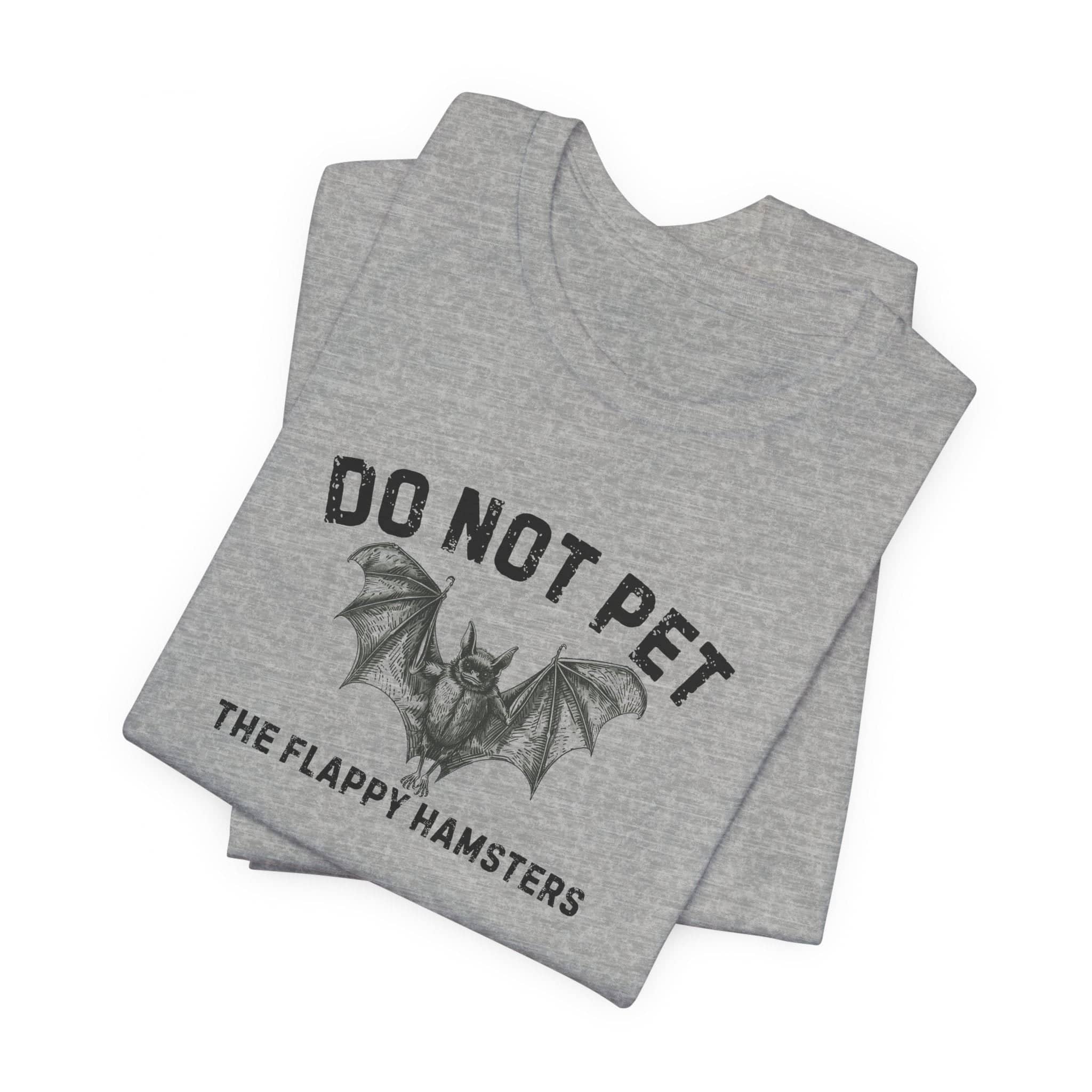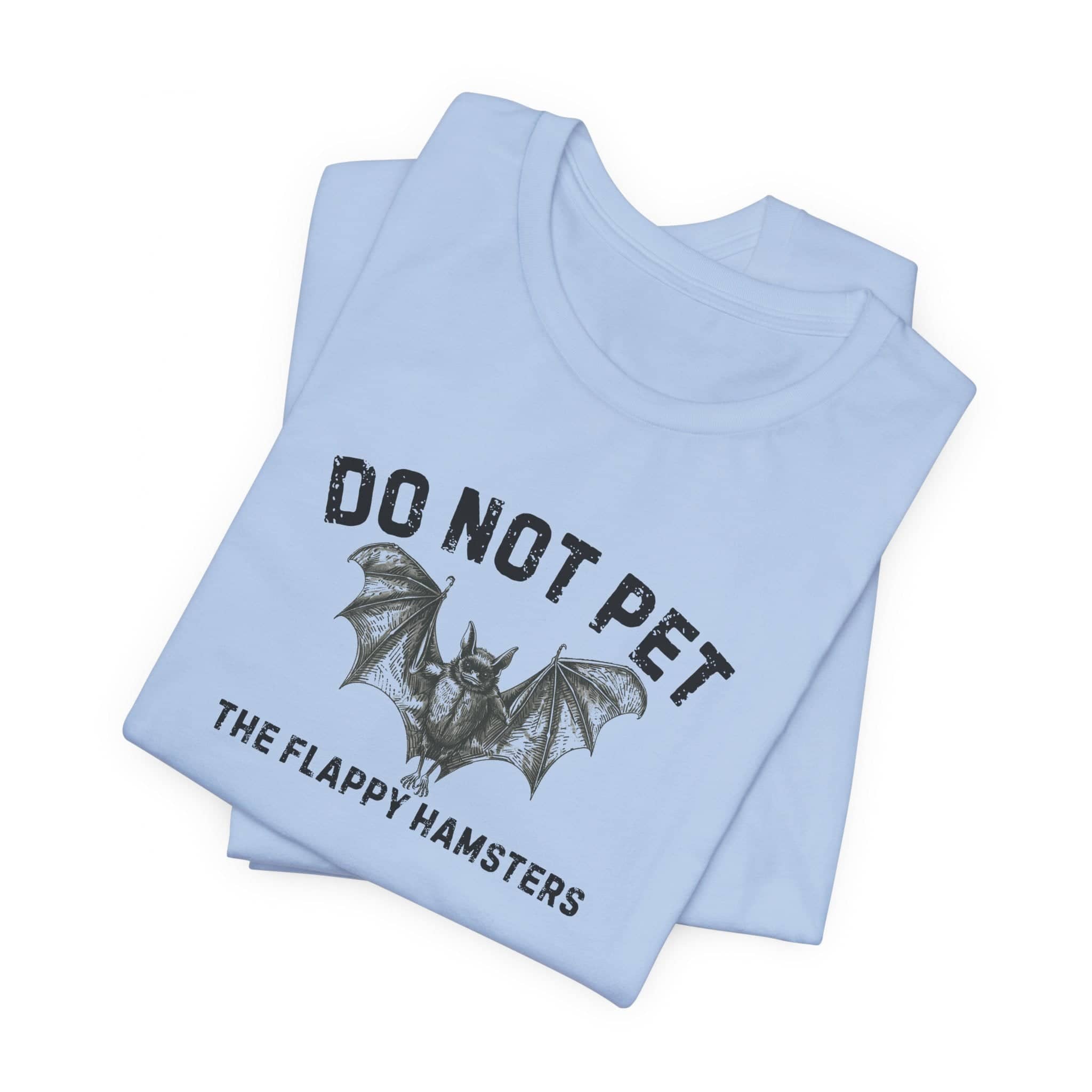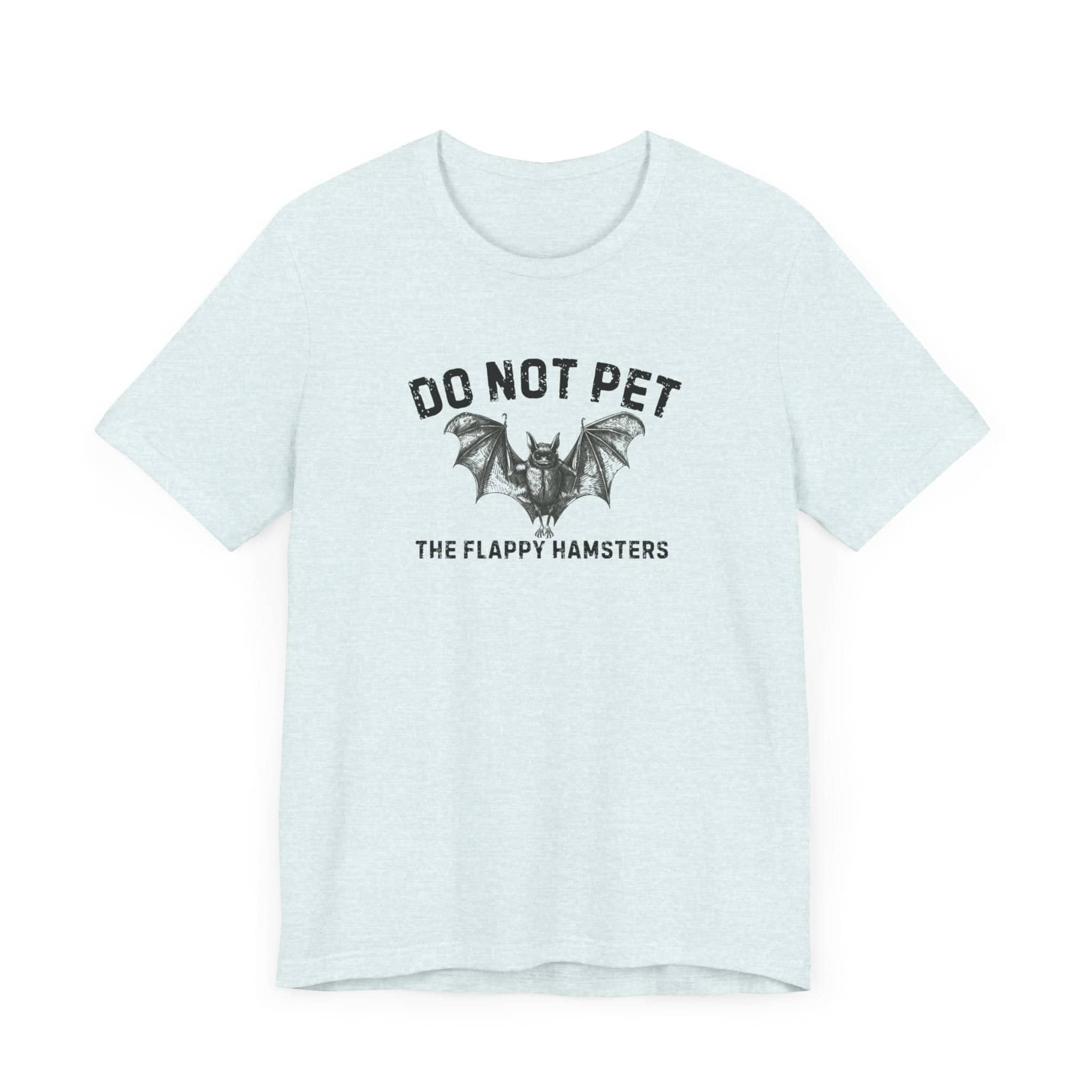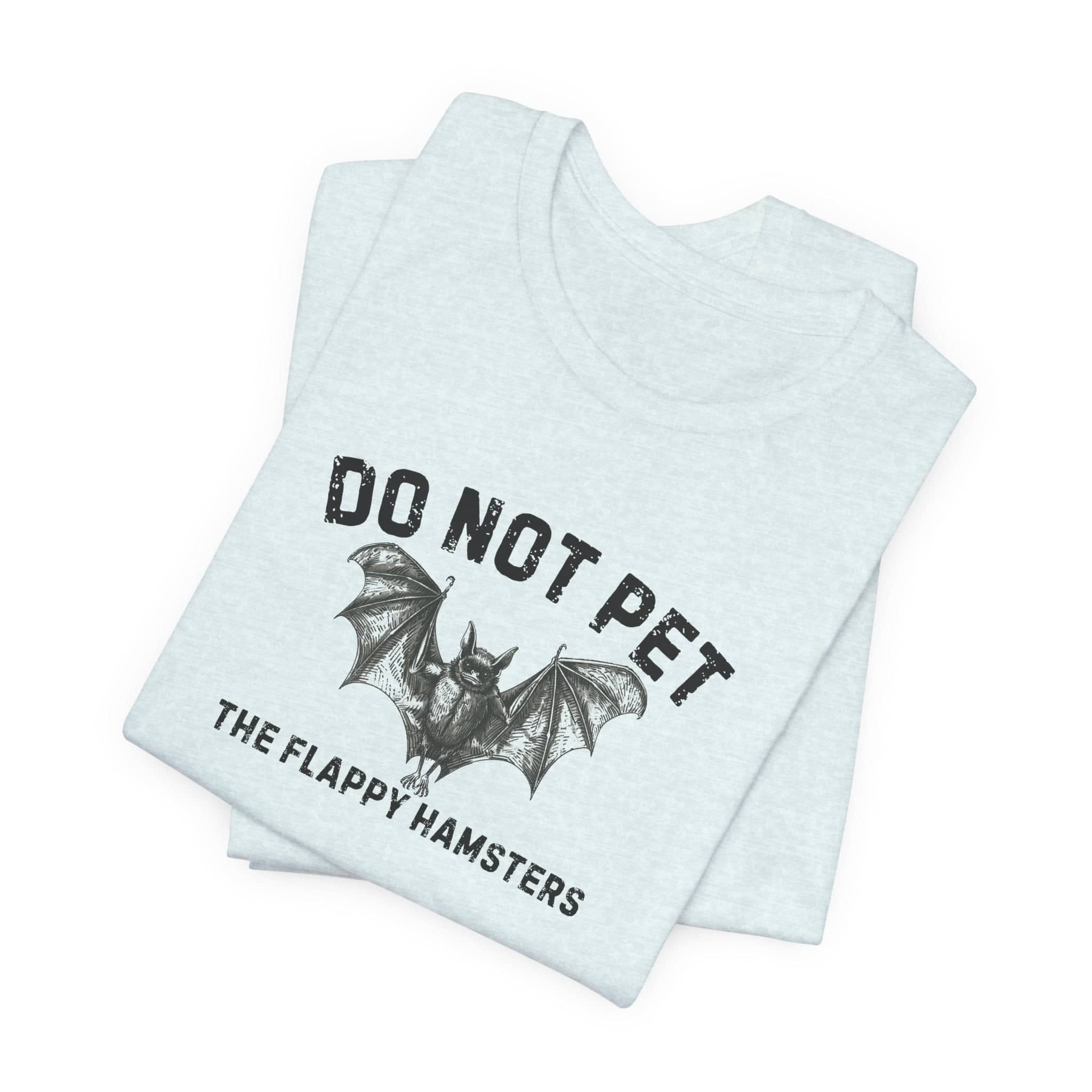 Bring a smile to everyone’s face with our “Do Not Pet The Flappy Hamsters” Shirt! 🦇🚫 This amusing and quirky tee features a detailed graphic of a bat with a playful warning message. Perfect for animal lovers and those who enjoy a touch of humor in their wardrobe, this shirt is made from high-quality fabric for comfort and durability. Ideal for casual outings, Halloween parties, or just relaxing at home, it’s sure to be a hit in your collection! This classic unisex jersey short sleeve tee fits like a well-loved favorite. Soft cotton and quality print make users fall in love with it over and over again. These t-shirts have-ribbed knit collars to bolster shaping. The shoulders are tapered for a better fit over time. Dual side seams hold the garment’s shape for longer. .: Made with 100% Airlume combed and ring-spun cotton, a lightweight fabric (4.2 oz/yd² (142 g/m²)) that is easy to layer, breathable. Perfect for active and leisure wear. .: The retail fit that is perfect for casual and semi-formal settings. The crew neckline adds a classic, neat style that’s perfect for accessorizing..: Bella+Canvas manufactures all its products in the US and internationally in humane, no-sweat-shop, sustainable way and is part of the Fair Labor Association as well as Platinum WRAP certified. .: The tear-away label minimizes skin irritations..: Fabric blends: Ash and Heather Prism colors – 99% Airlume combed and ring-spun cotton, 1% polyester; Heather and Solid Blend colors – 52% cotton, 48% polyester; Athletic Heather and Black Heather – 90% cotton, 10% polyester.