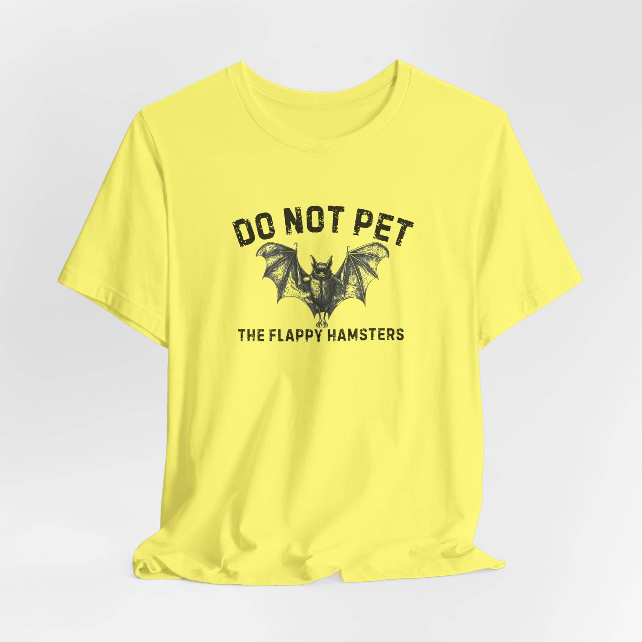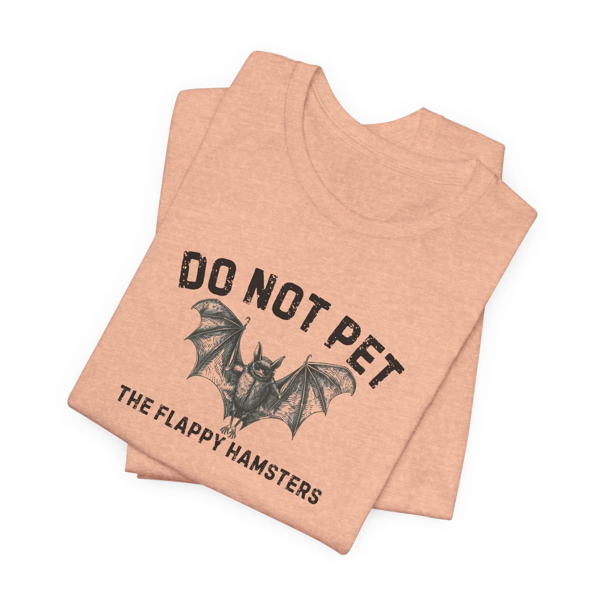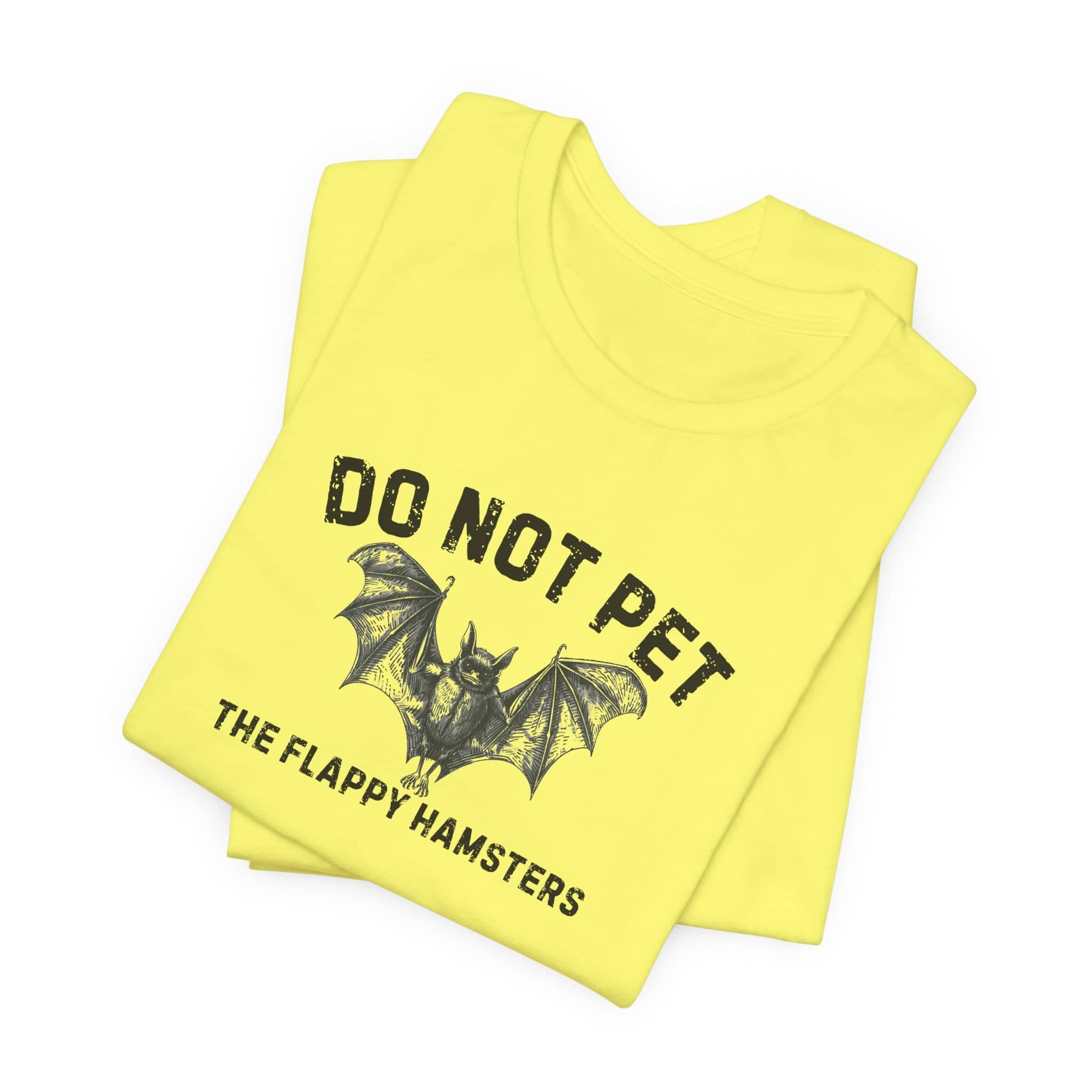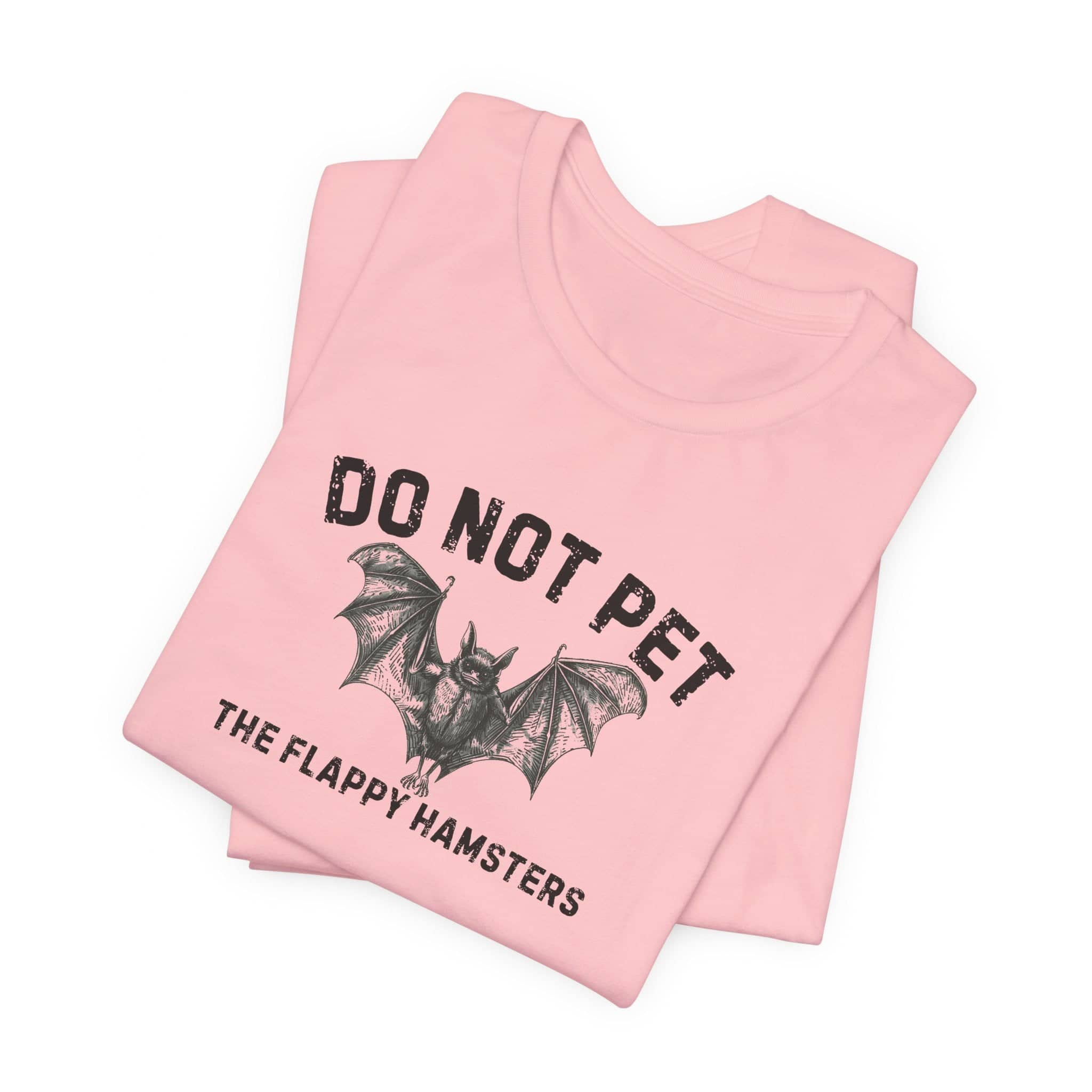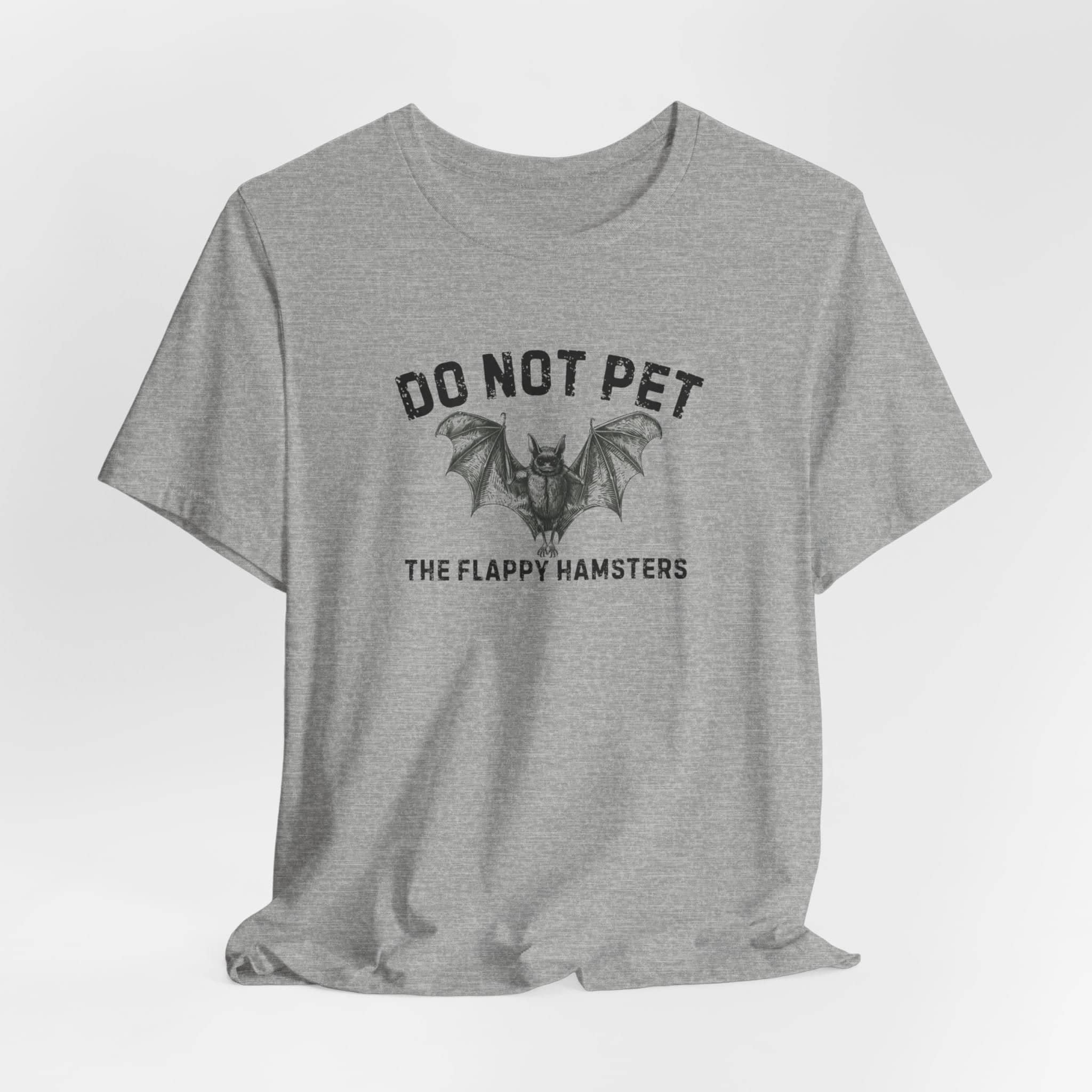 Bring a smile to everyone’s face with our “Do Not Pet The Flappy Hamsters” Shirt! 🦇🚫 This amusing and quirky tee features a detailed graphic of a bat with a playful warning message. Perfect for animal lovers and those who enjoy a touch of humor in their wardrobe, this shirt is made from high-quality fabric for comfort and durability. Ideal for casual outings, Halloween parties, or just relaxing at home, it’s sure to be a hit in your collection! This classic unisex jersey short sleeve tee fits like a well-loved favorite. Soft cotton and quality print make users fall in love with it over and over again. These t-shirts have-ribbed knit collars to bolster shaping. The shoulders are tapered for a better fit over time. Dual side seams hold the garment’s shape for longer. .: Made with 100% Airlume combed and ring-spun cotton, a lightweight fabric (4.2 oz/yd² (142 g/m²)) that is easy to layer, breathable. Perfect for active and leisure wear. .: The retail fit that is perfect for casual and semi-formal settings. The crew neckline adds a classic, neat style that’s perfect for accessorizing..: Bella+Canvas manufactures all its products in the US and internationally in humane, no-sweat-shop, sustainable way and is part of the Fair Labor Association as well as Platinum WRAP certified. .: The tear-away label minimizes skin irritations..: Fabric blends: Ash and Heather Prism colors – 99% Airlume combed and ring-spun cotton, 1% polyester; Heather and Solid Blend colors – 52% cotton, 48% polyester; Athletic Heather and Black Heather – 90% cotton, 10% polyester.