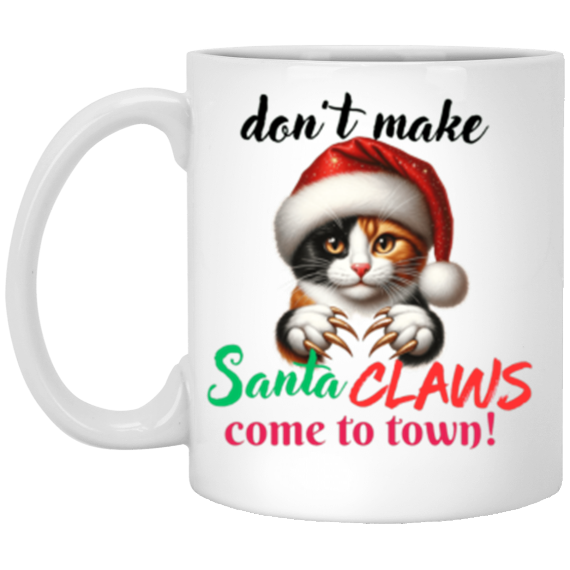 Celebrate the festive season with a playful twist! Introducing our “Don’t Make Santa Claws Come to Town” coffee mug. A cheeky take on the classic Christmas jingle, this mug is sure to bring smiles to your mornings and chuckles to your coffee breaks. Features: High-Quality Craftsmanship: Made with premium white gloss 11oz ceramic, it’s not just a mug, it’s a statement piece. Durability: This mug is designed to last. Whether it’s the daily dishwasher cycle or a quick zap in the microwave, this mug can handle it all. Stunning Print: The top-to-bottom full wrap dye sublimation ensures that Santa Claws and his vibrant colors stand out, making it a standout in your mug collection. AAA ORCA Coating™: Say goodbye to faded prints. With our AAA ORCA Coating™, enjoy maximum print vibrancy that stands the test of time. Decoration Method: The beautiful design is brought to life using the sublimation method, ensuring every detail is captured perfectly. Gift it to a loved one, or treat yourself to a unique holiday mug that adds a splash of humor to the festive season. Perfect for sipping on hot cocoa, coffee, or your favorite holiday brew. Order yours today and let the holiday fun begin! High quality white gloss 11oz ceramic mug Dishwasher safe & Microwave safe Top-to-bottom full wrap dye sublimation AAA ORCA Coating™ for maximum print vibrancy & longevity Decoration Method: Sublimation