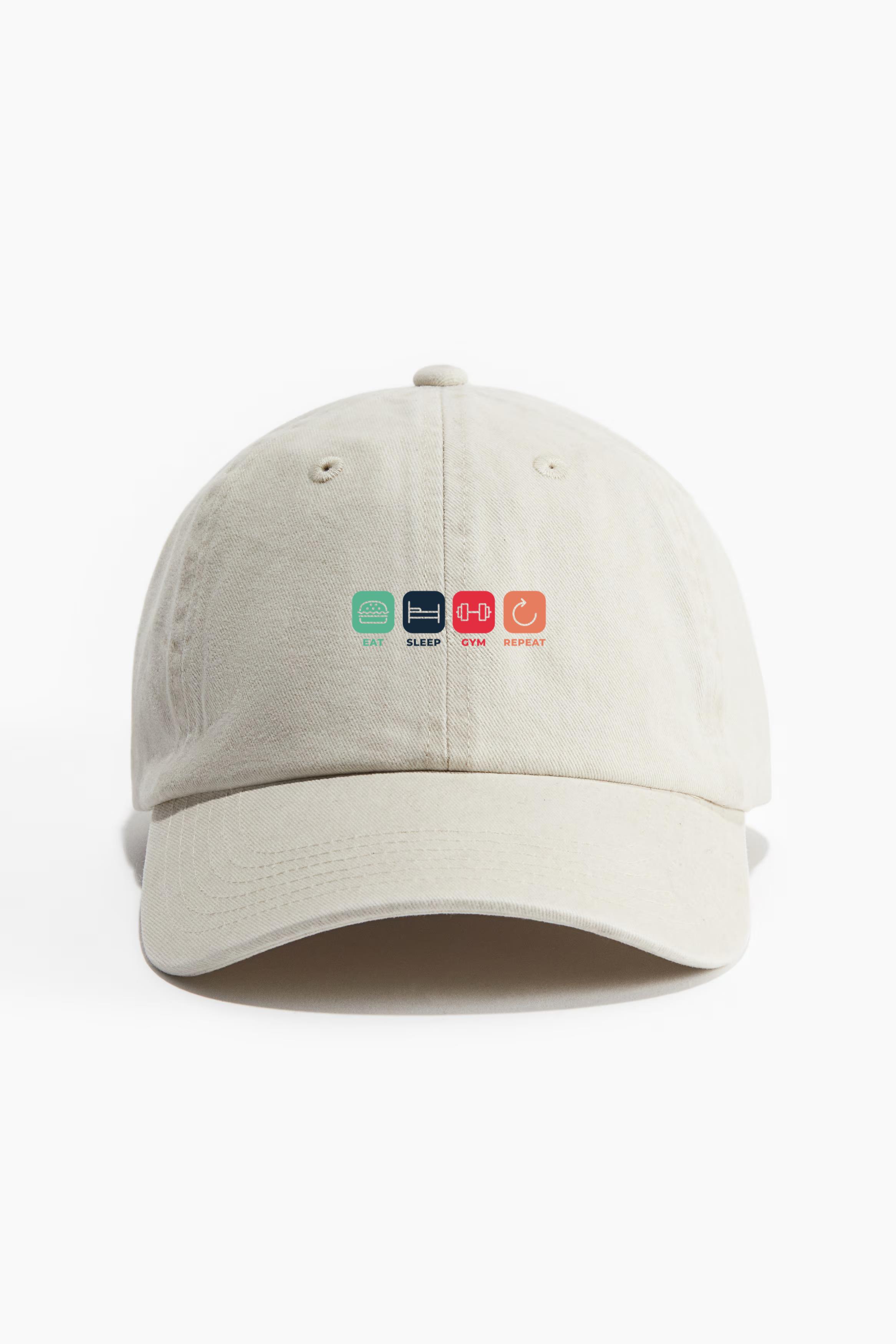 Eat Sleep Gym Repeat Badge Cotton Twill Cap Cotton Twill Cap – Adjustable 6-Panel Baseball Hat for Everyday Wear