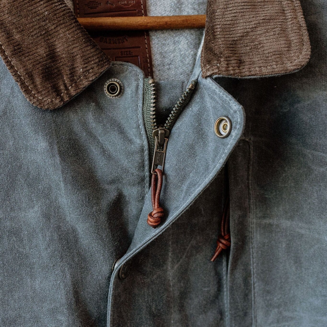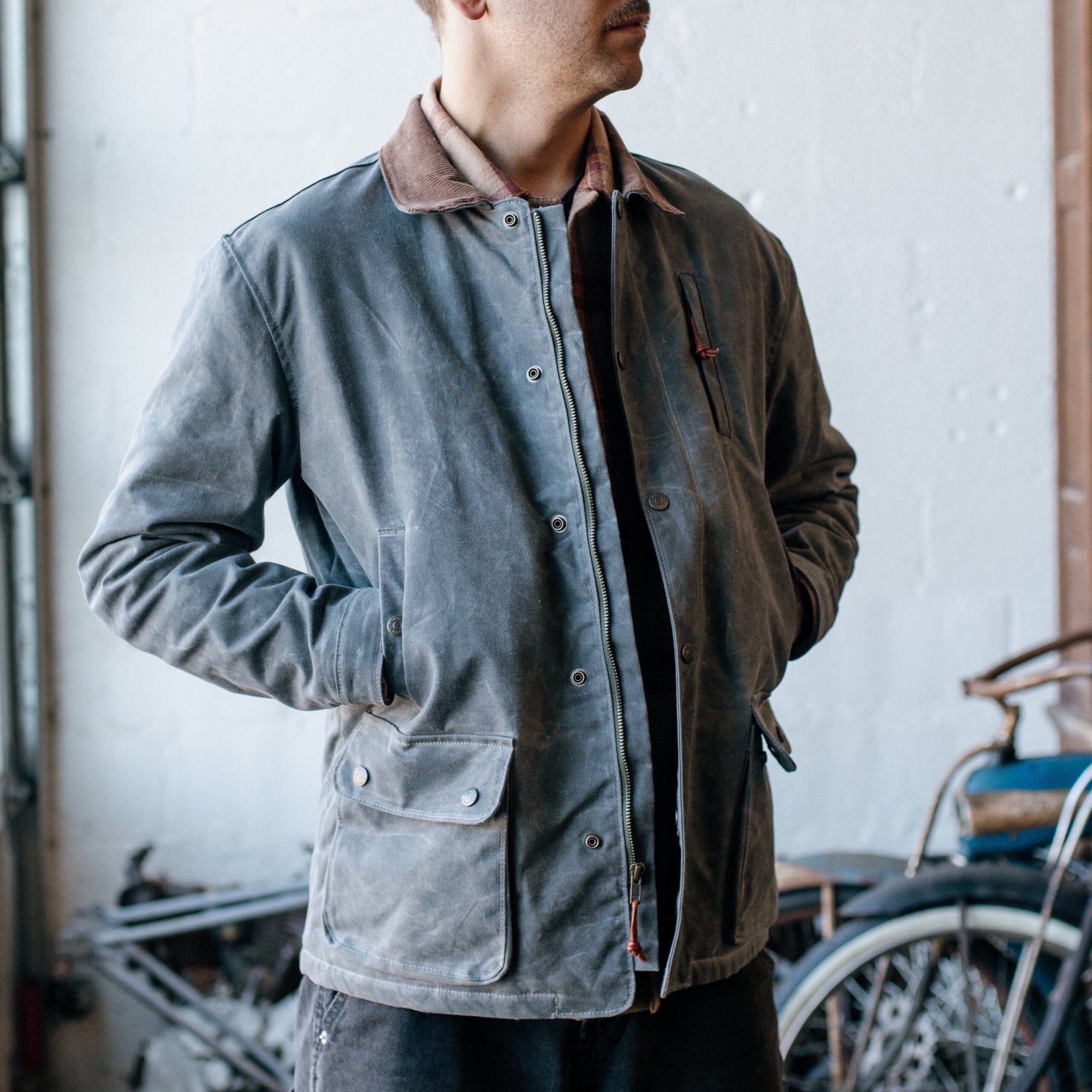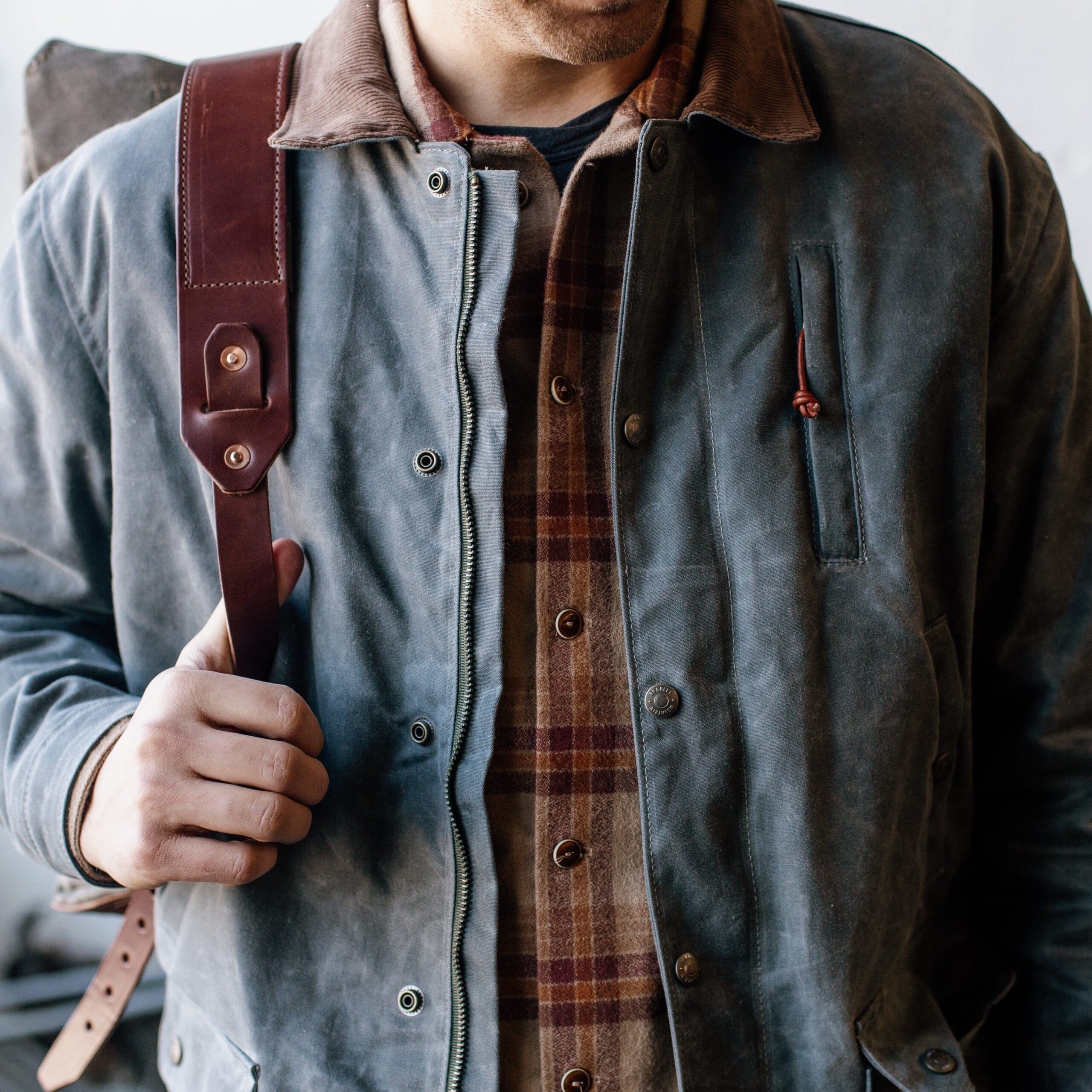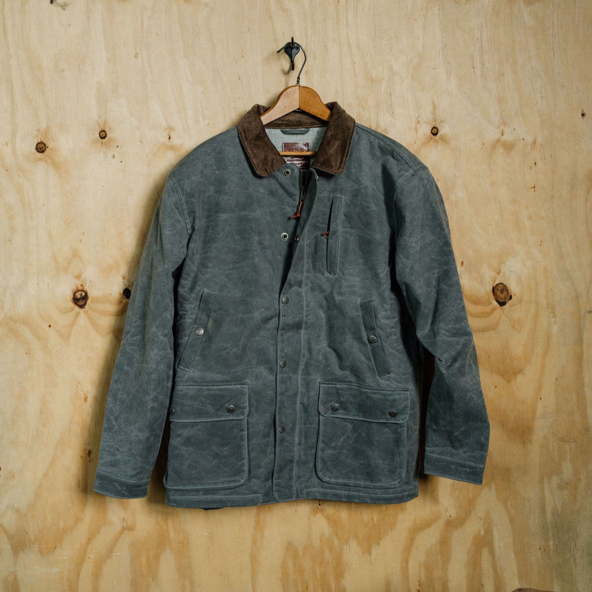 The Field Jacket is our answer for the rancher, the outdoorsman, or the person that just wants to stand out. This jacket gives you everything you need in storage, and function, while looking clean and classic. With its water resistant waxed outer layer, soft 100% wool lining, and multi-function pocket features, you’ll never need another jacket. Made in the USA. 12 oz Waxed Canvas Outer 100% USA Wool Blanket Lining – New Pendleton Wool Antiqued brass snaps Fits like a car coat – a few inches longer than the Cabin and just below the belt line. 2 Gusseted dump pockets 2 Mid height pockets (rifle pockets) Zipper and snap wind flat on front Corduroy collar Zipper chest pocket Interior Pocket Spot Clean Only Made in USA Click here for sizing chart