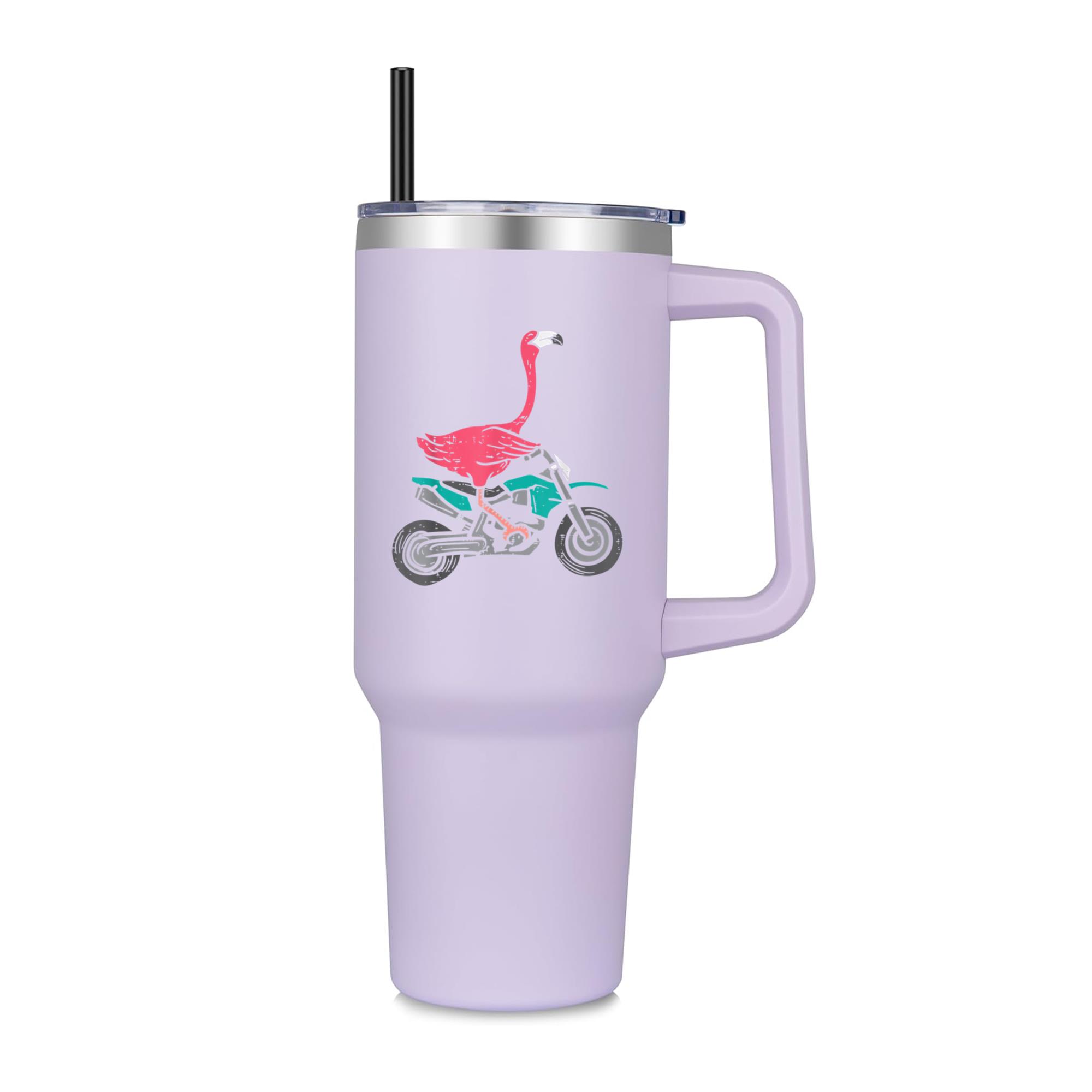 Flamingo Riding Dirt Bike 40oz Stainless Steel Tumbler 40oz Stainless Steel Tumbler with Handle and Straw – Double-Wall Vacuum Insulated Travel Mug with Lid