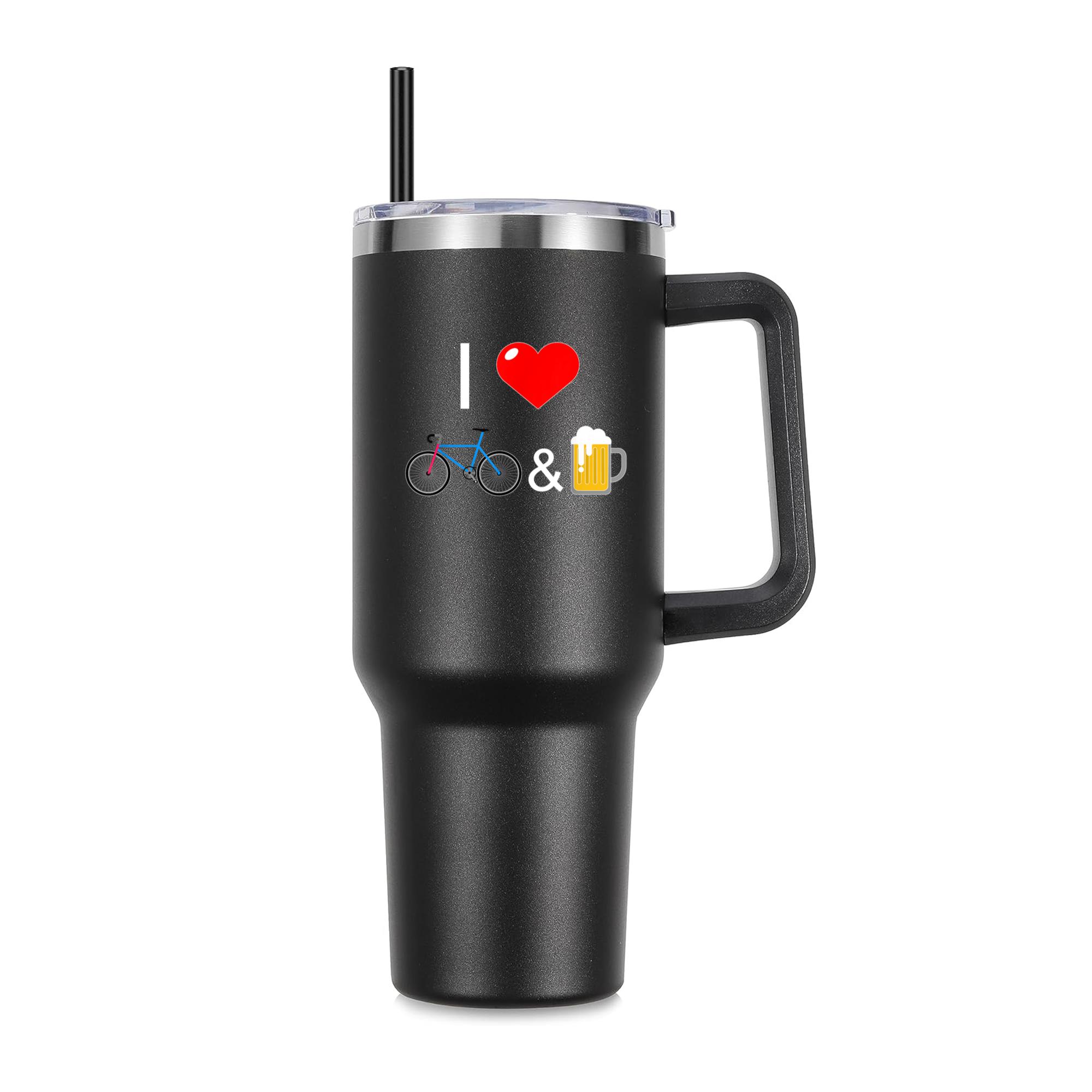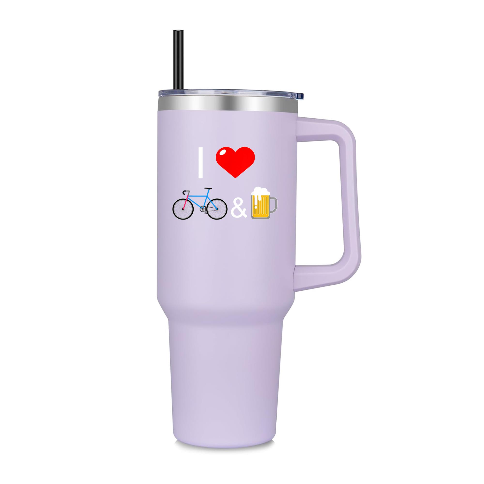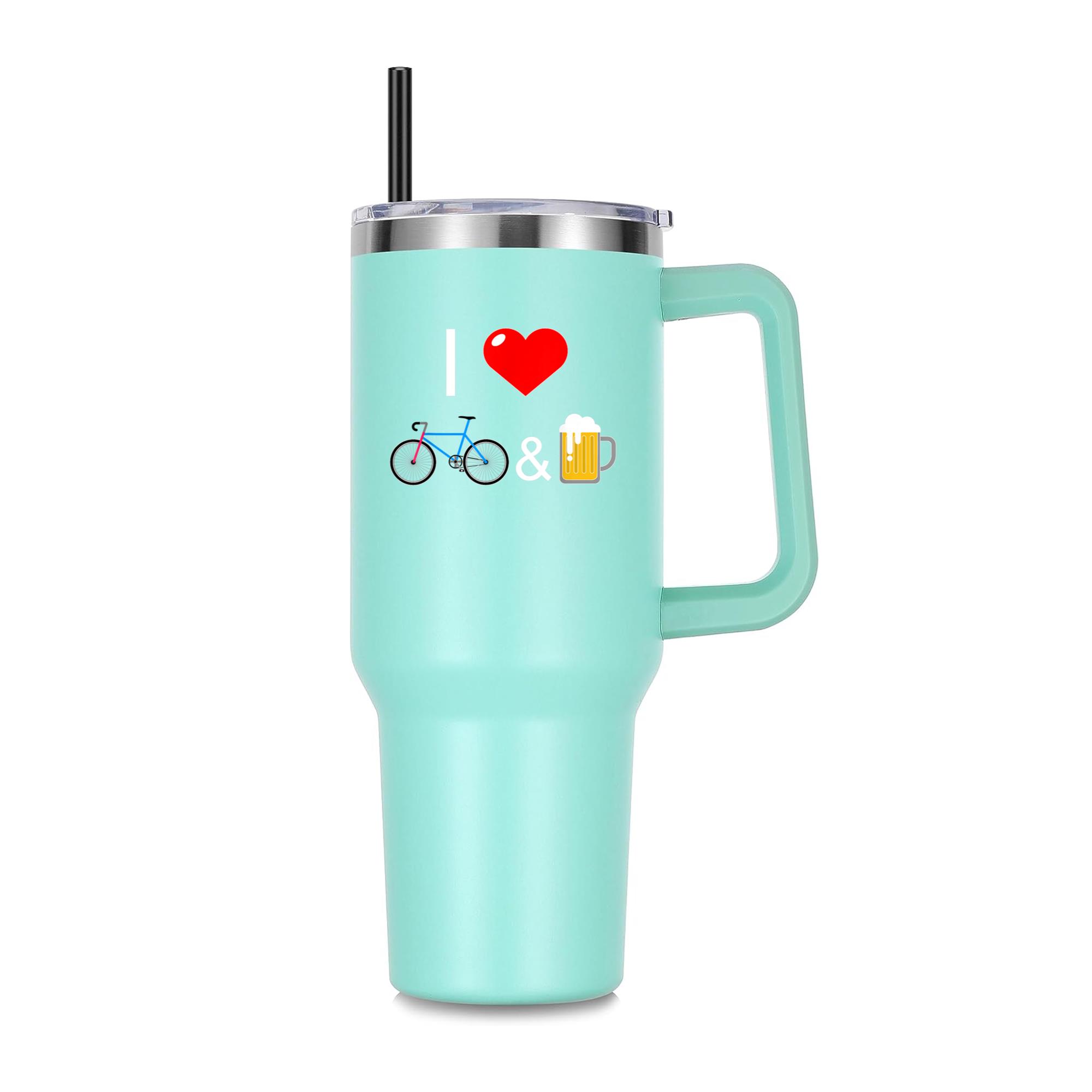 I Love Bikes And Beer Cycing 40oz Stainless Steel Tumbler 40oz Stainless Steel Tumbler with Handle and Straw – Double-Wall Vacuum Insulated Travel Mug with Lid