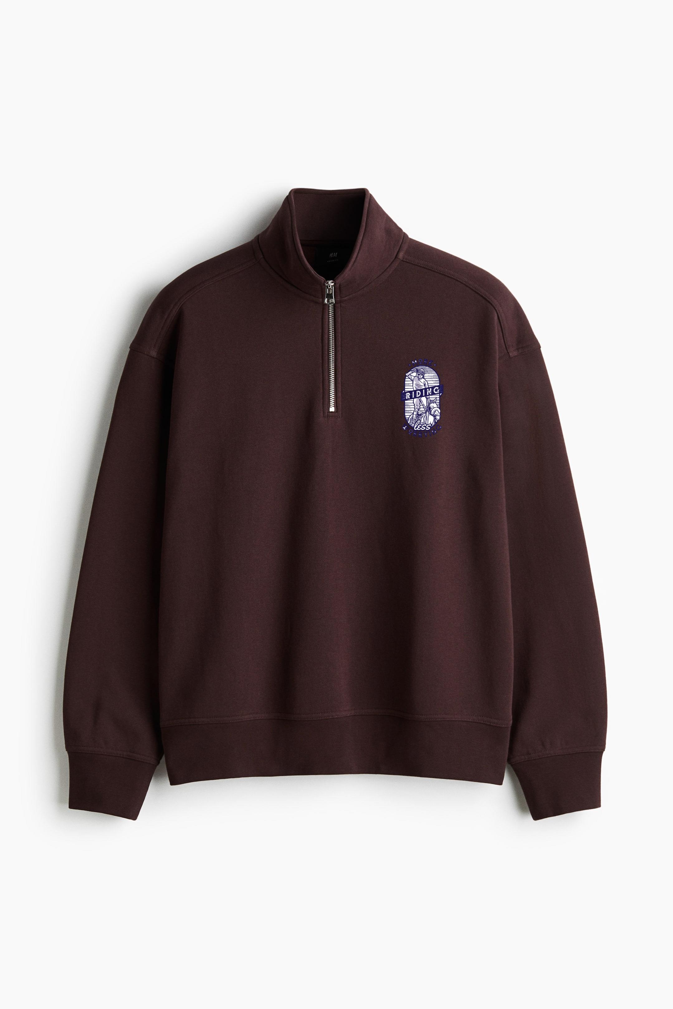 More Riding Less Worrying Loose-Fit Sweatshirt Collar Jacket Loose-Fit Sweatshirt Collar Jacket – Casual Zip-Up Fleece Jacket with Ribbed Collar and Relaxed Silhouette