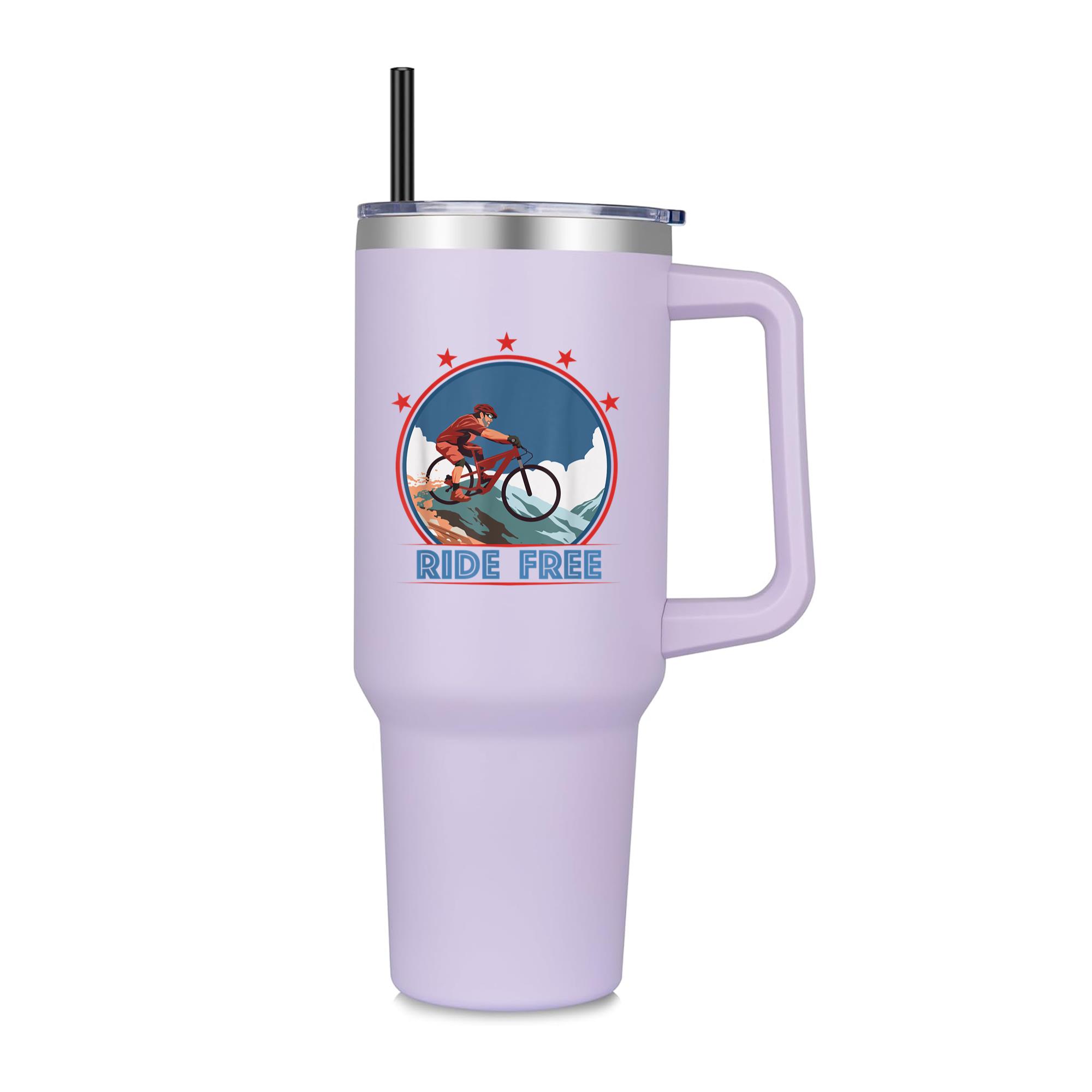 Mountain Bike Cycling Ride Free 40oz Stainless Steel Tumbler 40oz Stainless Steel Tumbler with Handle and Straw – Double-Wall Vacuum Insulated Travel Mug with Lid