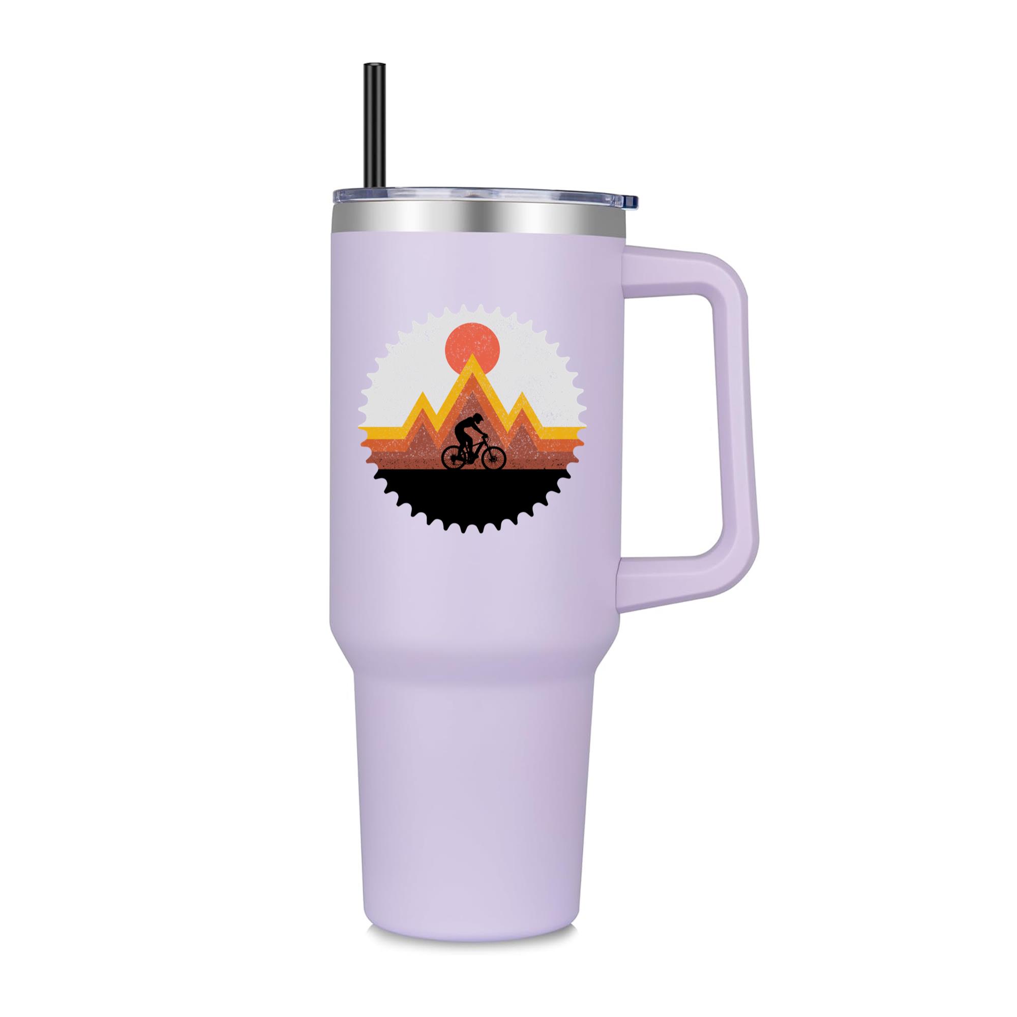 Stay hydrated in style with our Mountain Bike Vintage Retro MTB Downhill Biking Cycling 40oz Stainless Steel Tumbler 40oz Stainless Steel Tumbler. Featuring a built-in handle, reusable straw, and vacuum-insulated double-wall design, it keeps drinks hot or cold for hours — perfect for travel, office, workouts, or daily use.
