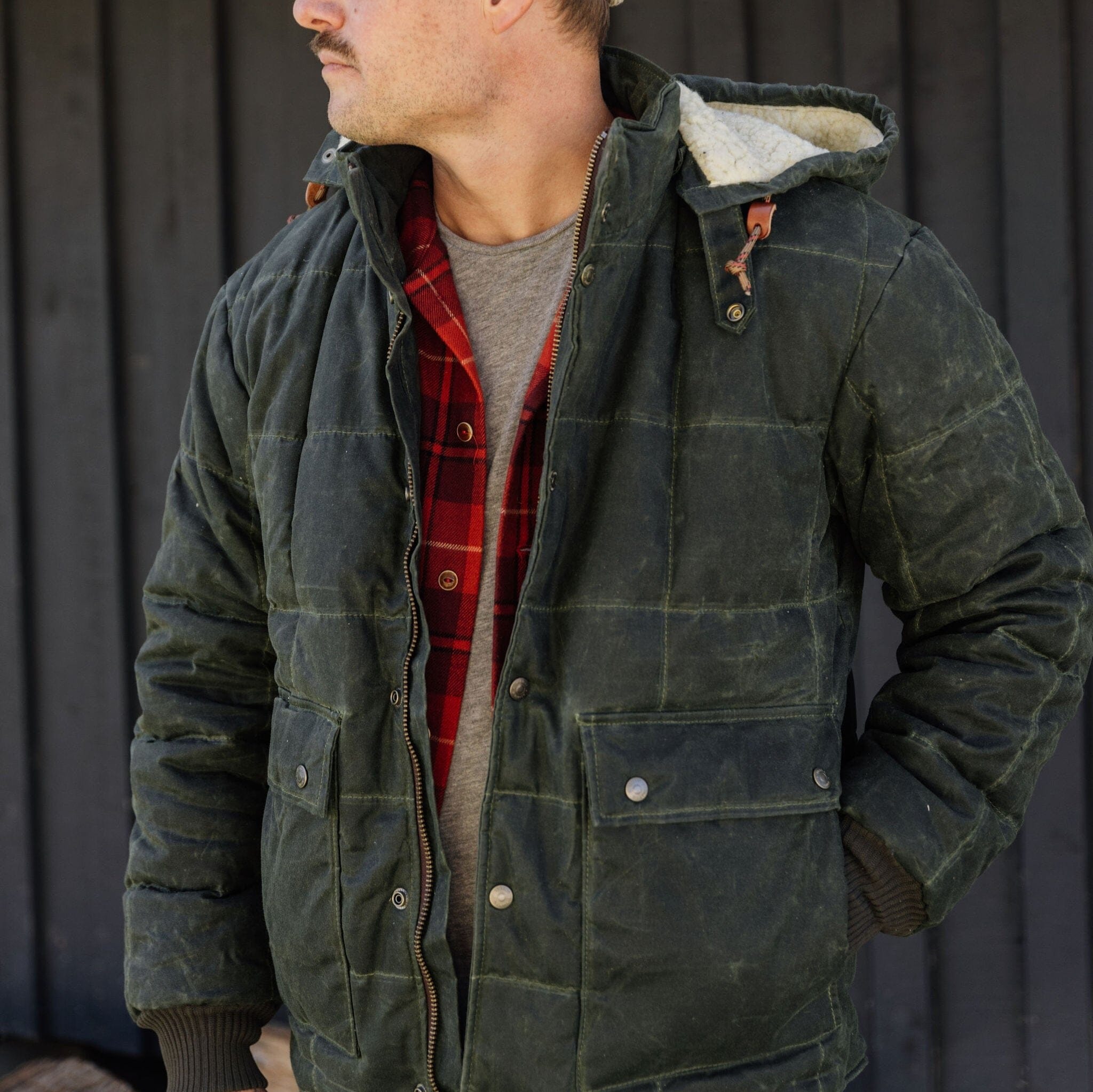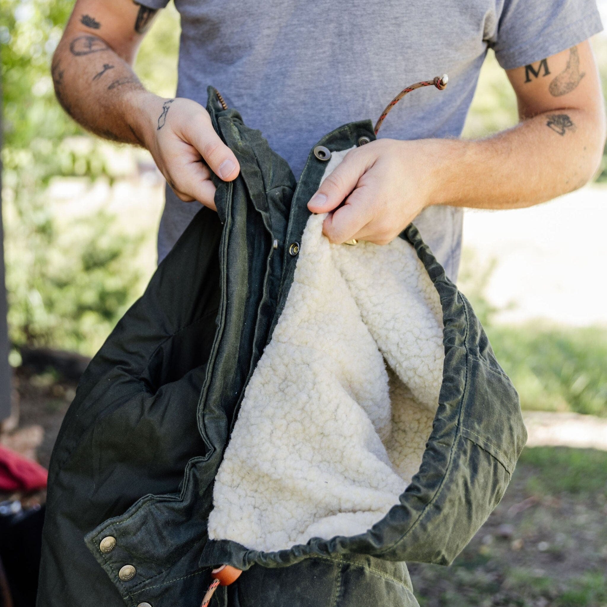 The Polar Navigator is our warmest jacket yet. It features a detachable sherpa-pined hood and a slightly thicker insulation. This jacket fits slightly larger than the other jackets to allow for layering. This jacket is an insulated, quilted style coat with a USA 7oz waxed outer layer, and a soft poplin, breathable lining for comfort. This jacket features high performance insulation without losing the heritage/classic look we always strive for. There’s no other way to say it: this thing is comfy. This jacket has large quilted squares (custom sewn to each jacket), and slightly oversized collar for a retro outdoor look. The two front double entry pockets allow you to hold items in the top flap section while still being able to warm your hands in the side entry sections. We also added a utility tab under the left flap for clipping a flash light, fishing nippers, or compass! 7 oz Waxed canvas outer layer Detachable sherpa-lined hood Insulated Soft Poplin Liner Double-entry pockets Inside Pocket Brass Snaps Utility Tab USA Made Click here for sizing chart