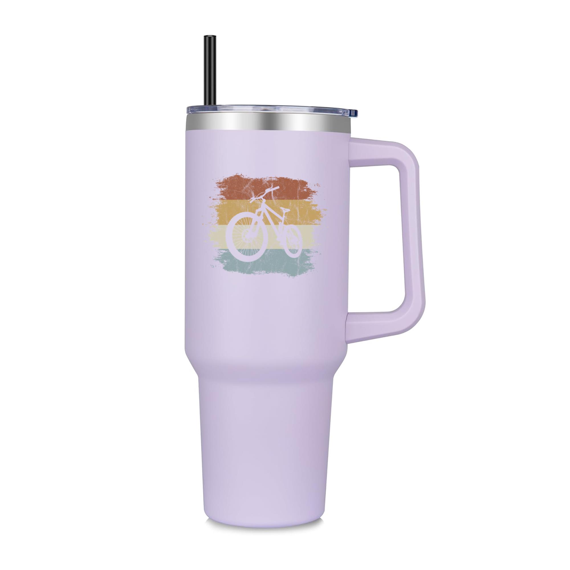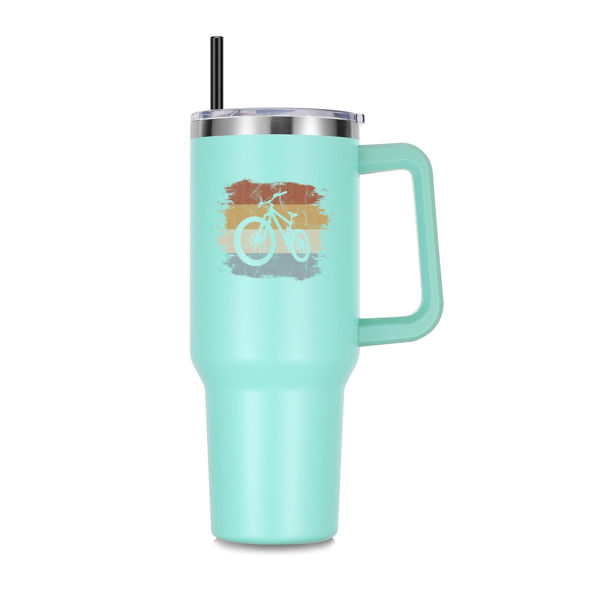 Retro Eighties Cycling Mountain Bike 40oz Stainless Steel Tumbler 40oz Stainless Steel Tumbler with Handle and Straw – Double-Wall Vacuum Insulated Travel Mug with Lid