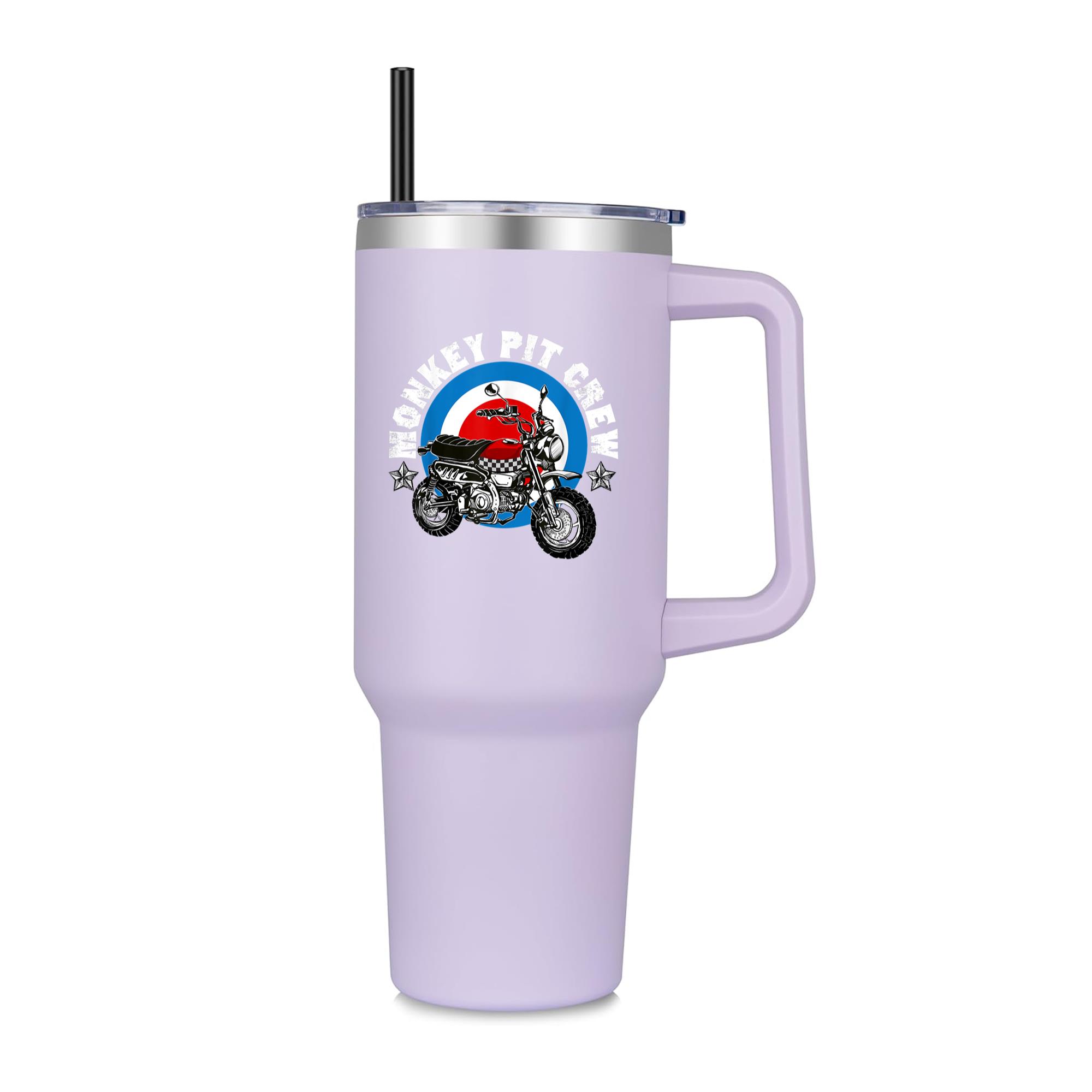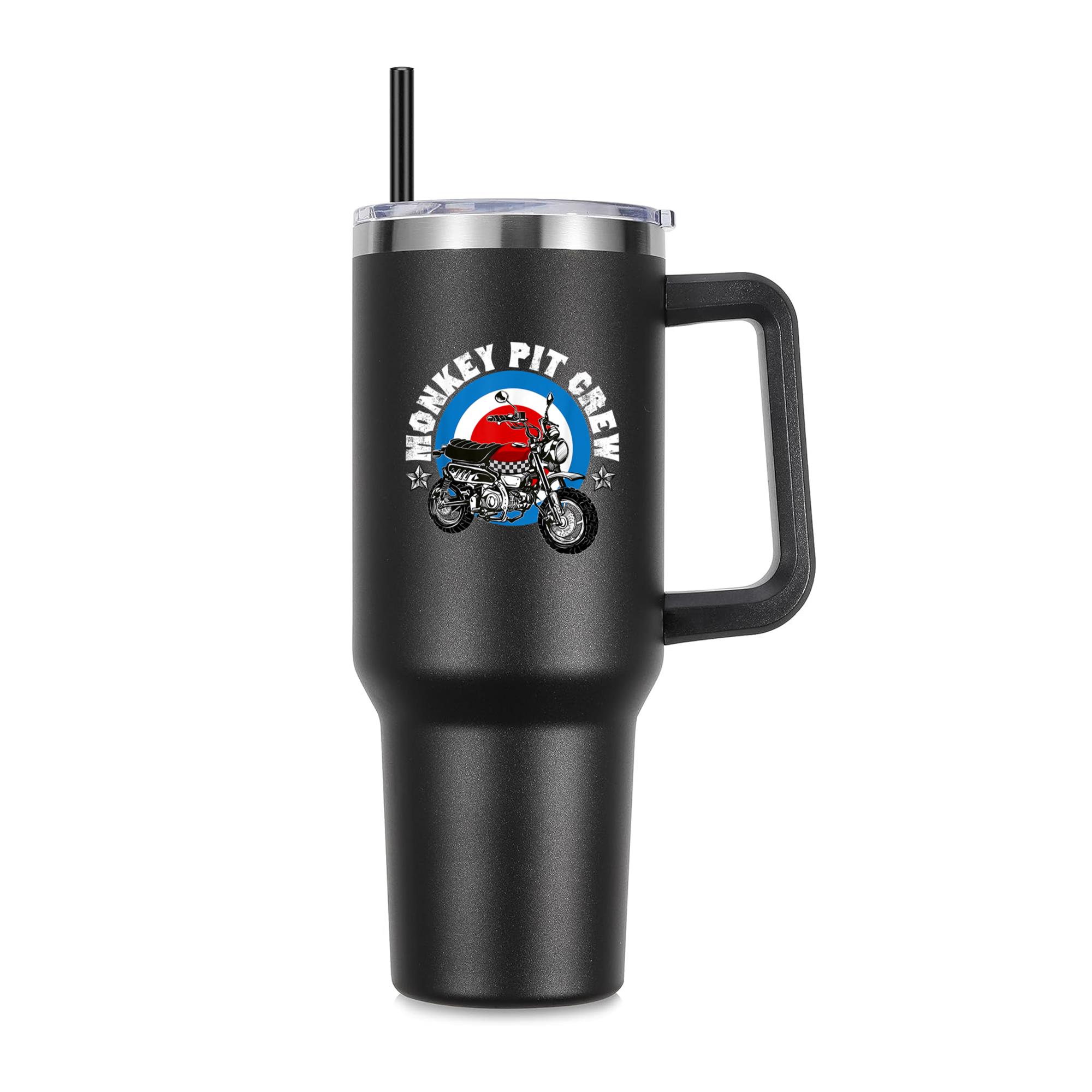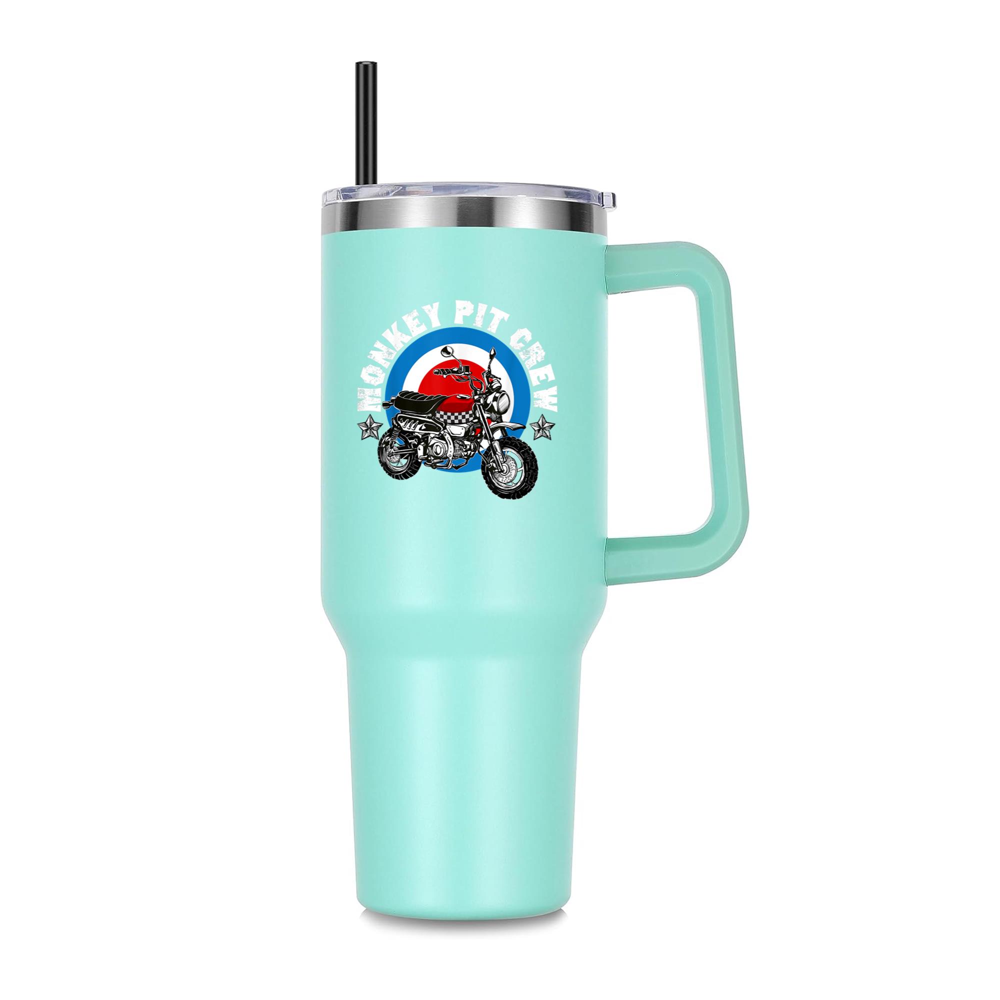 Retro Monkey Bike Pit Crew 40oz Stainless Steel Tumbler 40oz Stainless Steel Tumbler with Handle and Straw – Double-Wall Vacuum Insulated Travel Mug with Lid