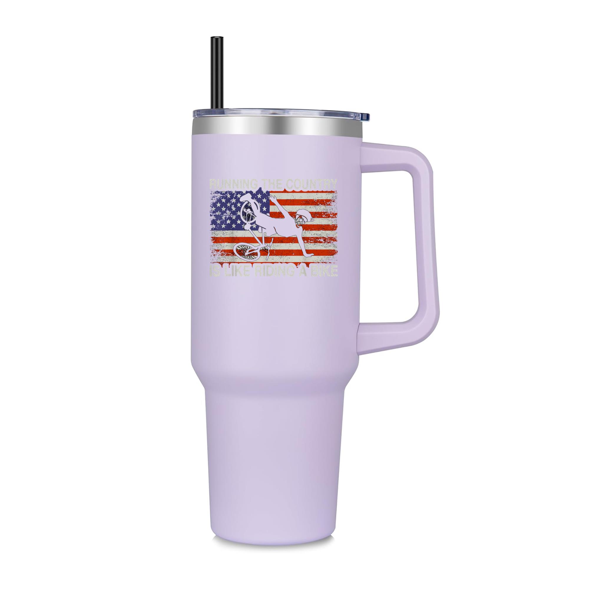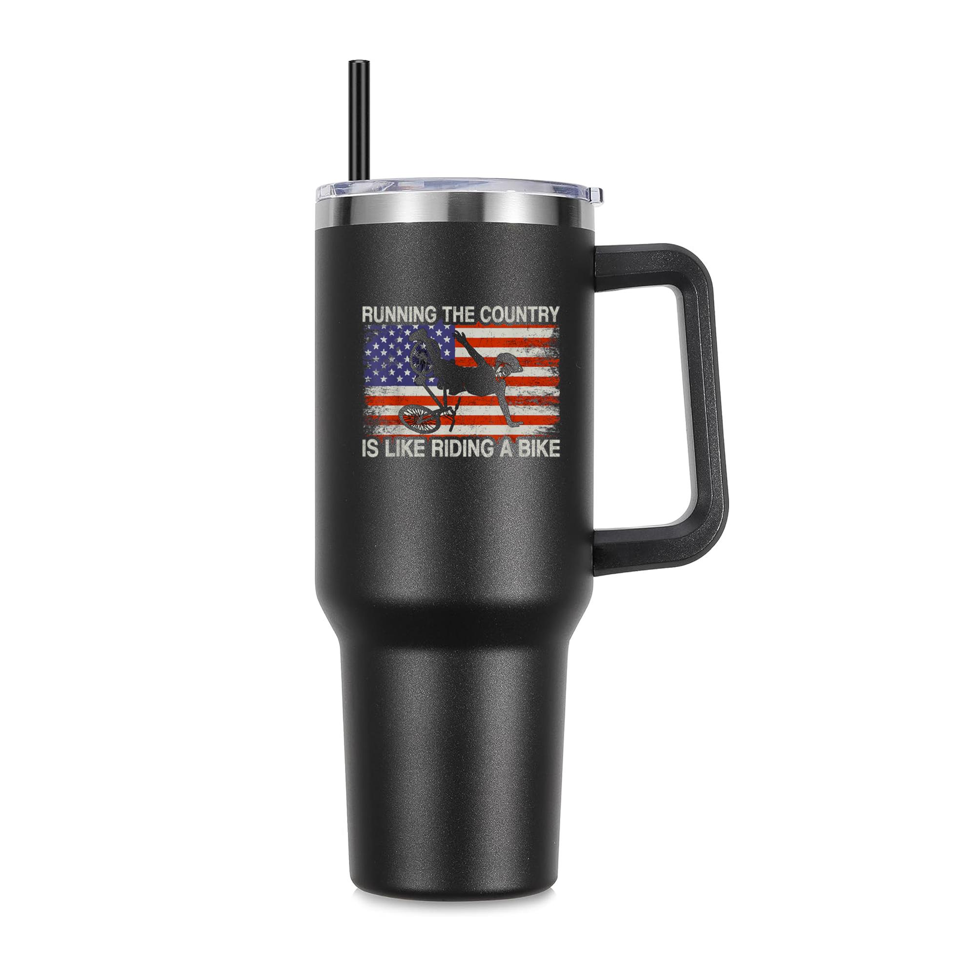 Running The Country Is Like Riding A Bike 40oz Stainless Steel Tumbler 40oz Stainless Steel Tumbler with Handle and Straw – Double-Wall Vacuum Insulated Travel Mug with Lid