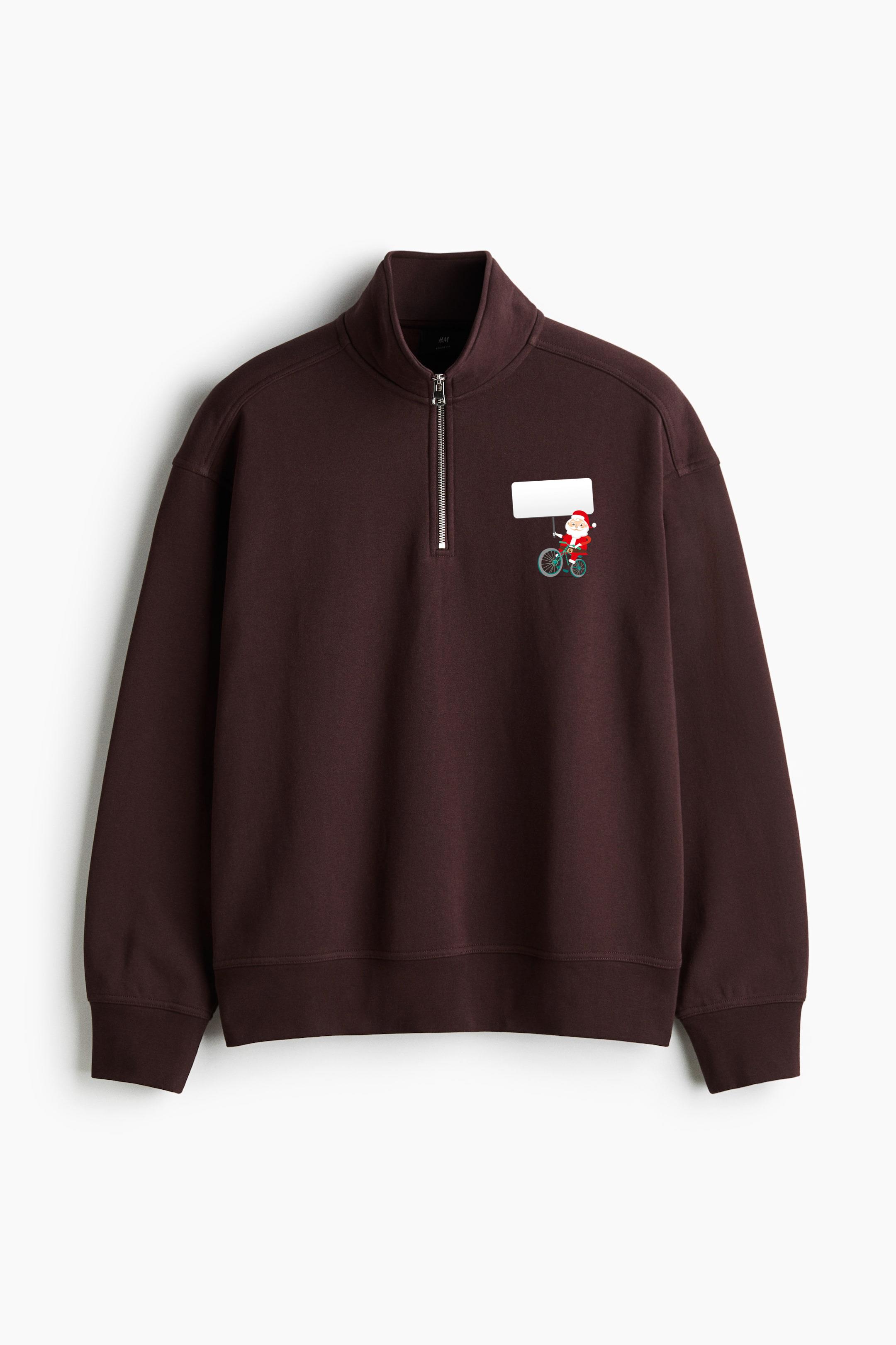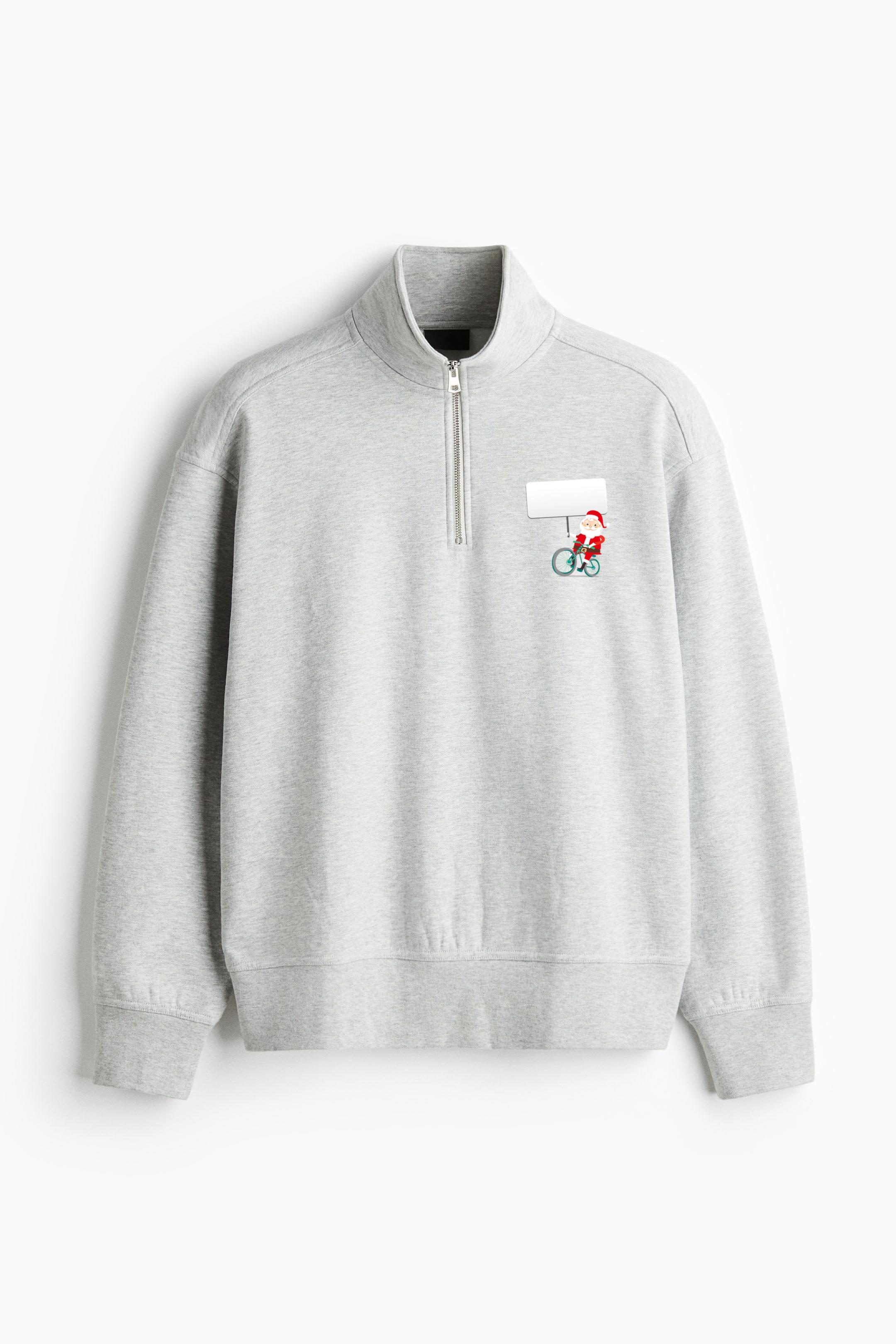 Santa Holding Banner On Bike Loose-Fit Sweatshirt Collar Jacket Loose-Fit Sweatshirt Collar Jacket – Casual Zip-Up Fleece Jacket with Ribbed Collar and Relaxed Silhouette