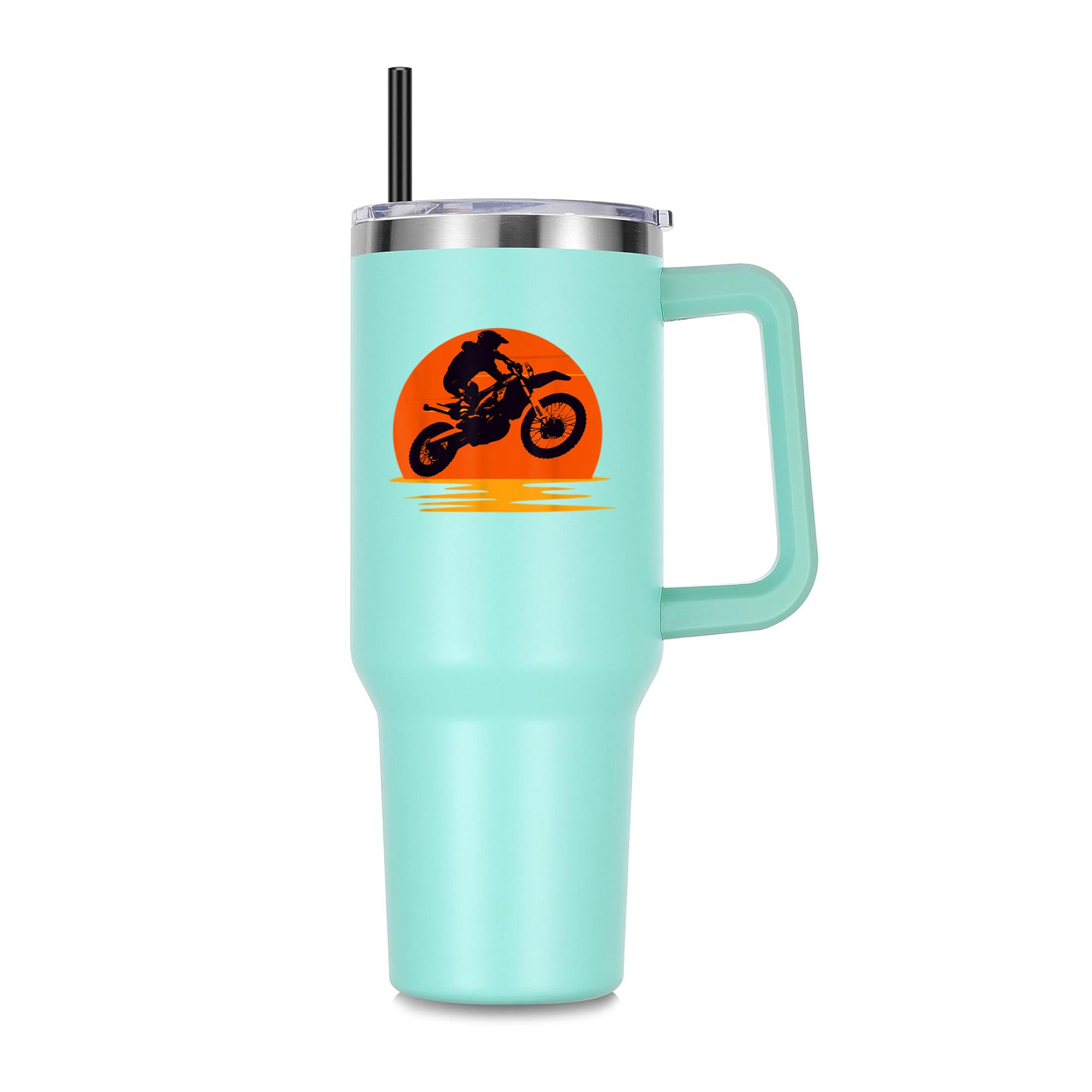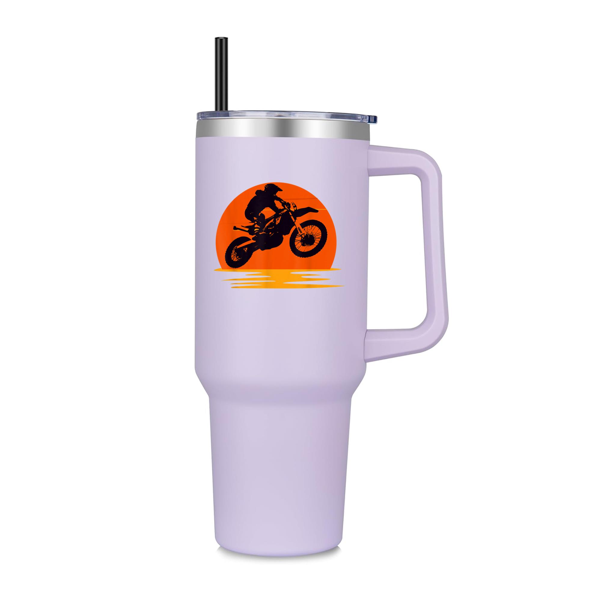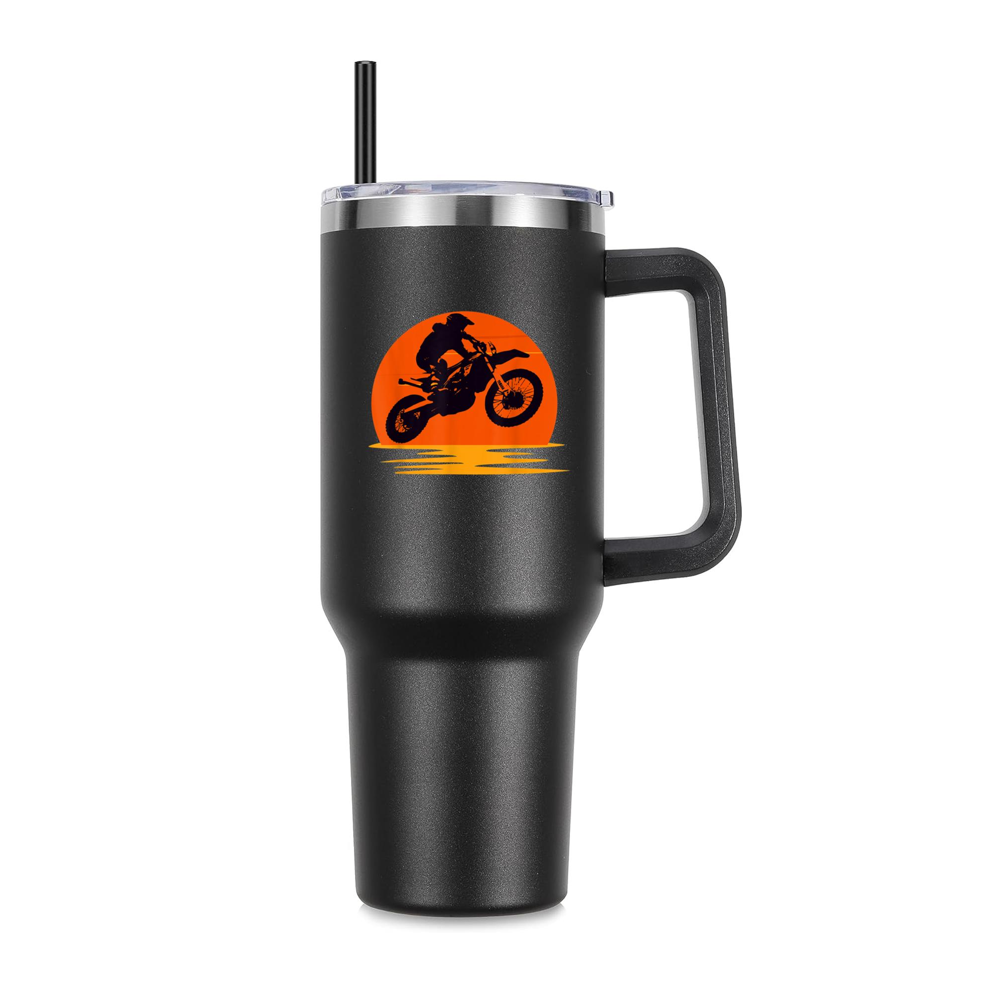 Sunset Dirt Bike Rider Graphic 40oz Stainless Steel Tumbler 40oz Stainless Steel Tumbler with Handle and Straw – Double-Wall Vacuum Insulated Travel Mug with Lid