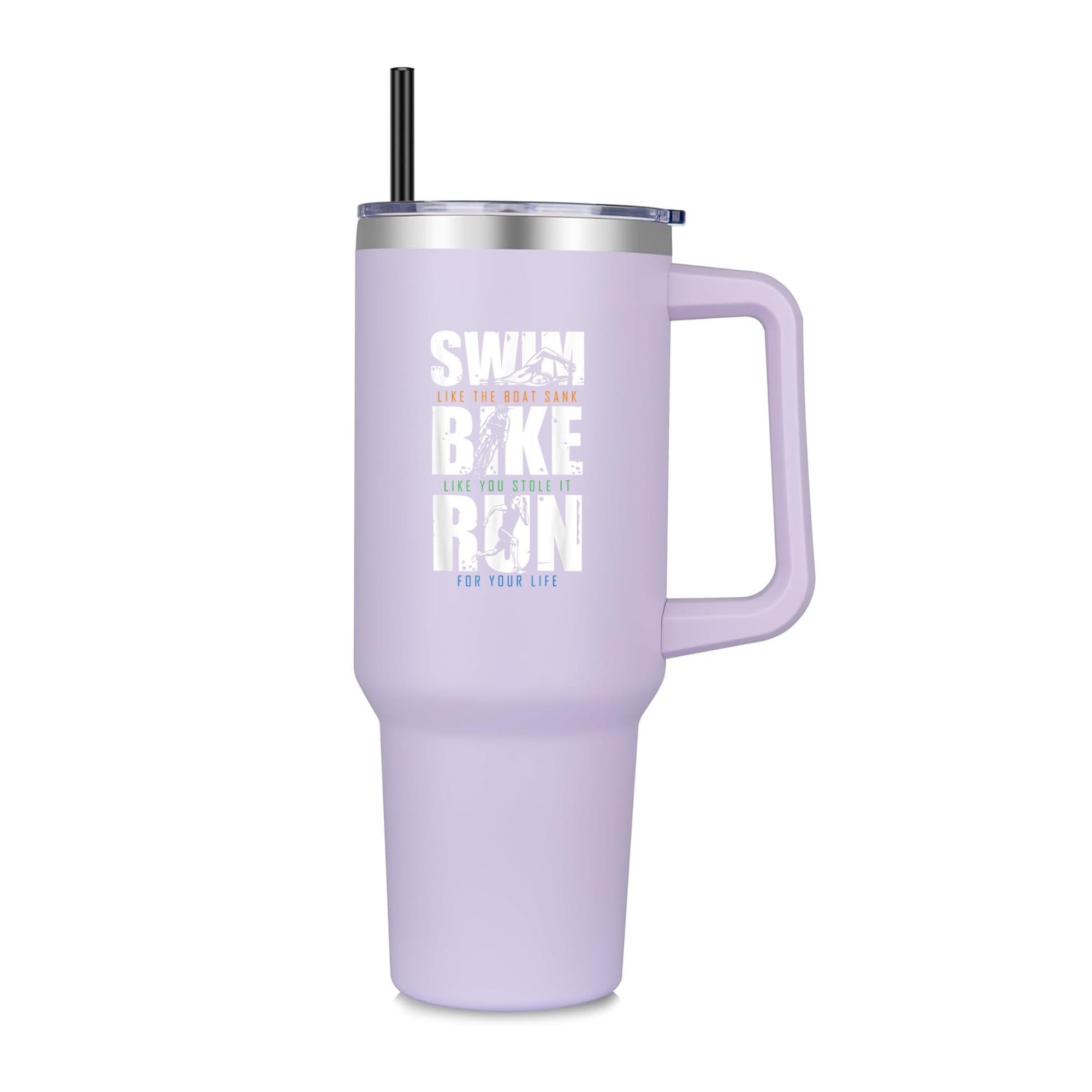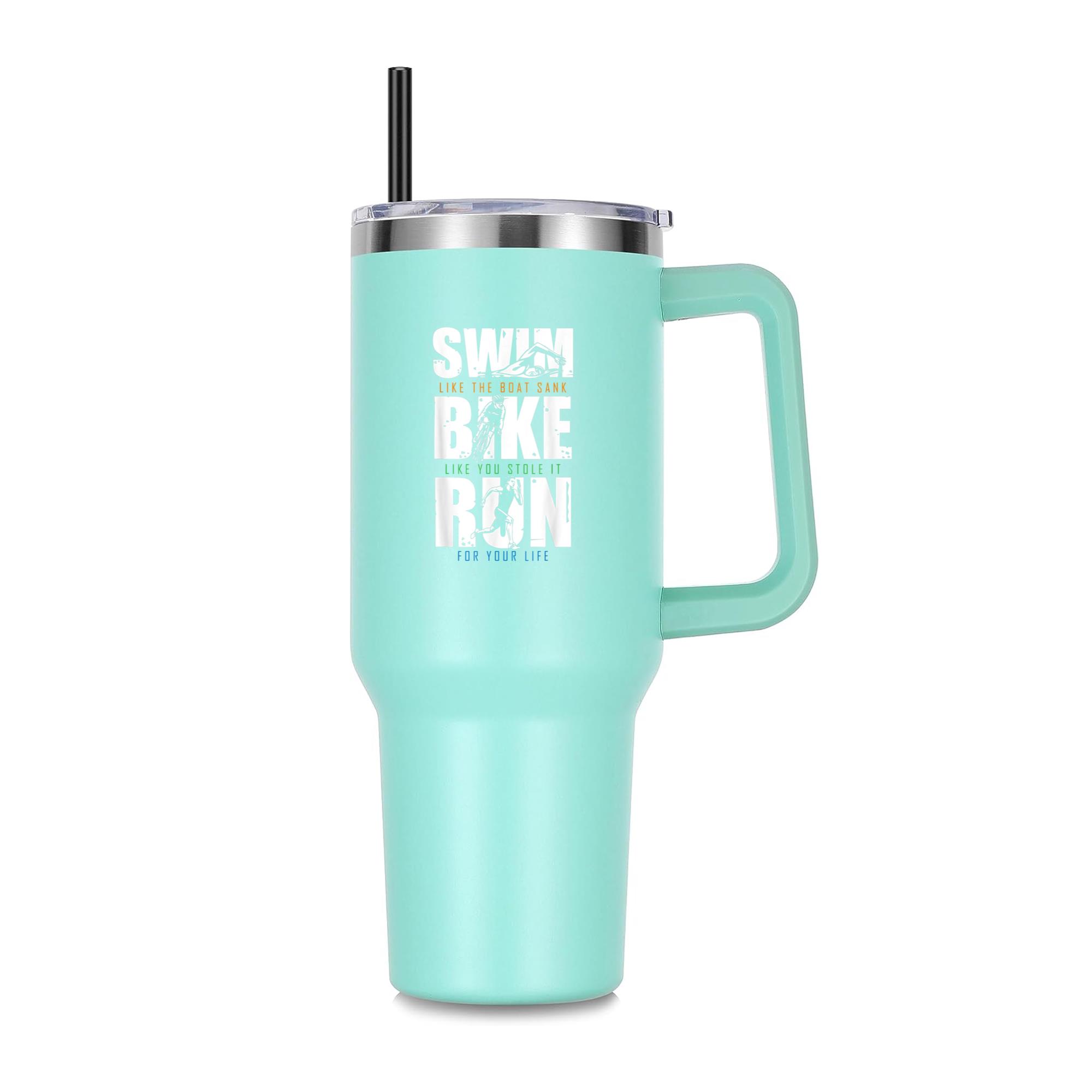Swim Bike Run 40oz Stainless Steel Tumbler 40oz Stainless Steel Tumbler with Handle and Straw – Double-Wall Vacuum Insulated Travel Mug with Lid