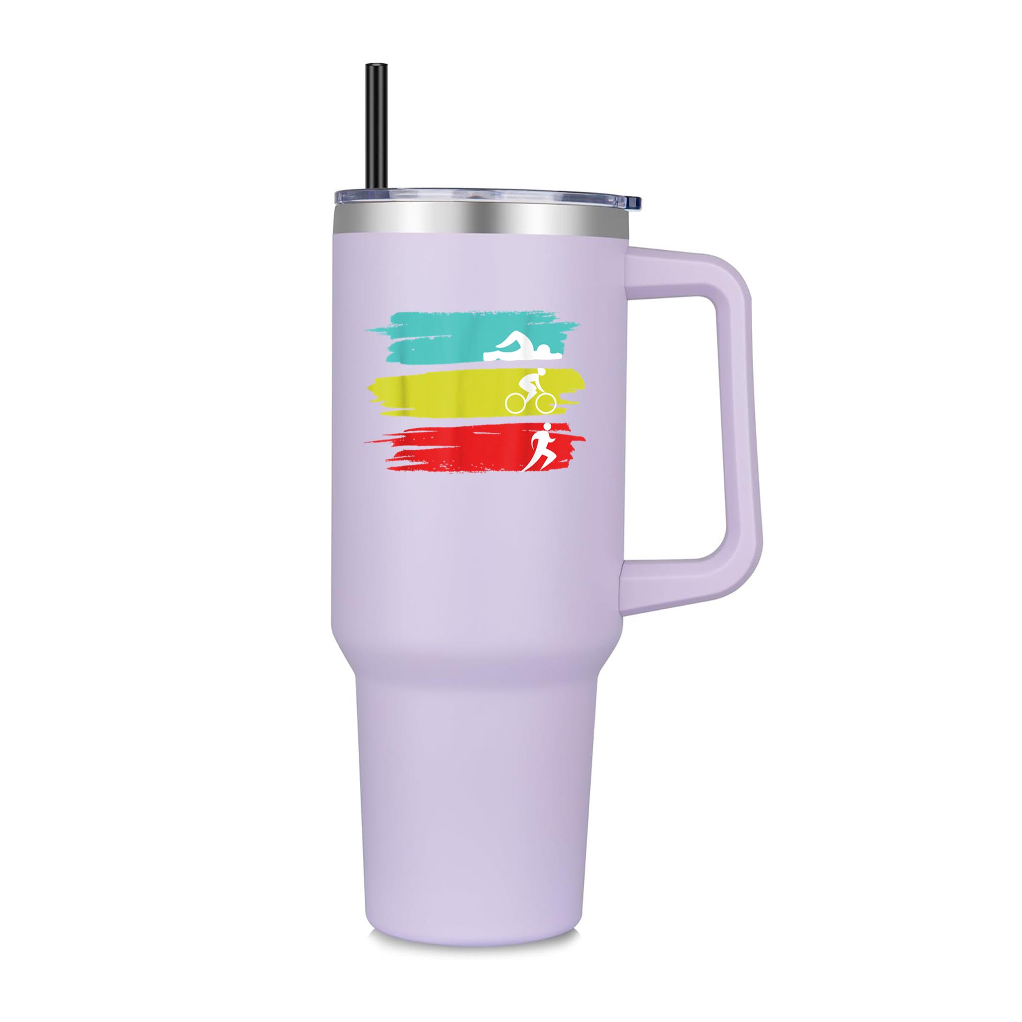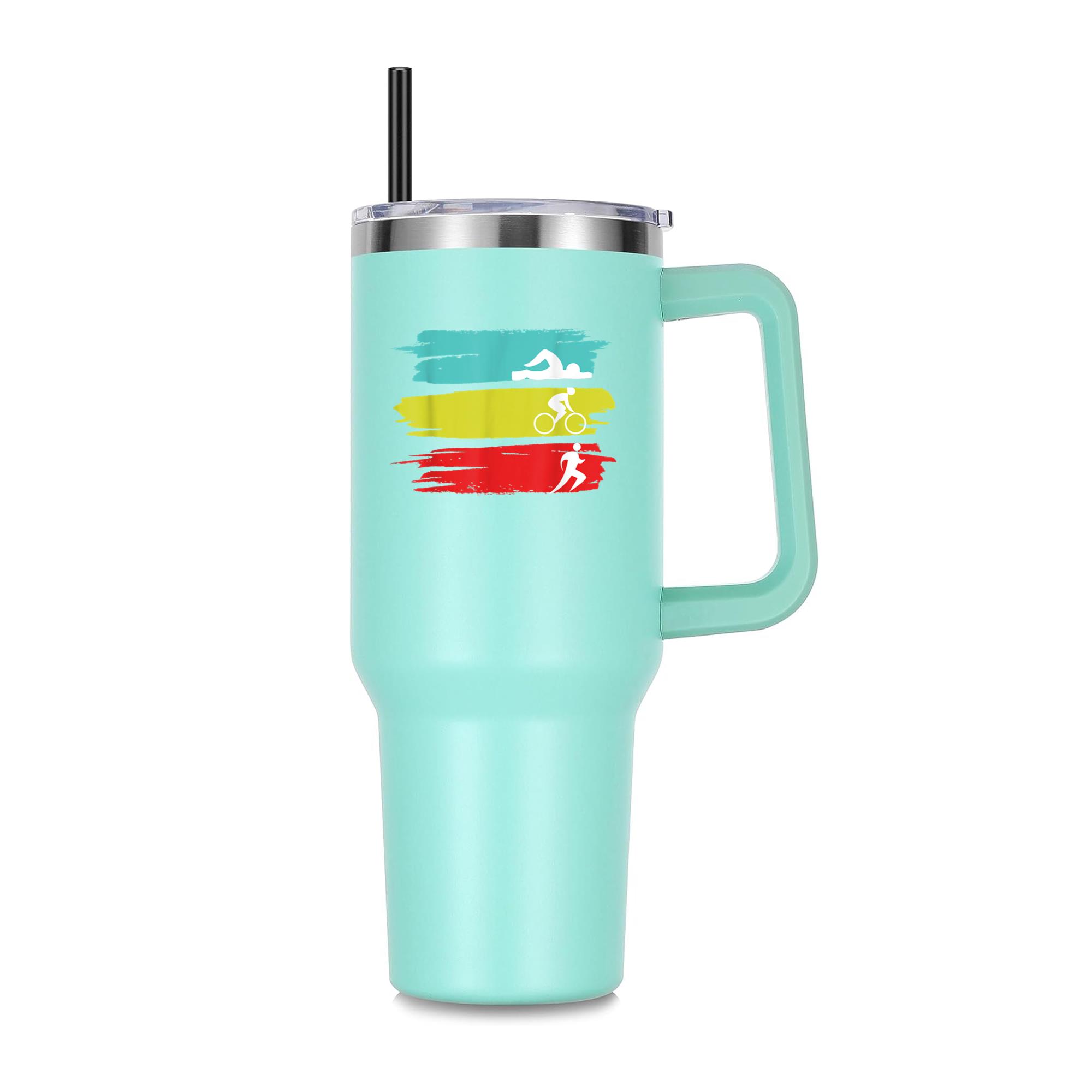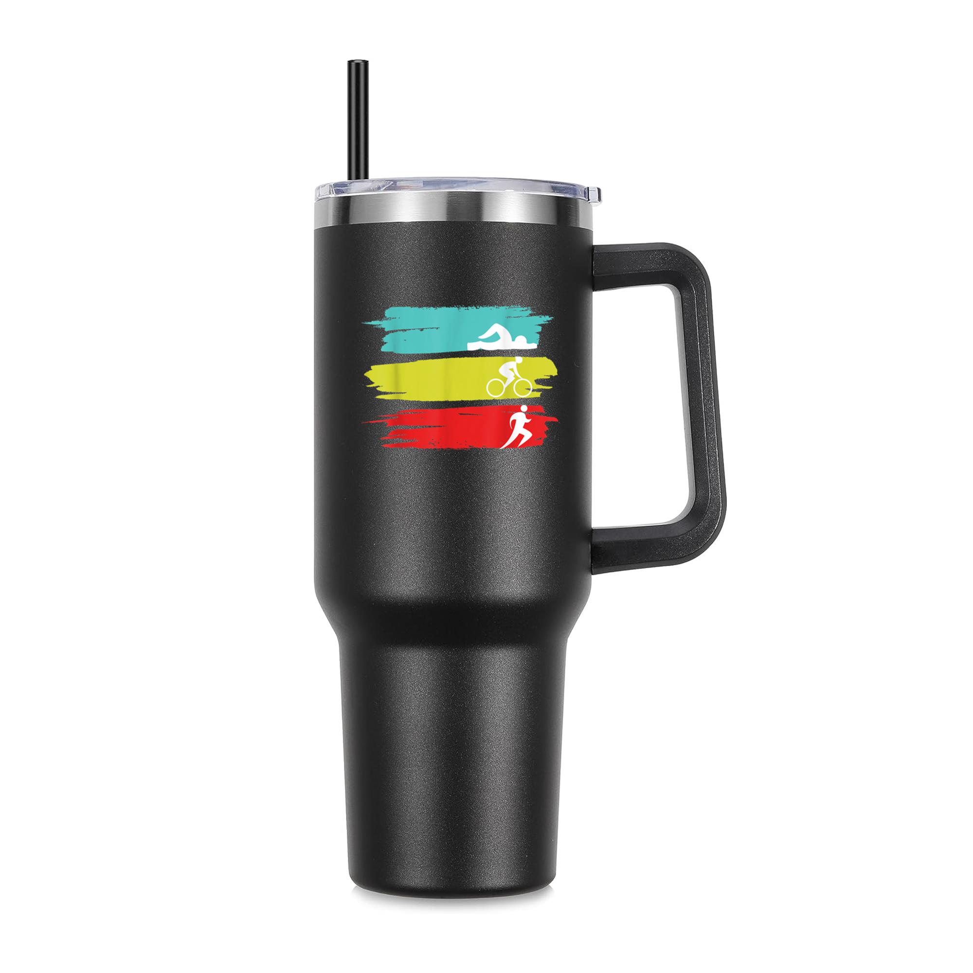 Triathlon Swim Bike Run Triathlon 40oz Stainless Steel Tumbler 40oz Stainless Steel Tumbler with Handle and Straw – Double-Wall Vacuum Insulated Travel Mug with Lid