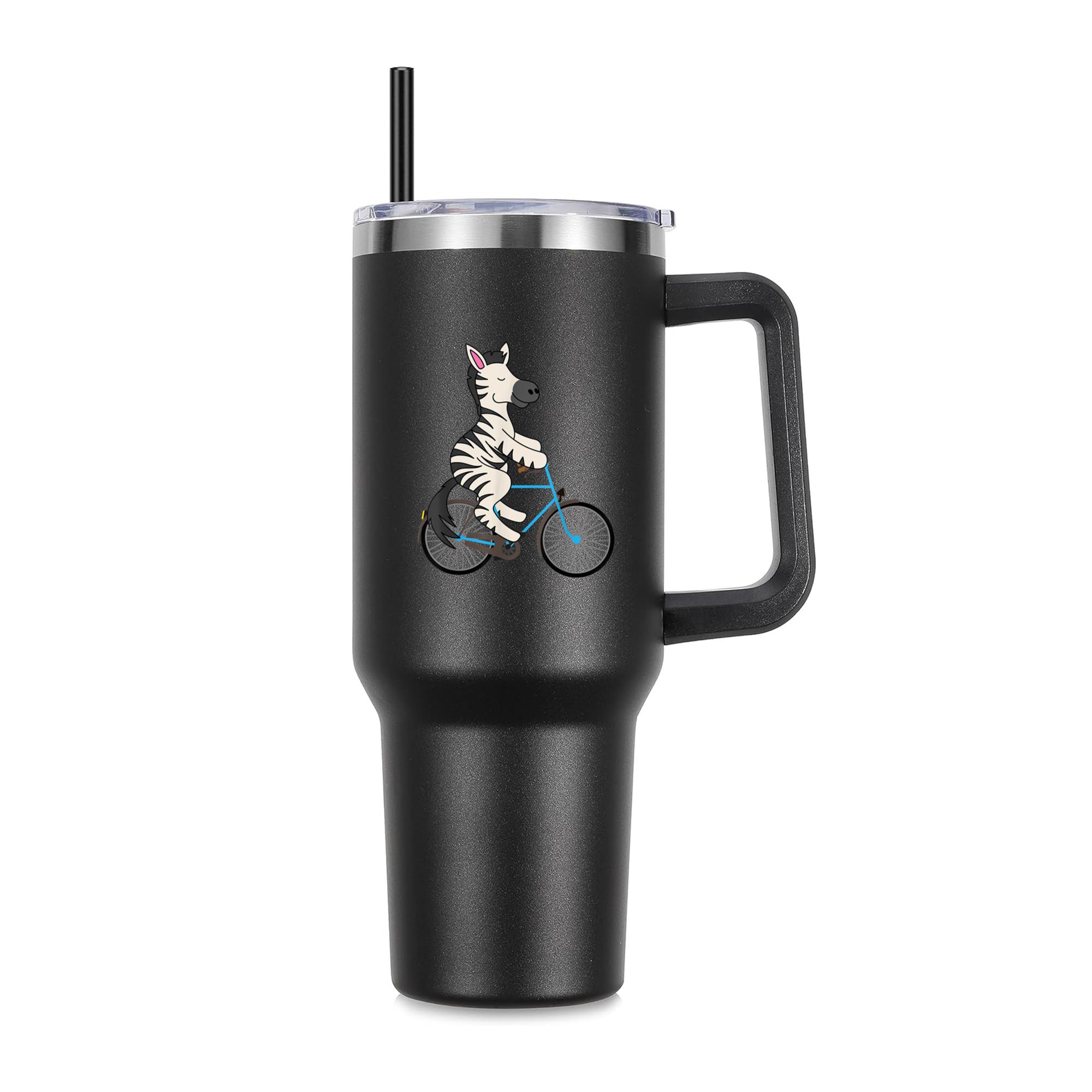 Stay hydrated in style with our Zebra On Bike Black White Stripe Biking 40oz Stainless Steel Tumbler 40oz Stainless Steel Tumbler. Featuring a built-in handle, reusable straw, and vacuum-insulated double-wall design, it keeps drinks hot or cold for hours — perfect for travel, office, workouts, or daily use.