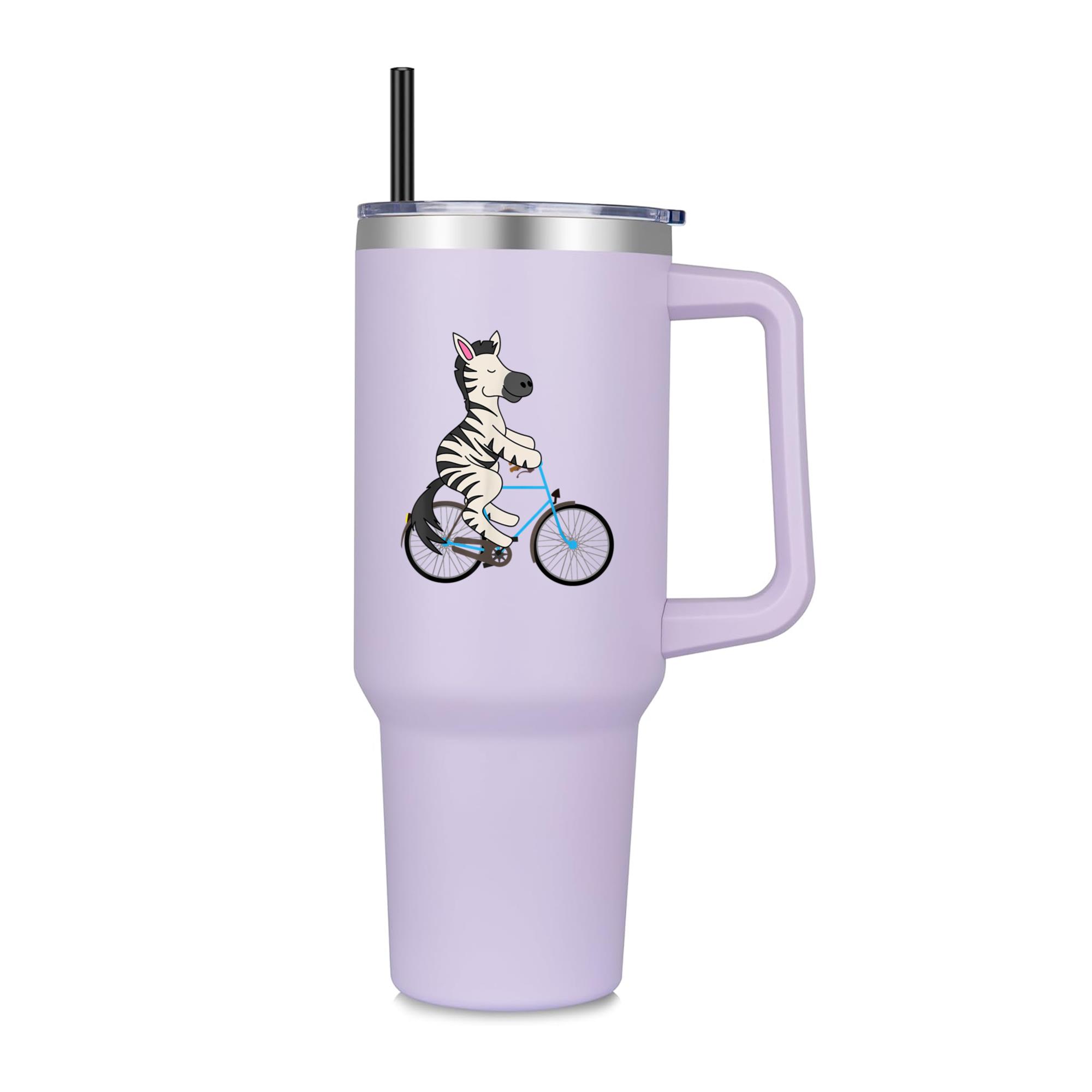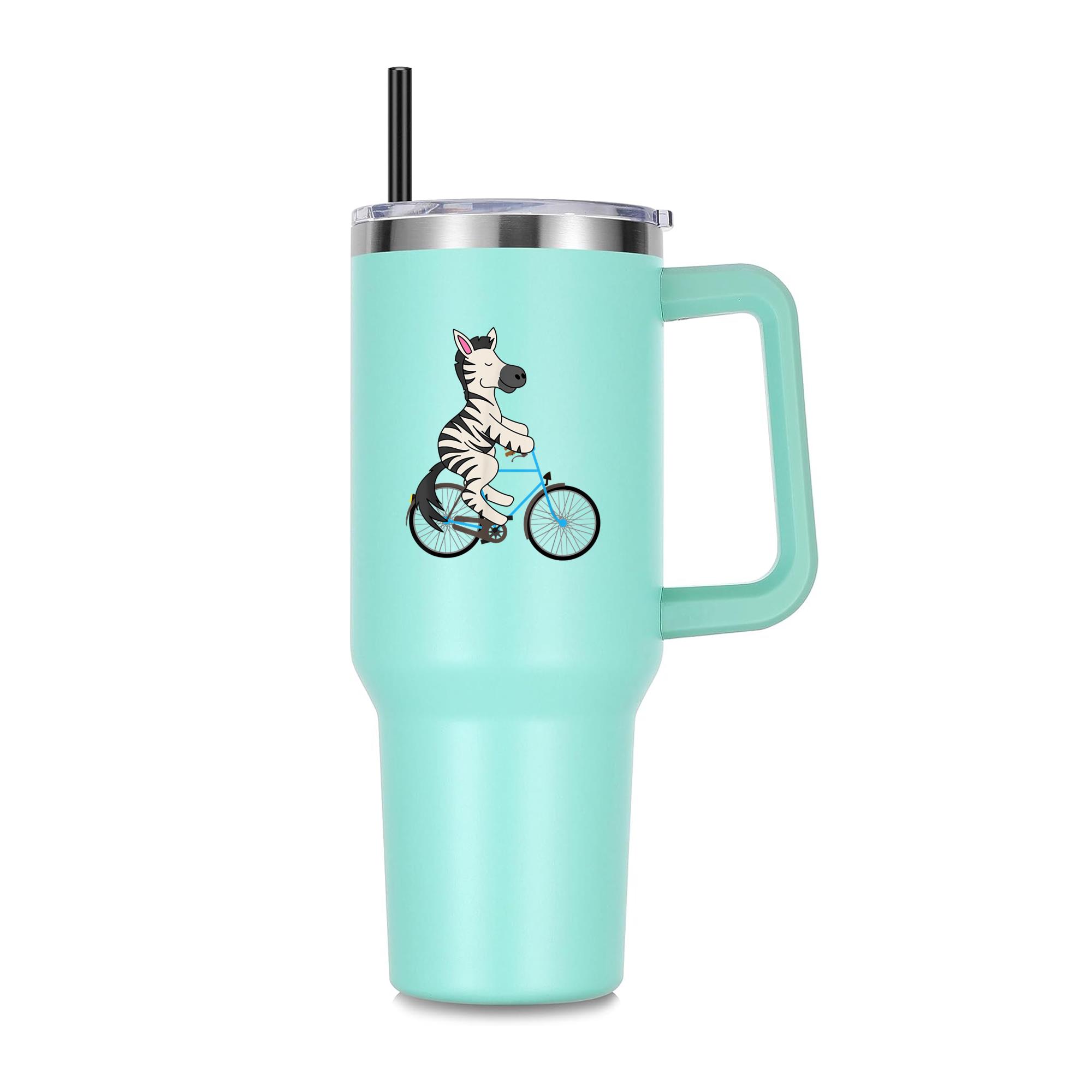 Zebra On Bike Black White Stripe Biking 40oz Stainless Steel Tumbler 40oz Stainless Steel Tumbler with Handle and Straw – Double-Wall Vacuum Insulated Travel Mug with Lid
